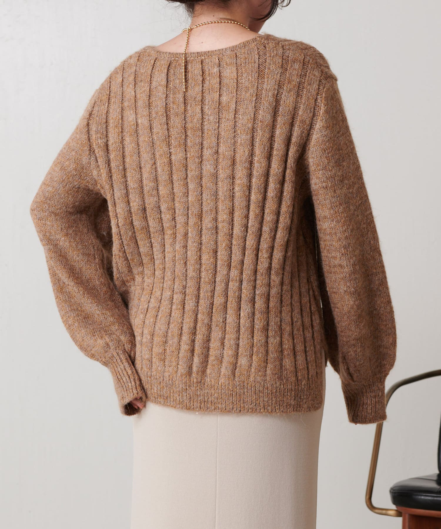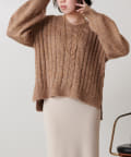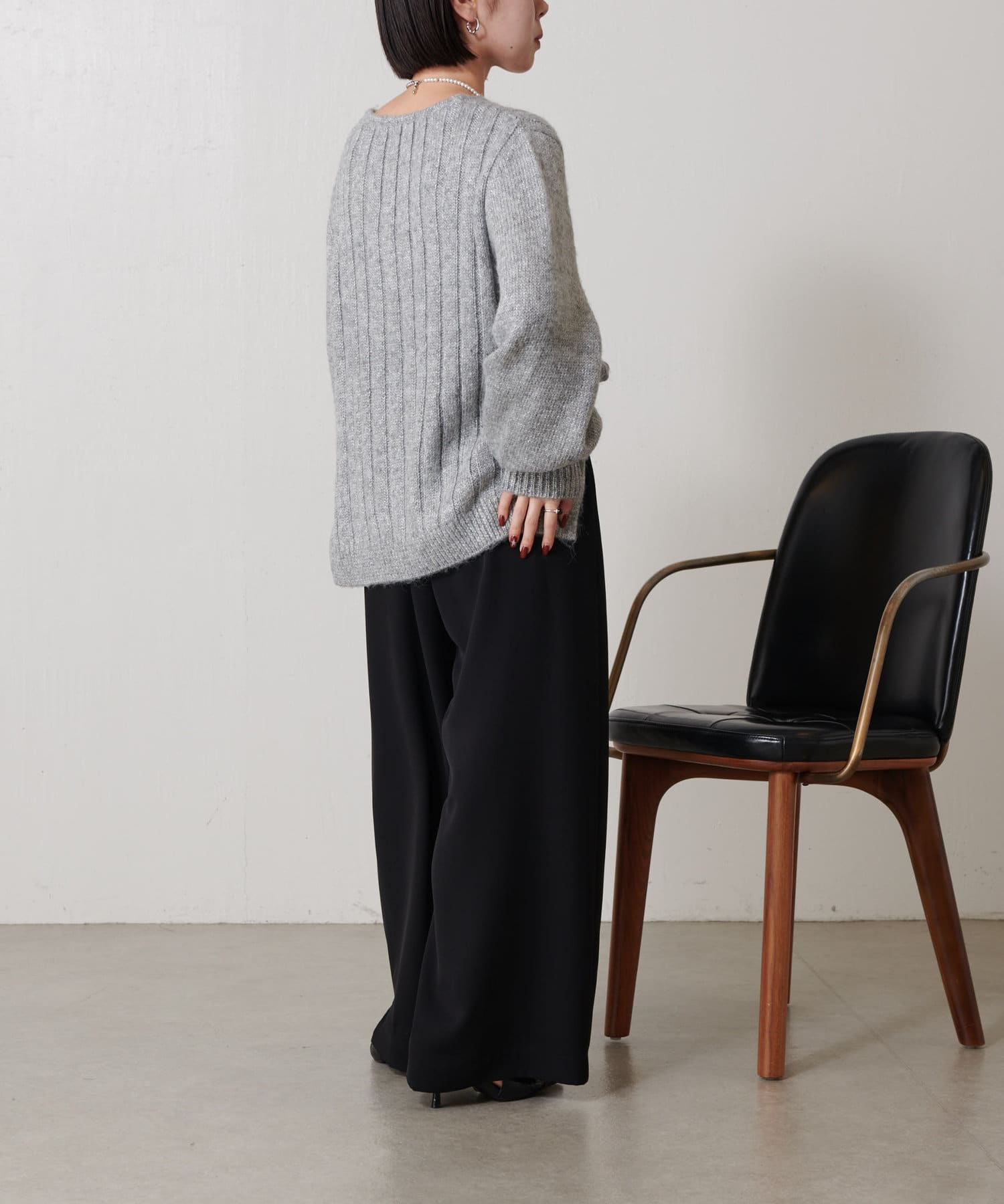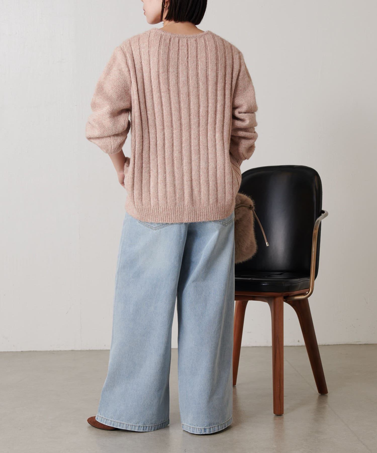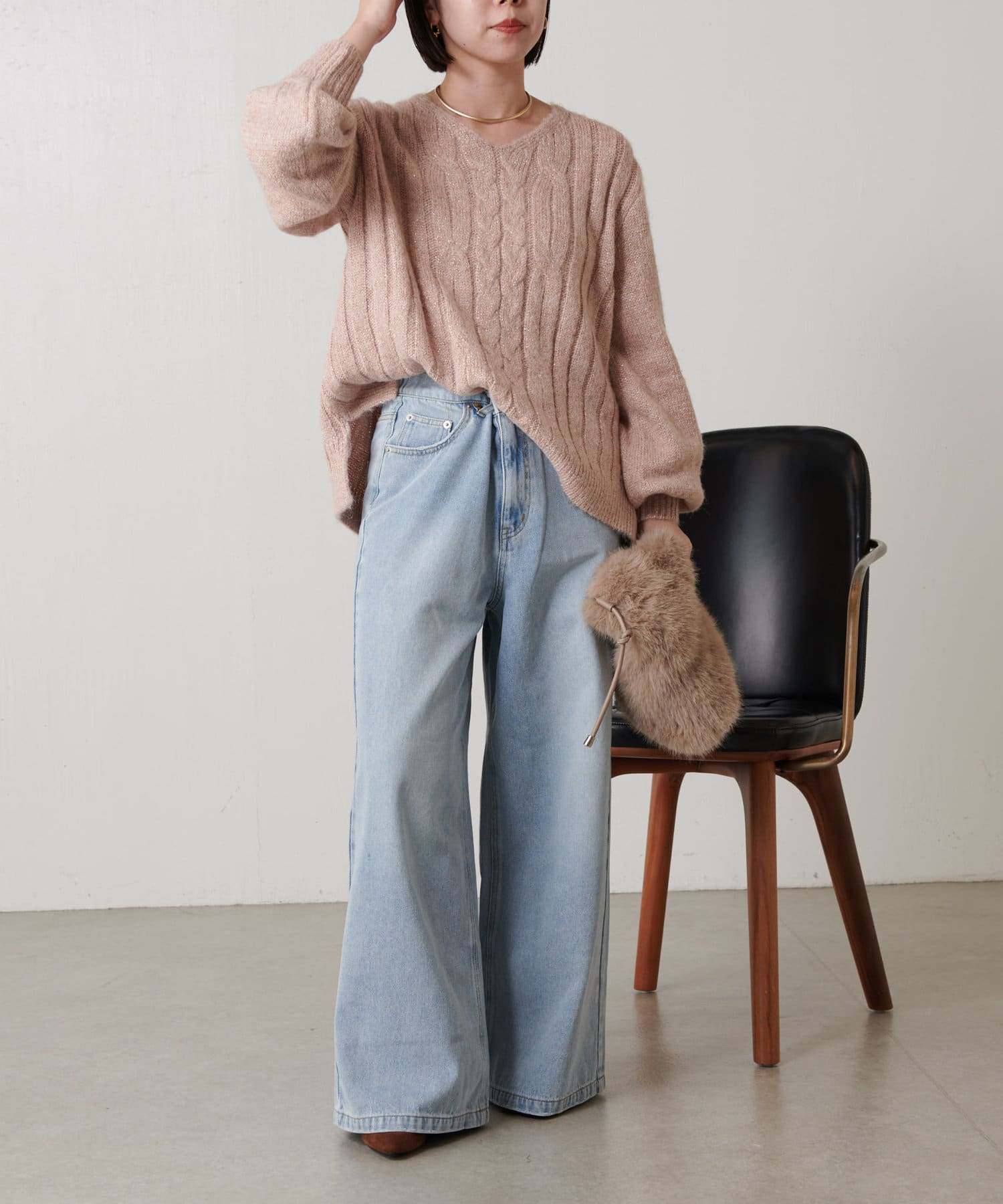 ・ざっくりとした編地と華やかななラメ生地が、カジュアルにもキレイめにも映えるニット。