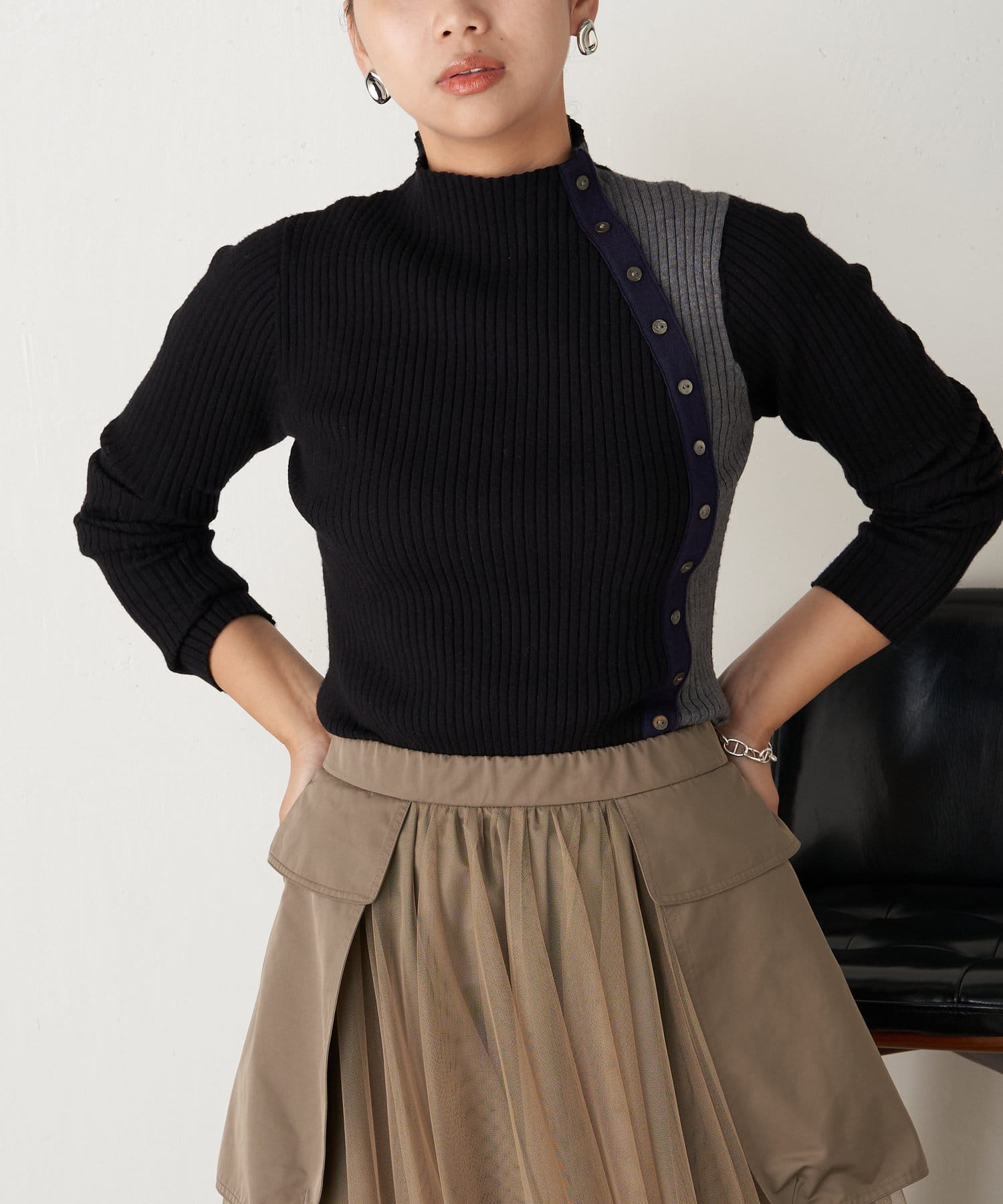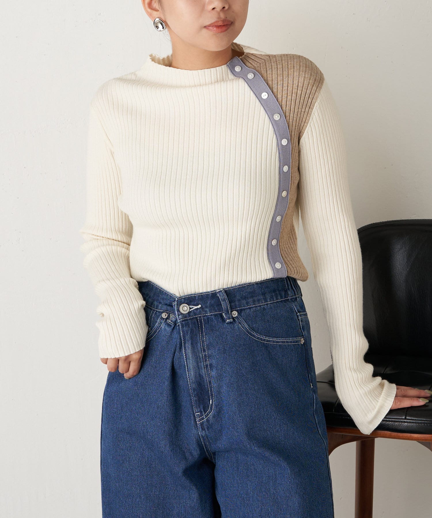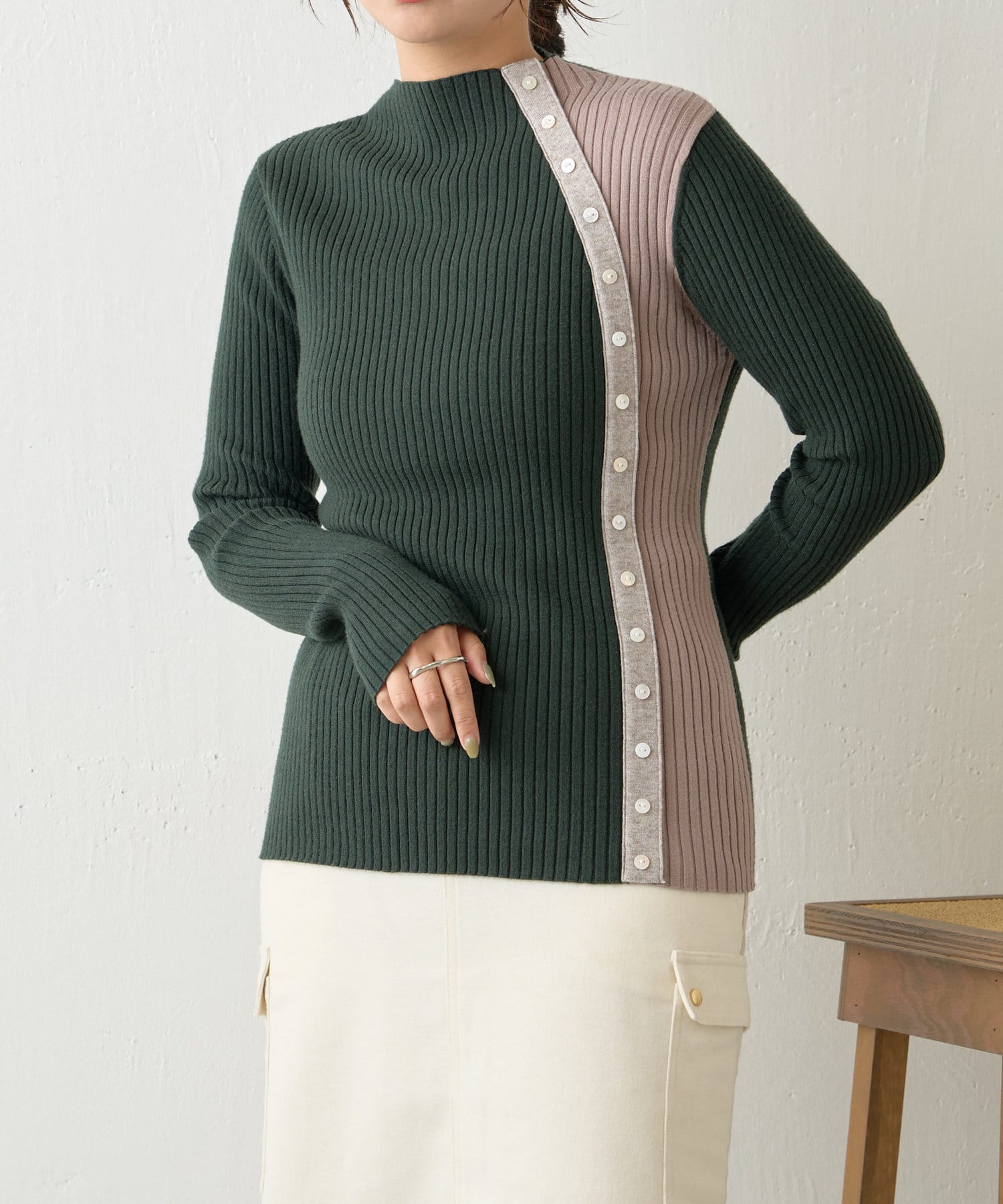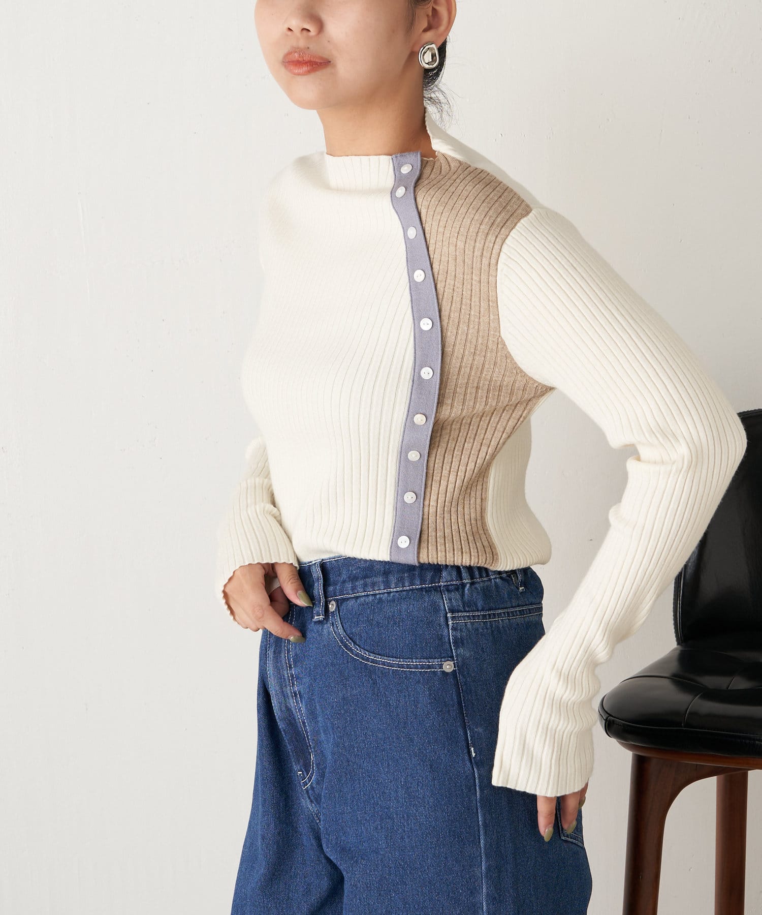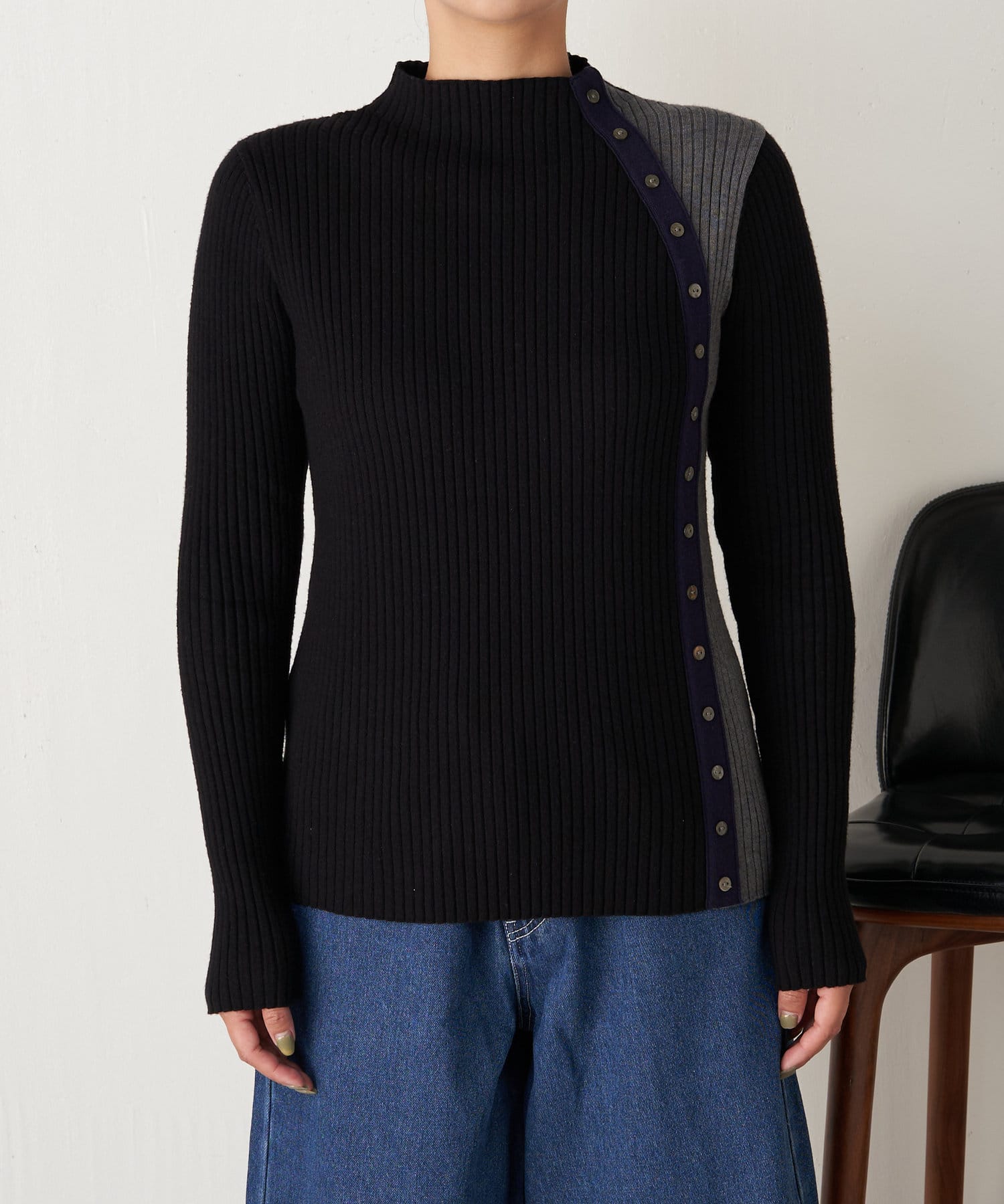 ボタン付配色リブニット
