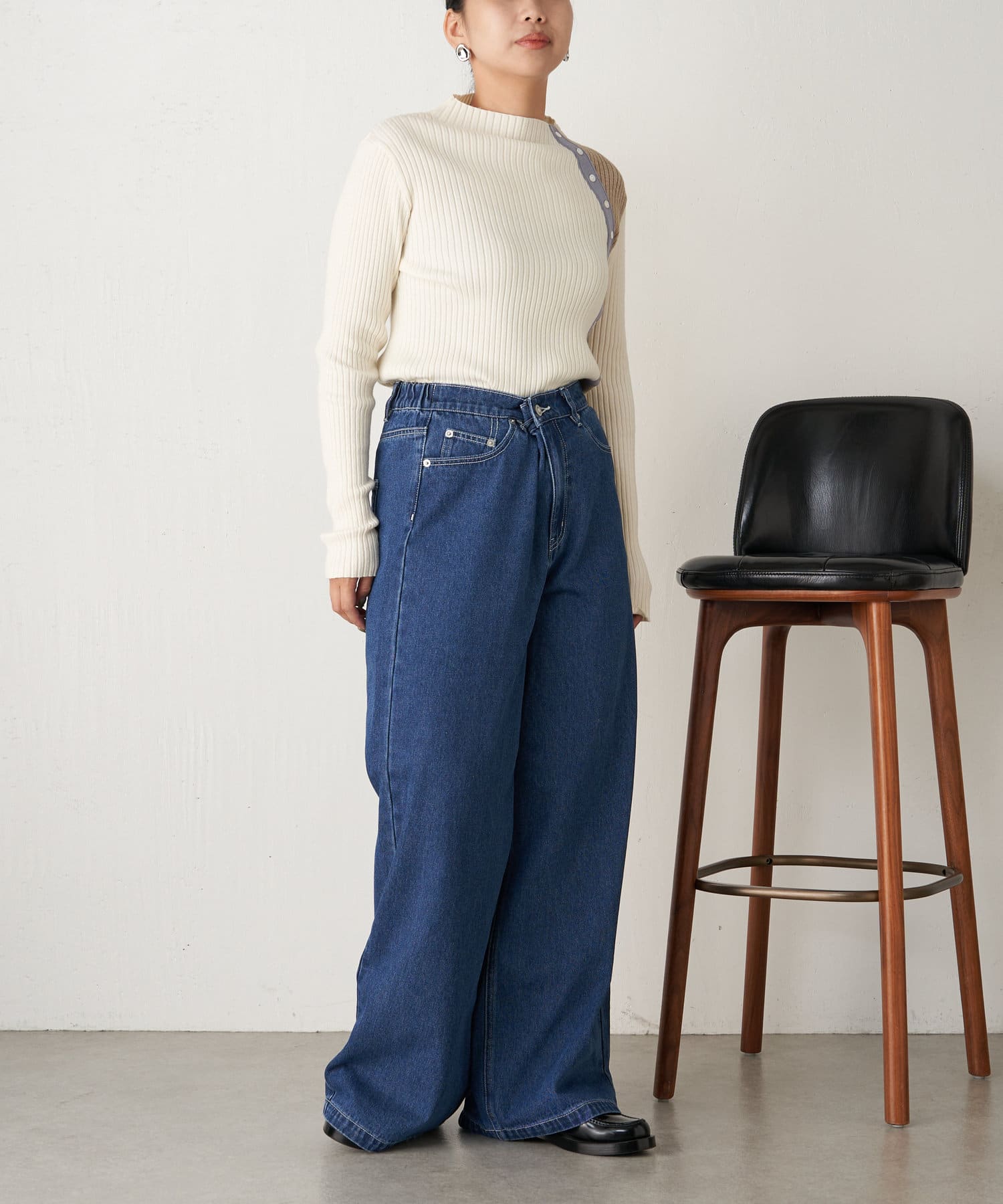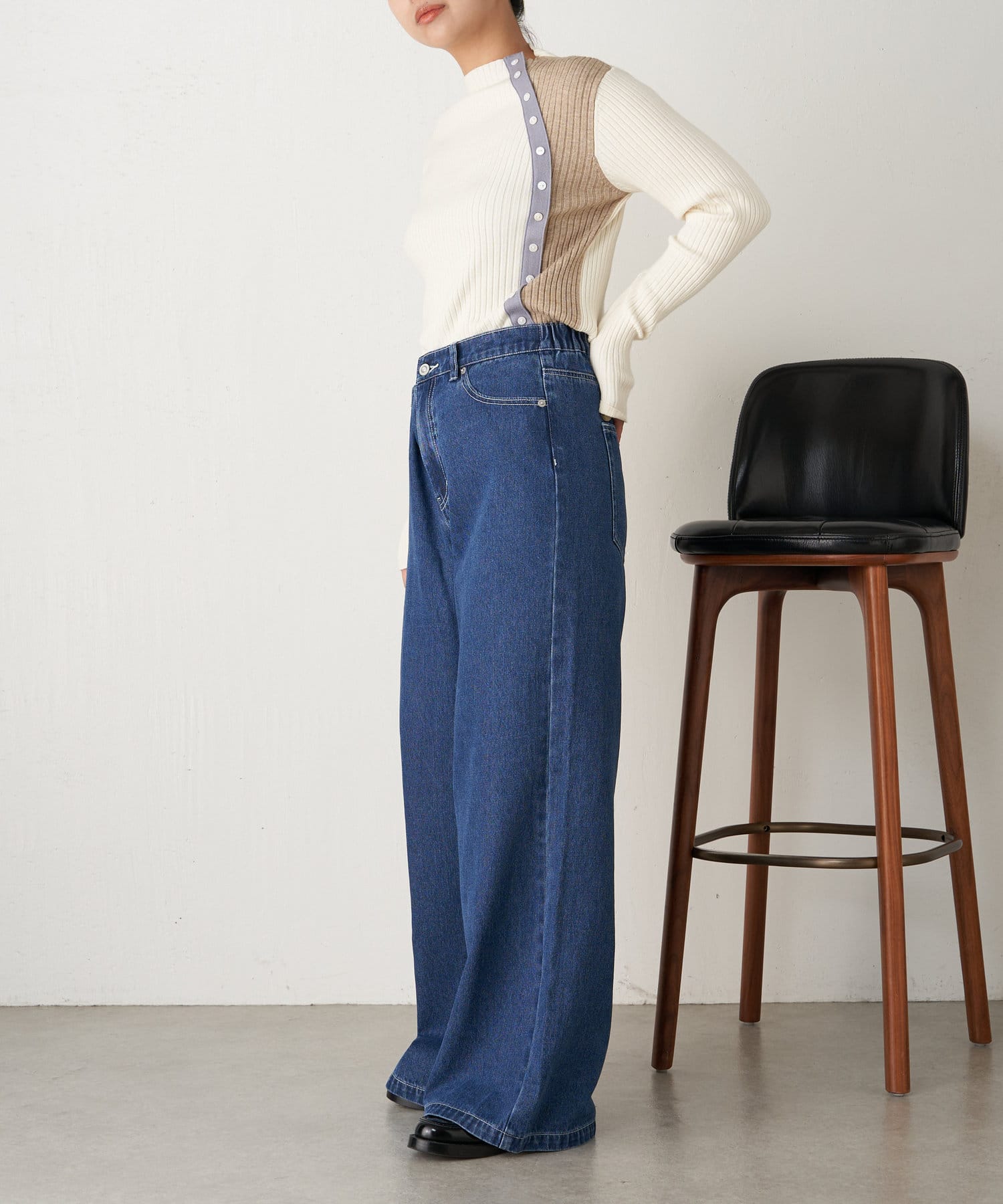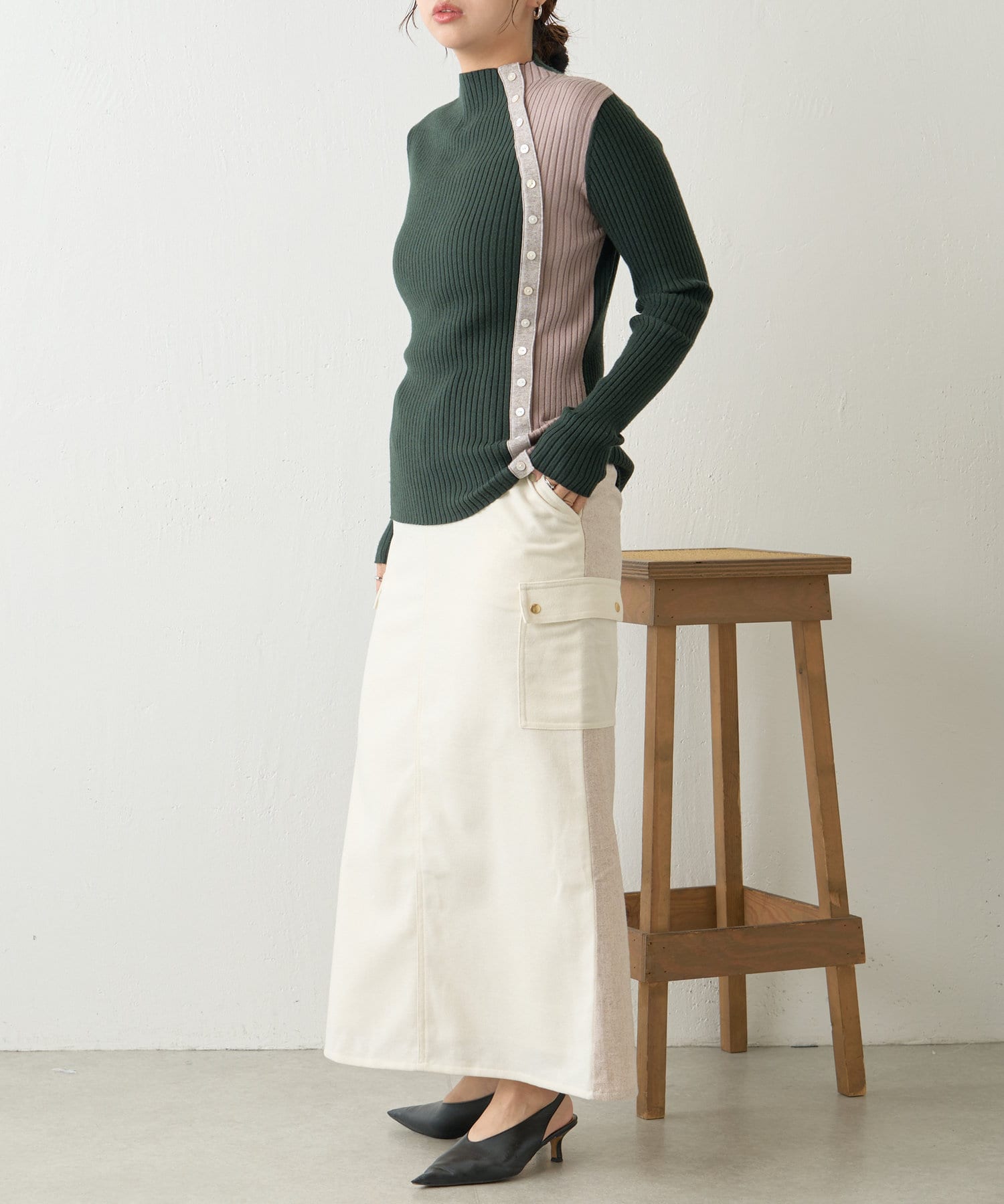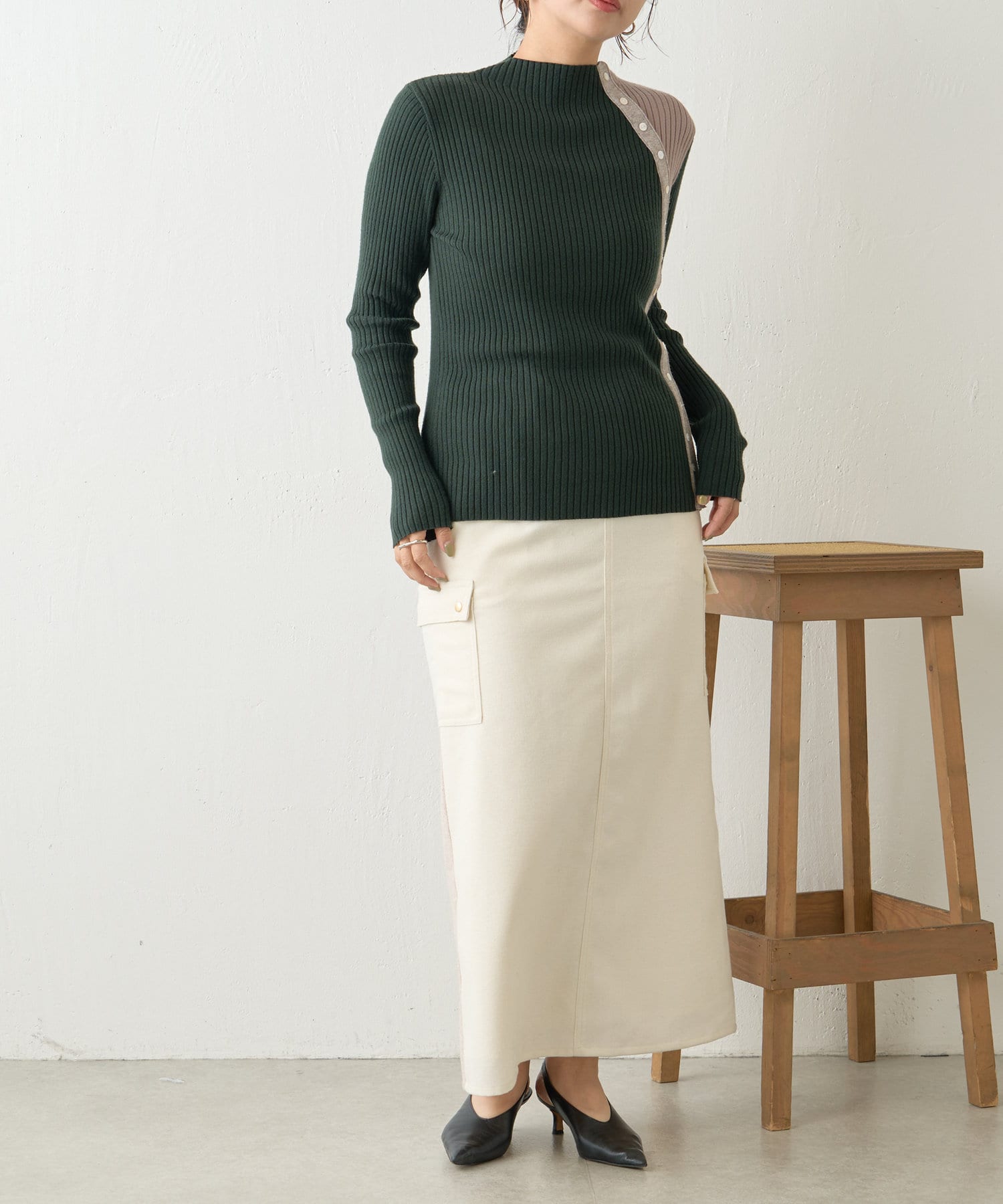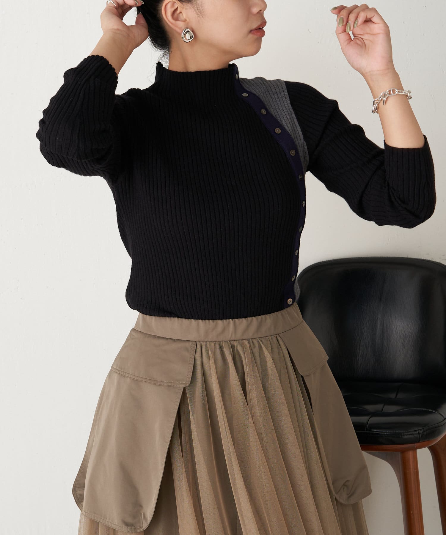 ボタン付配色リブニット