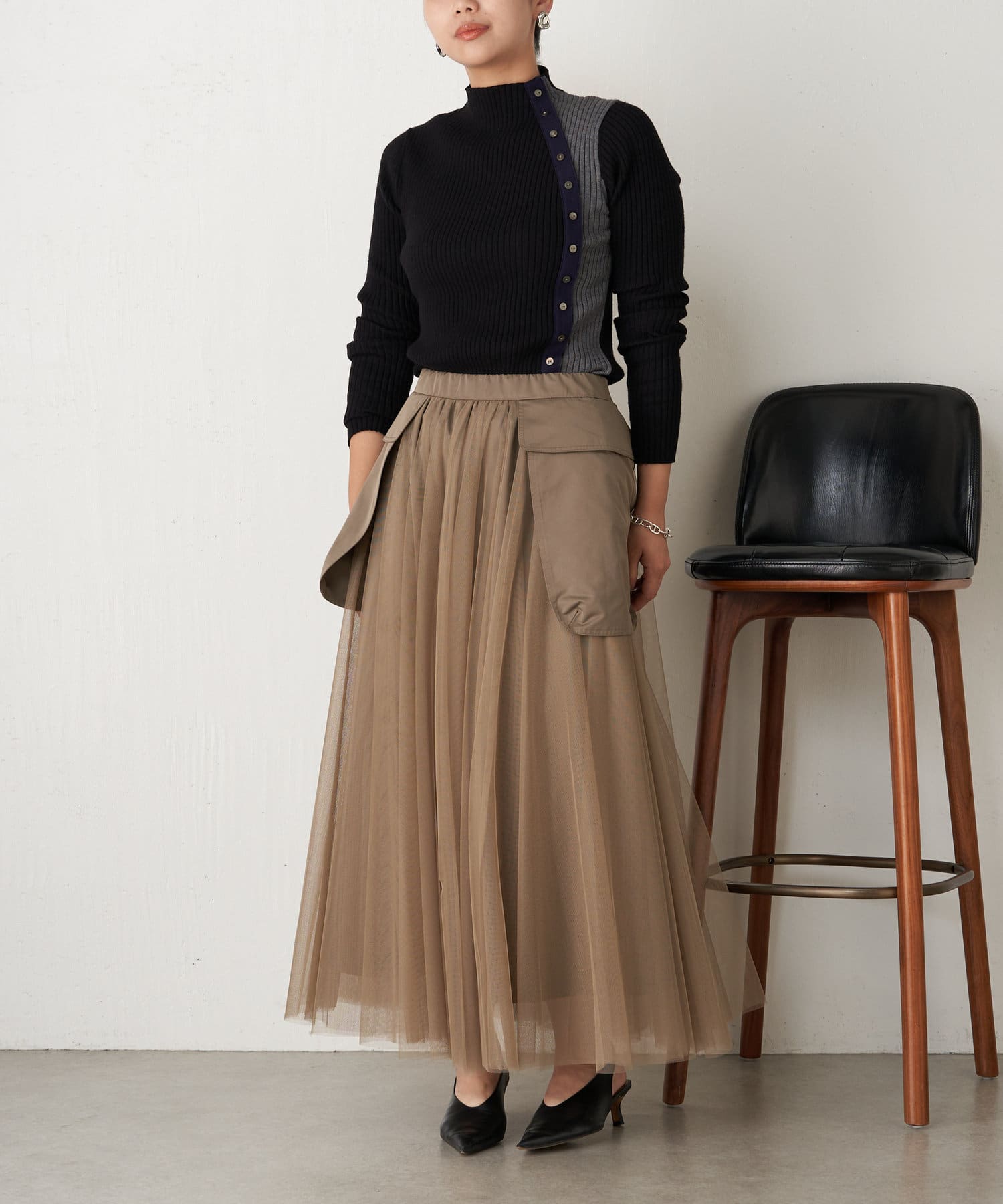 ・一枚持っておくと重宝するデザインリブニット。