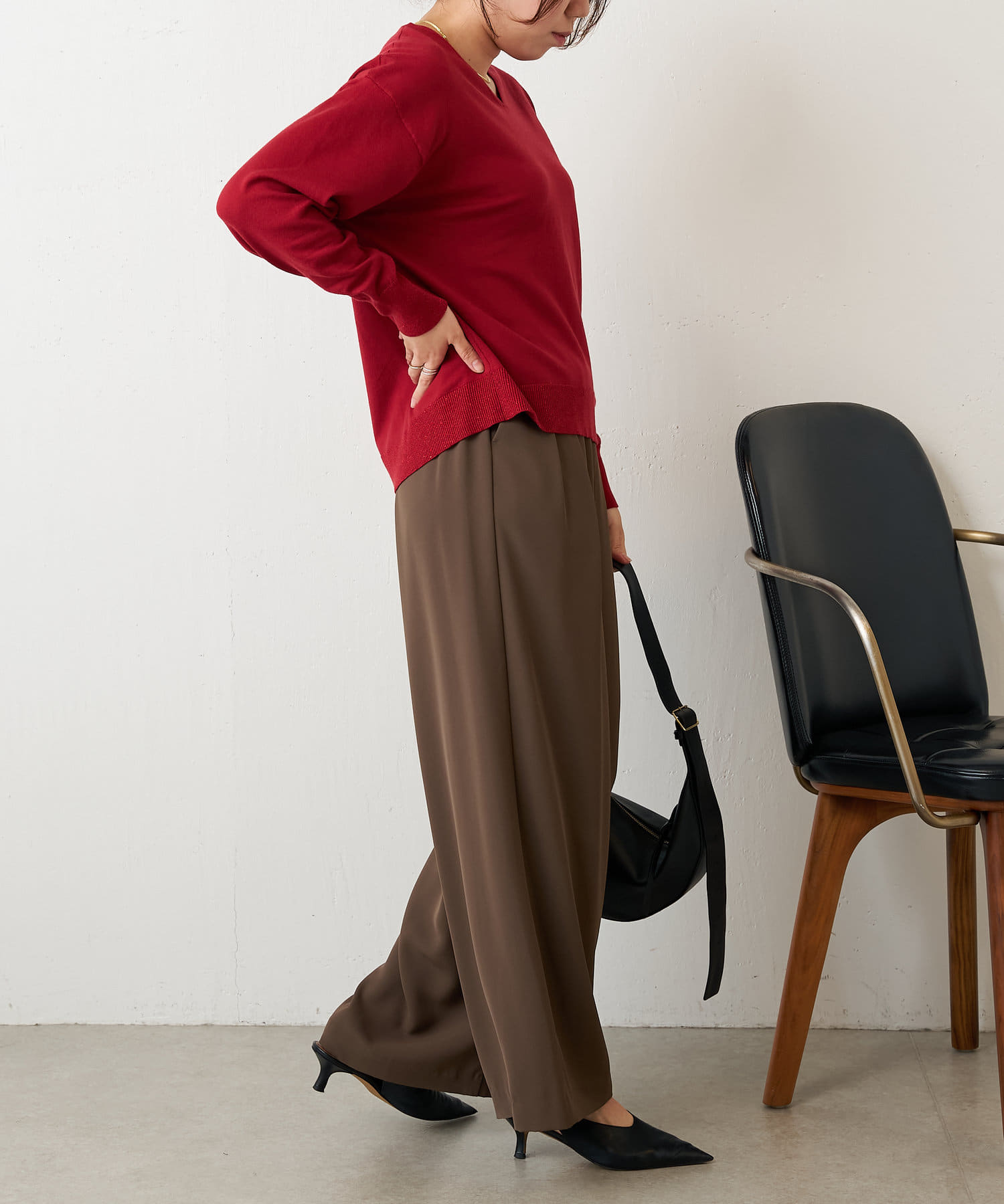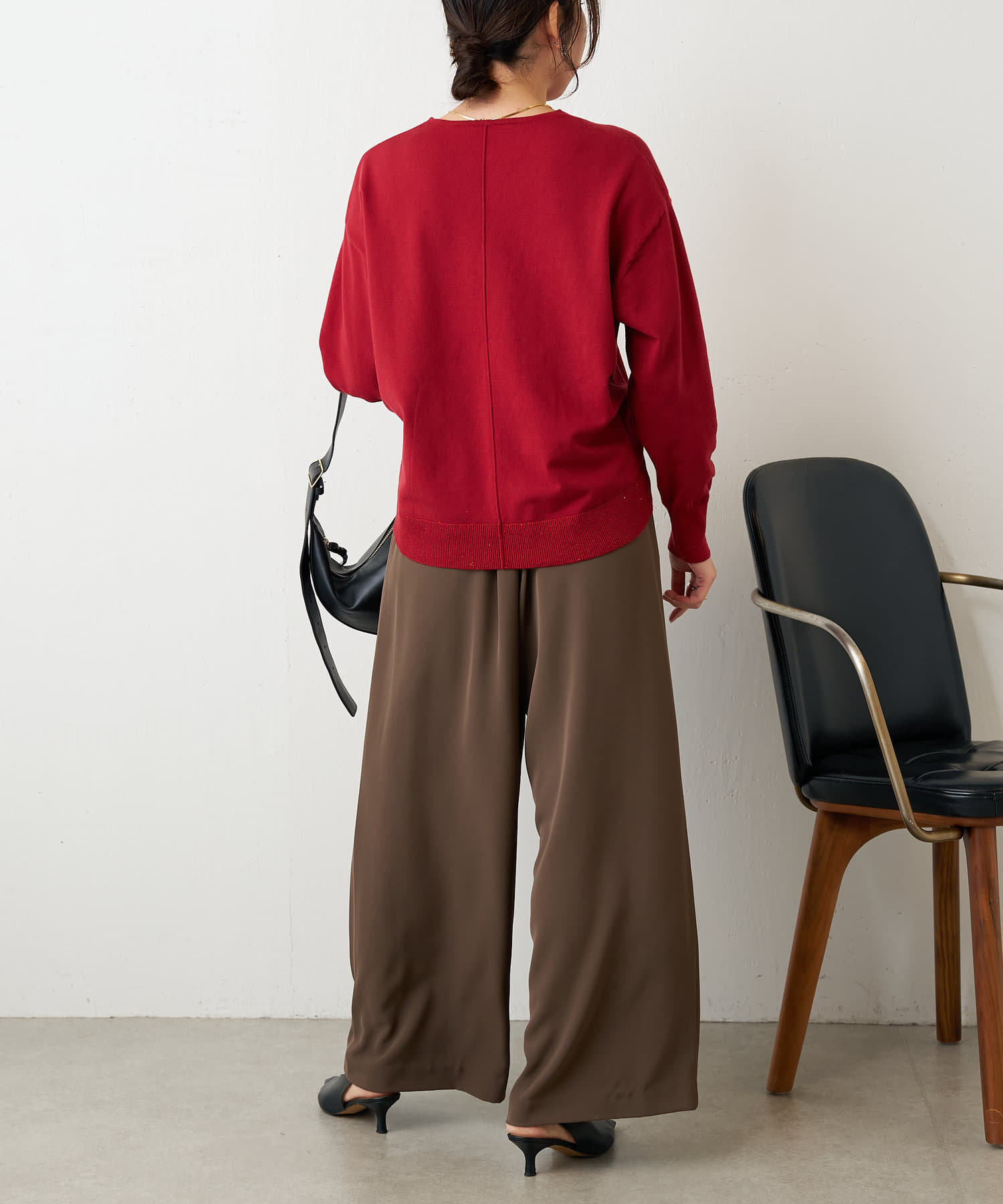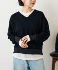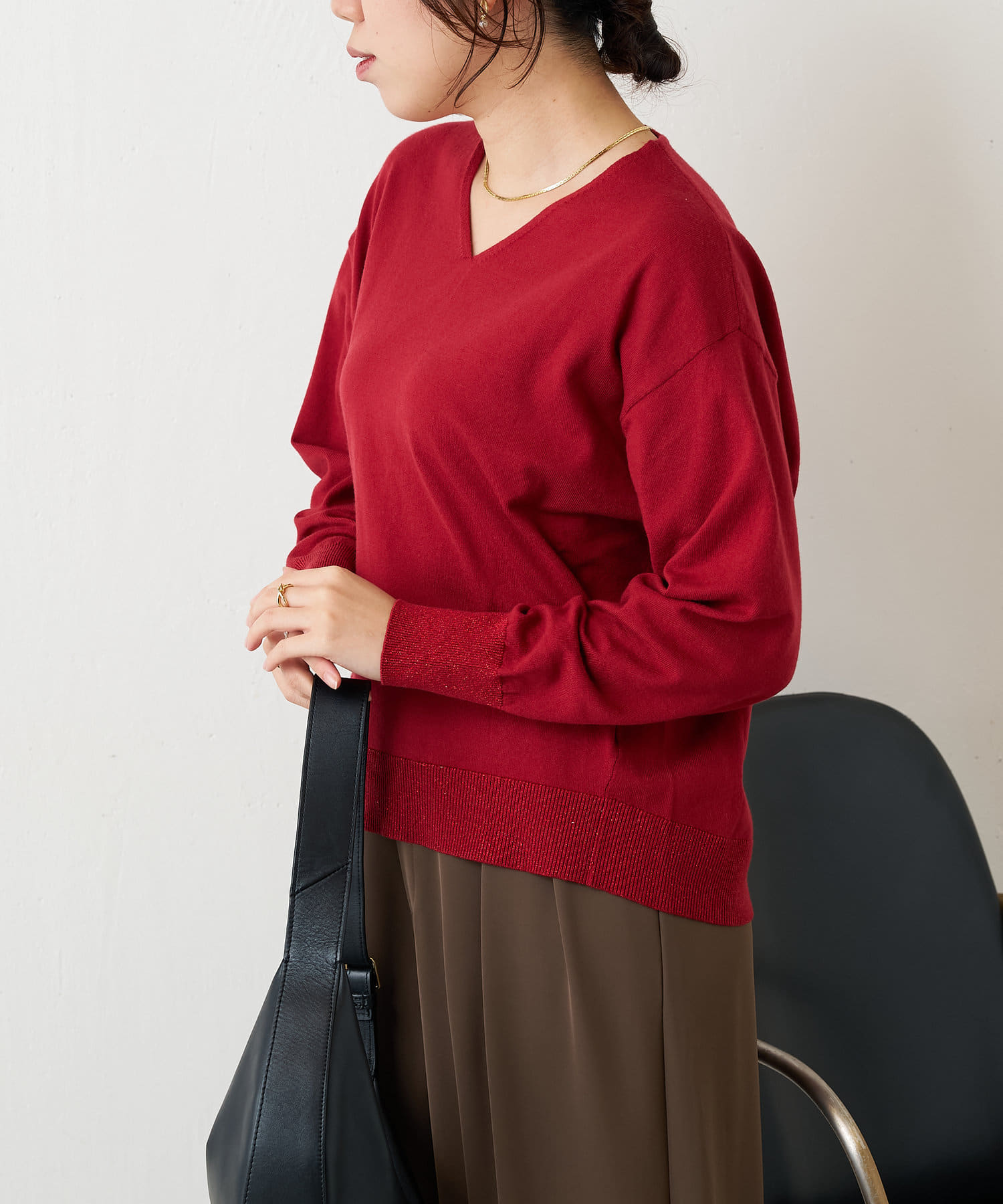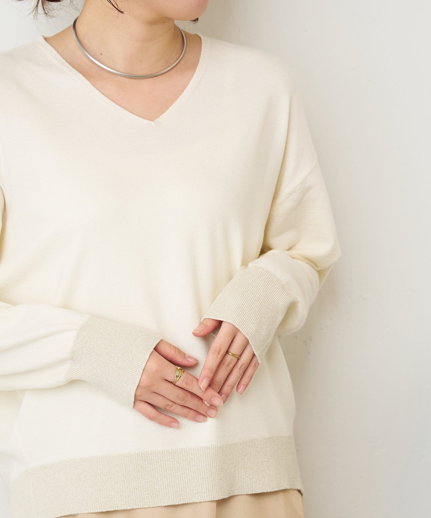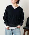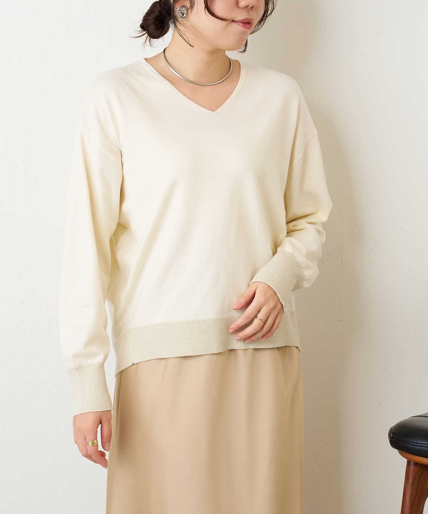 - 肩から落ちたリラックスシルエットのフォルムが特徴のVネックニット。