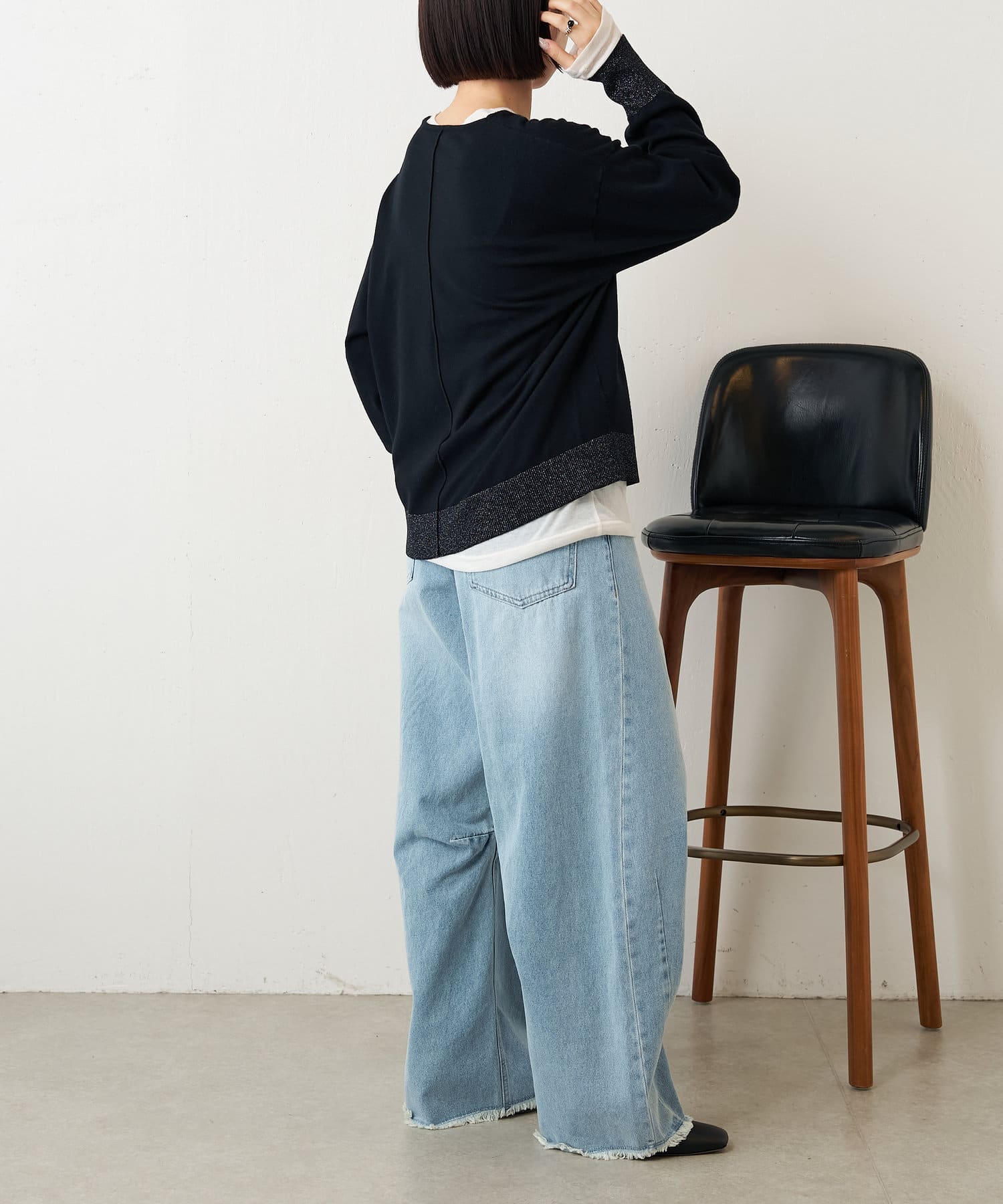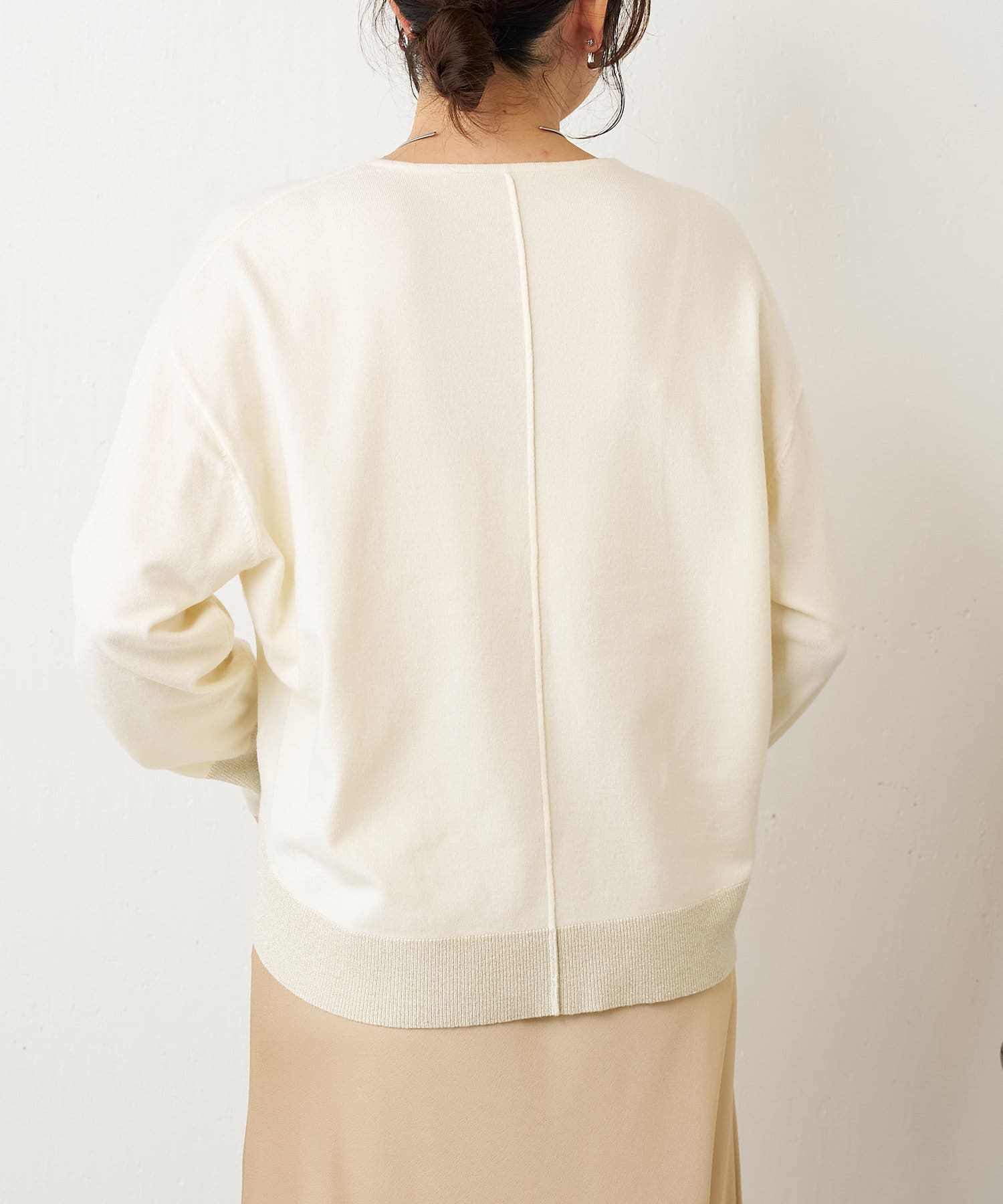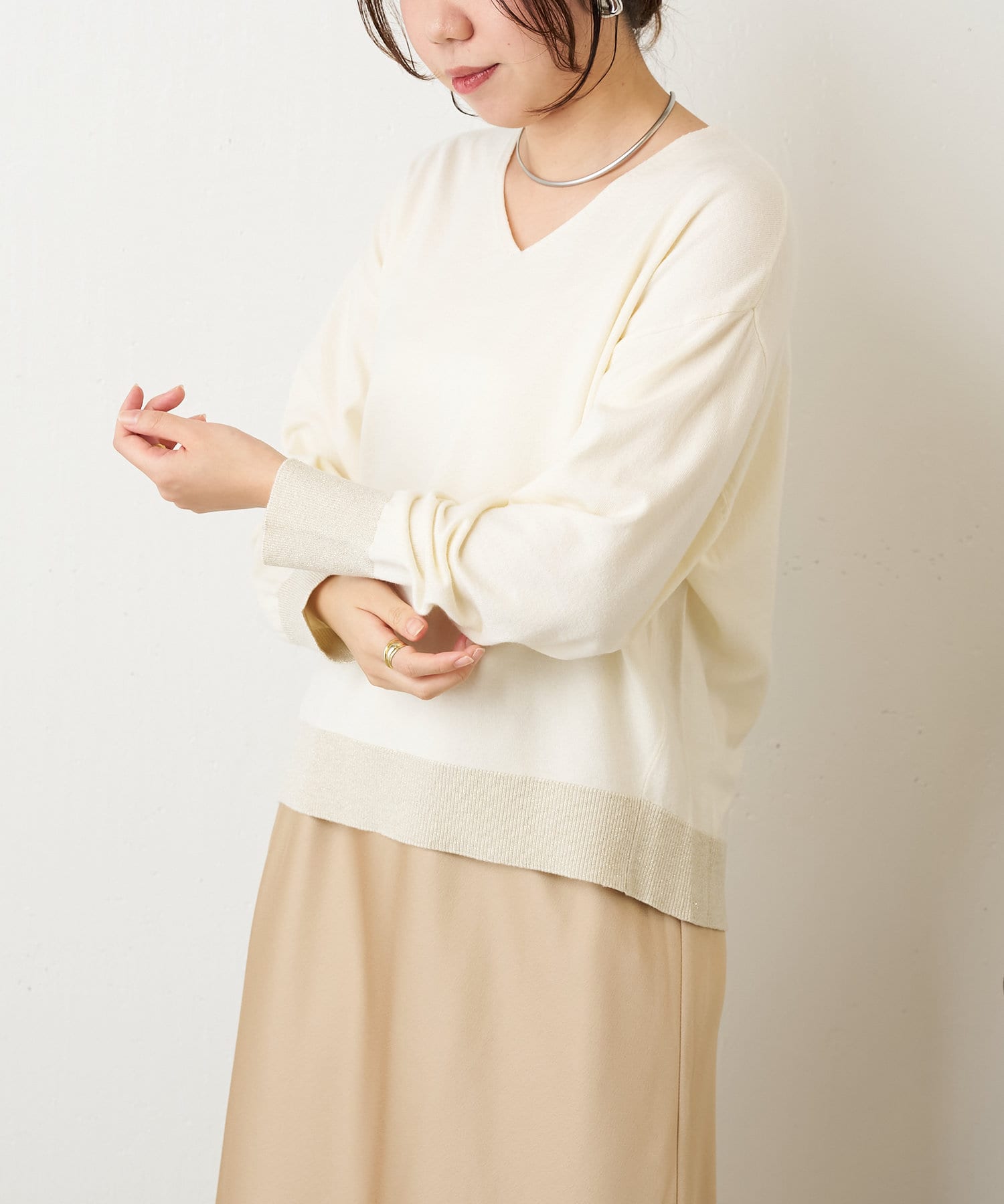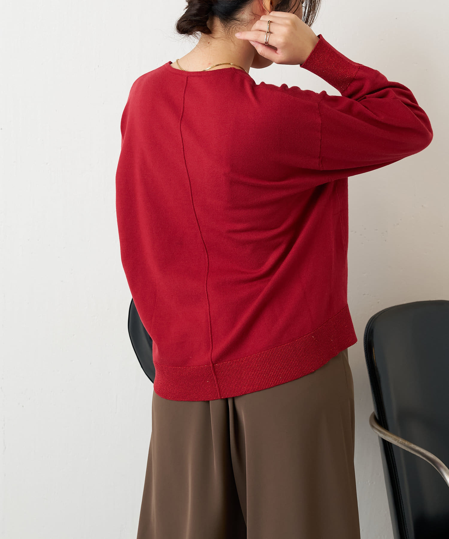 ・裾と袖口のラメ生地がコーディネートを華やかにしてくれますよ。