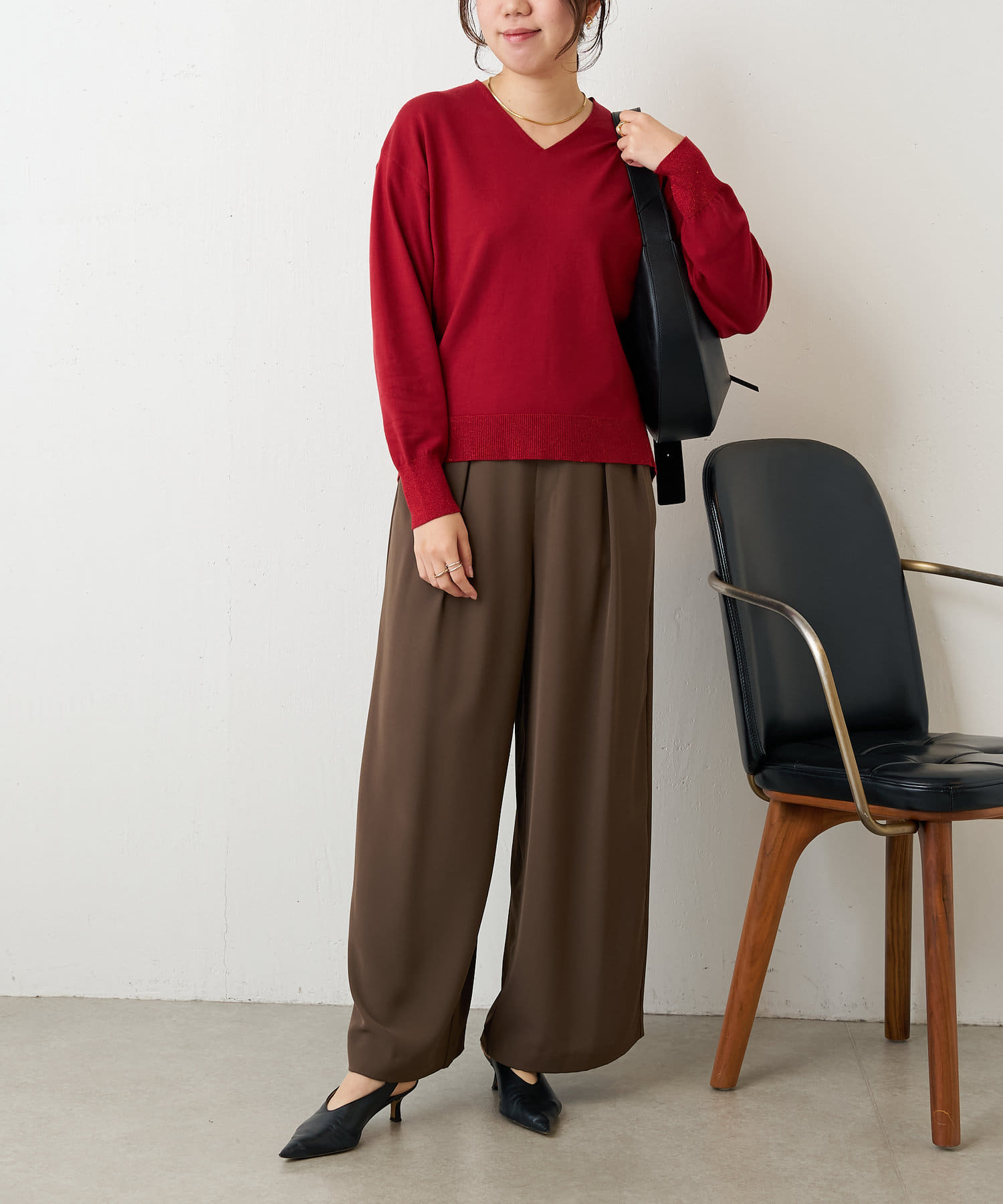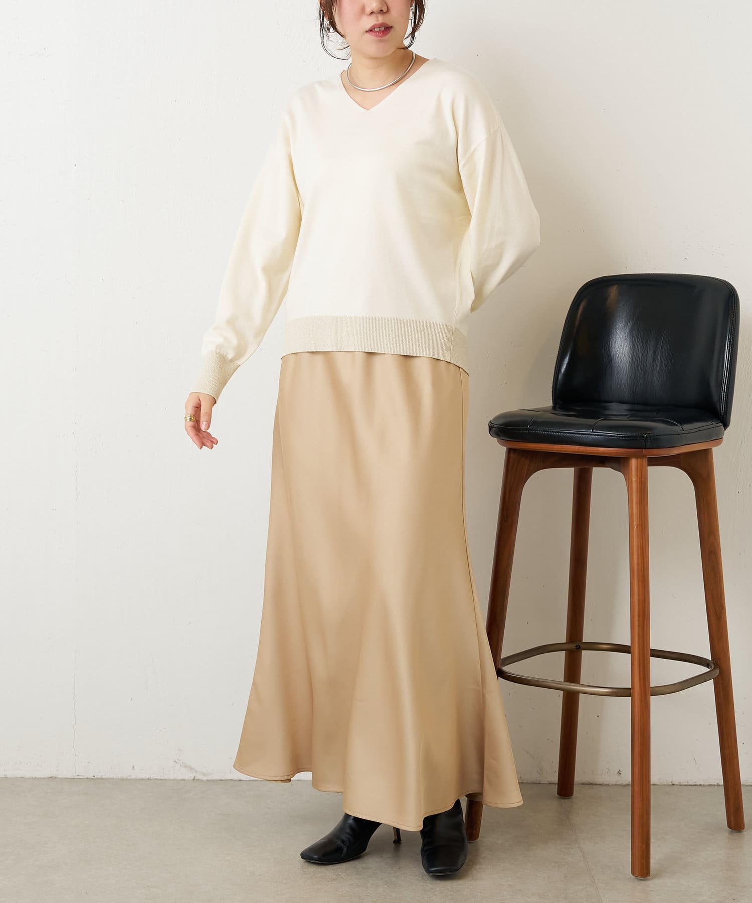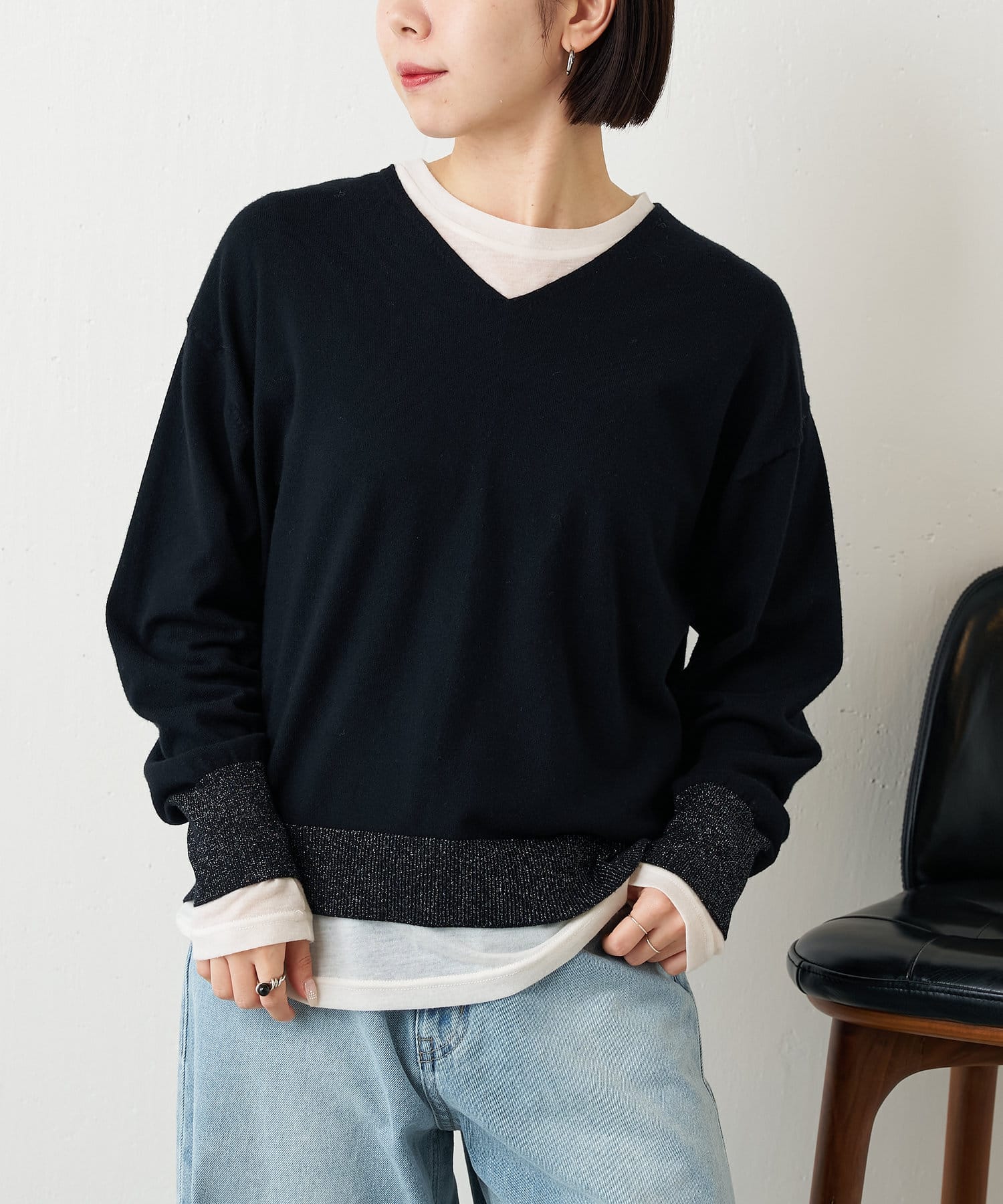 ・裾と袖口のラメ生地がコーディネートを華やかにしてくれますよ。