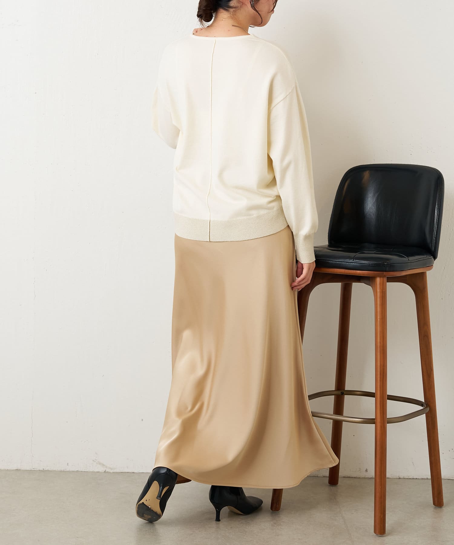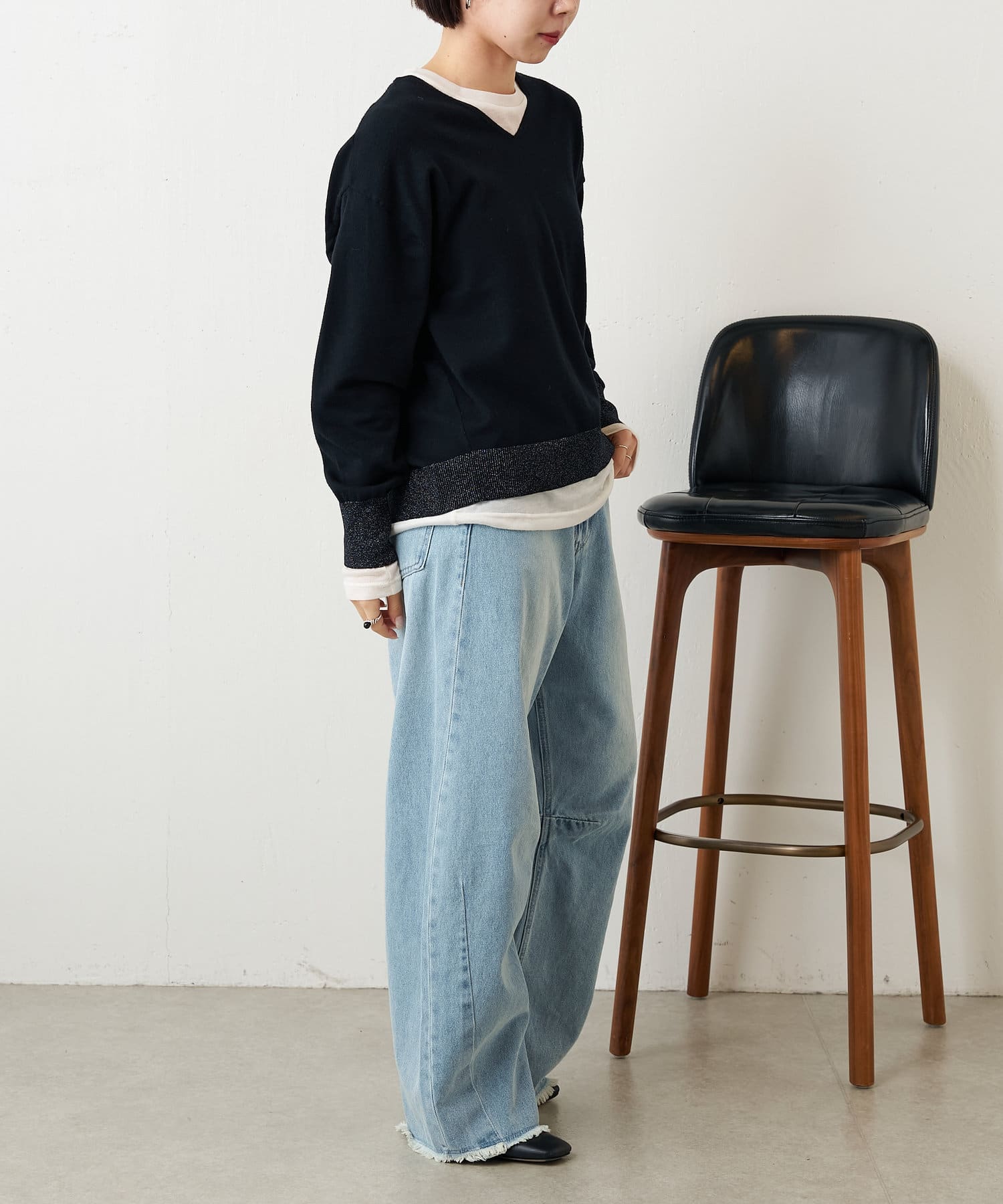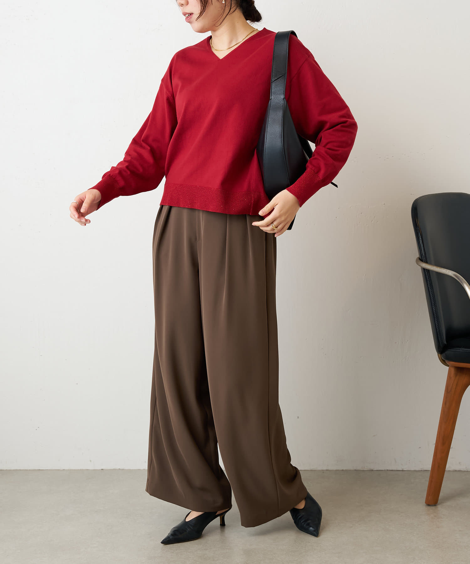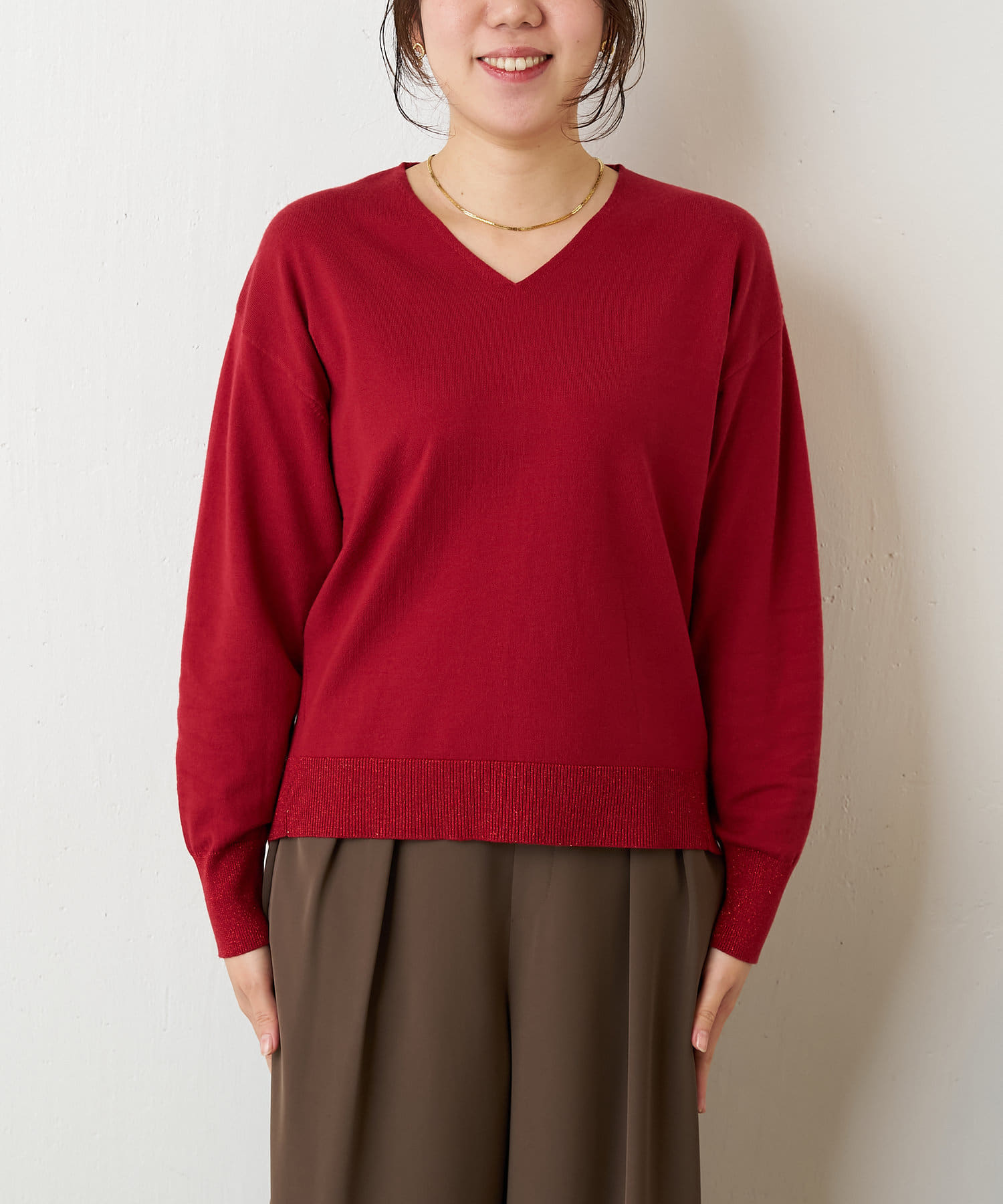 ・裾と袖口のラメ生地がコーディネートを華やかにしてくれますよ。