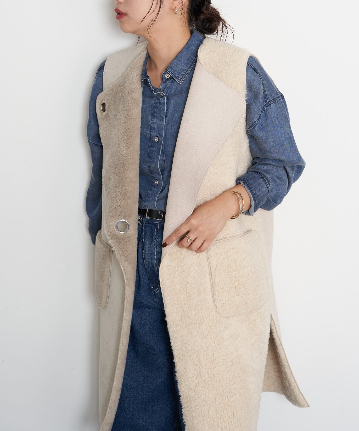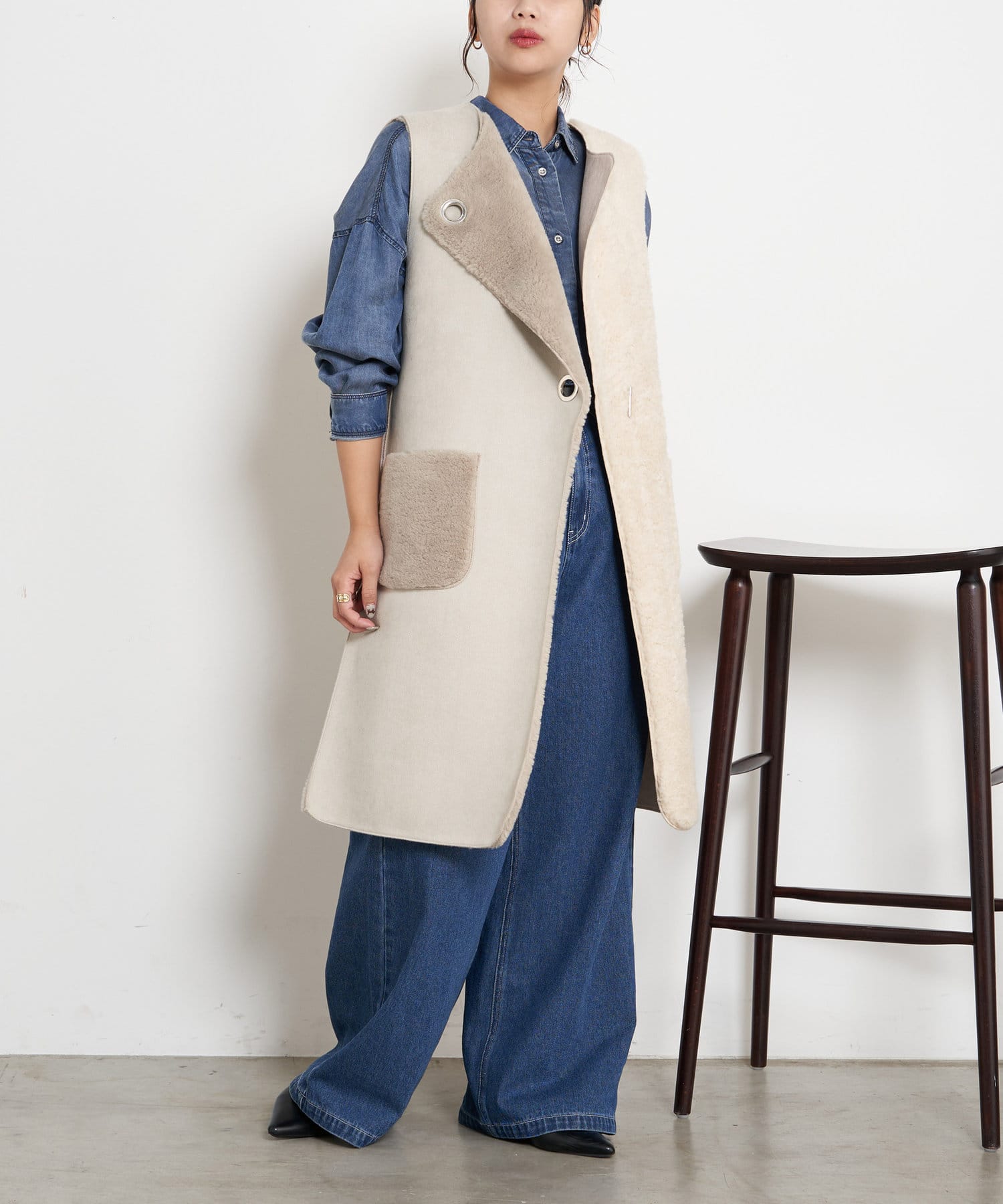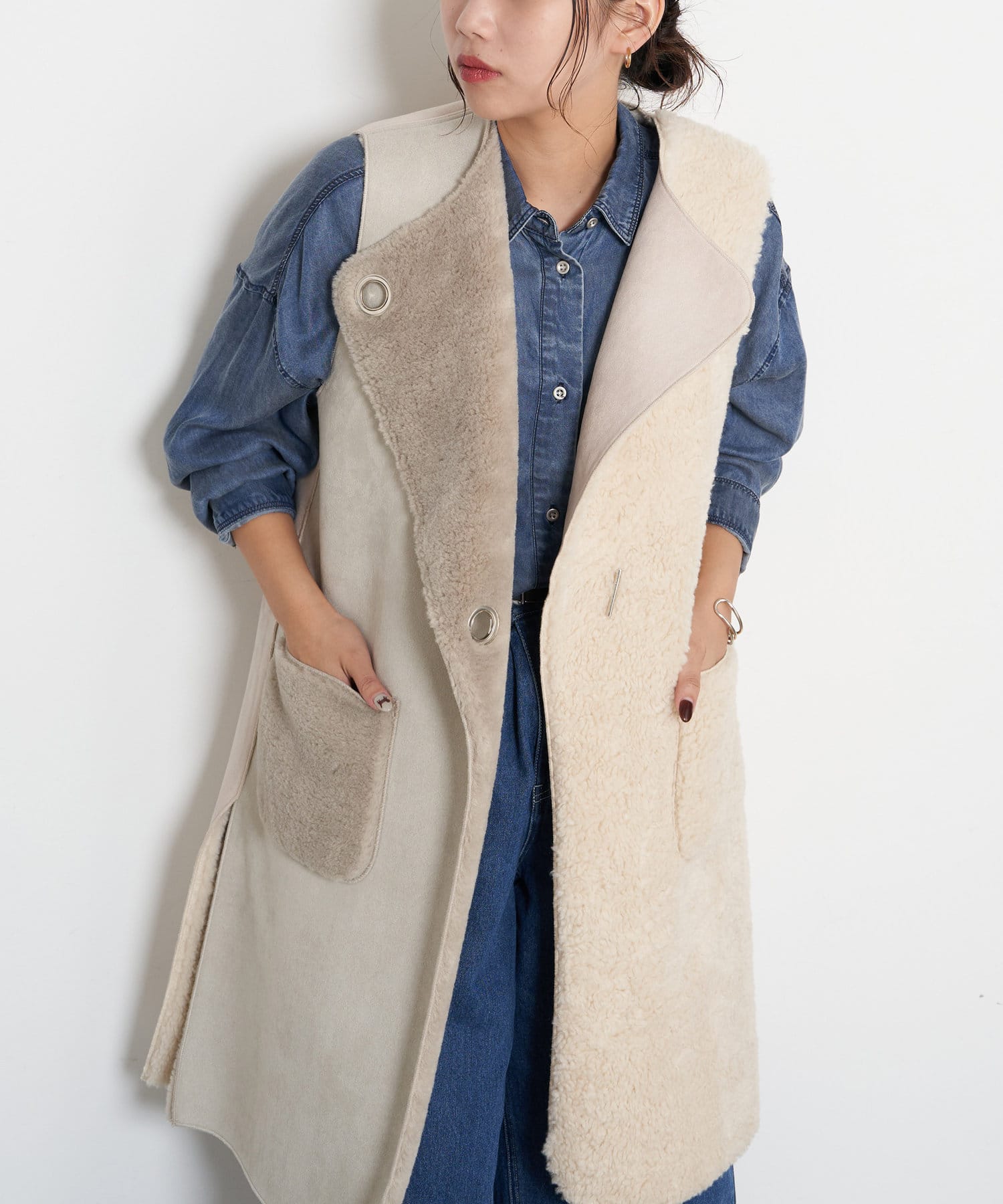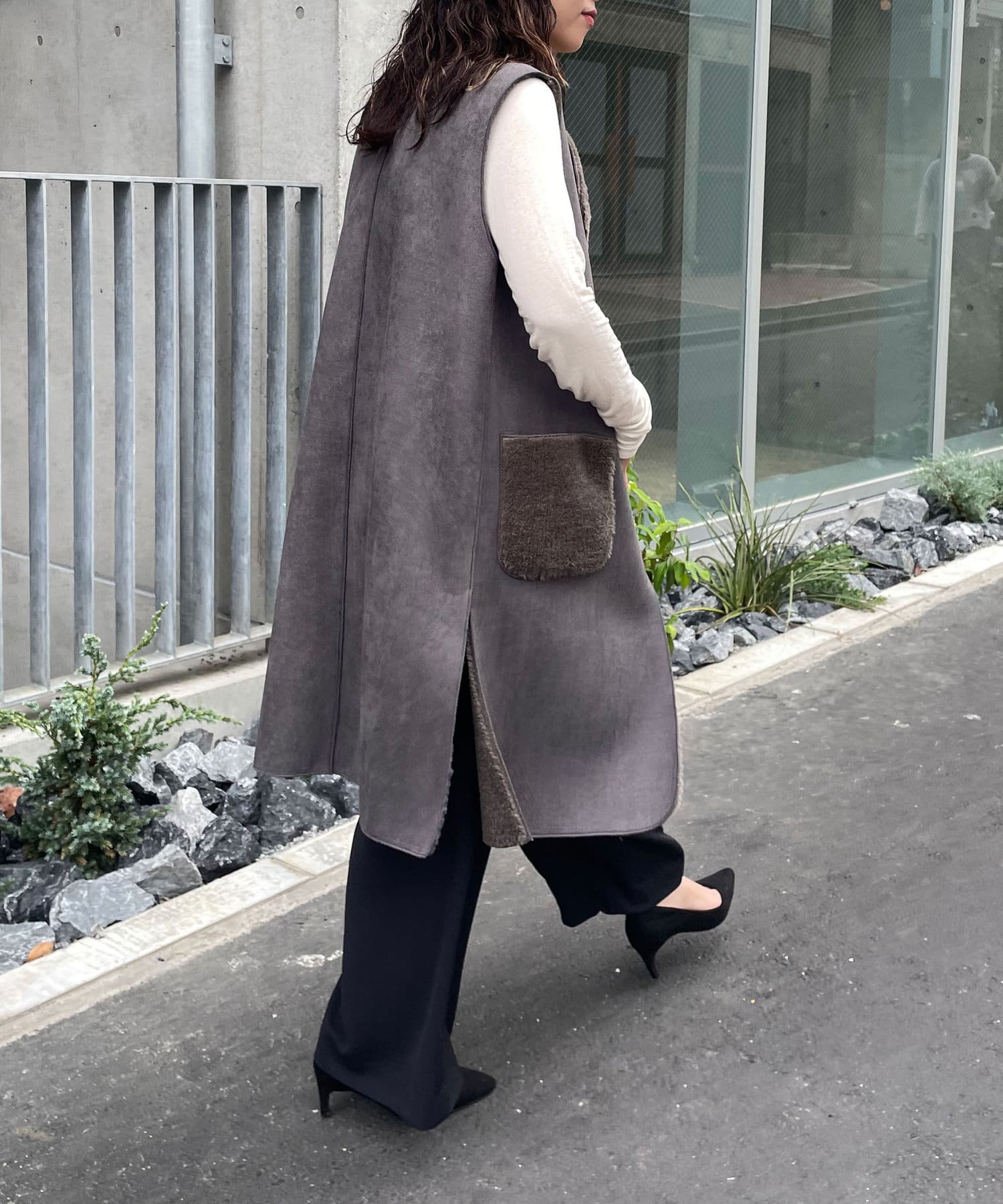 ・スエード生地とボアが切り替わっているので大きすぎず、すっきりとした印象に◎