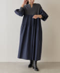 ・ゆったりとした優雅なシルエットが魅力的なデザインロングワンピース。