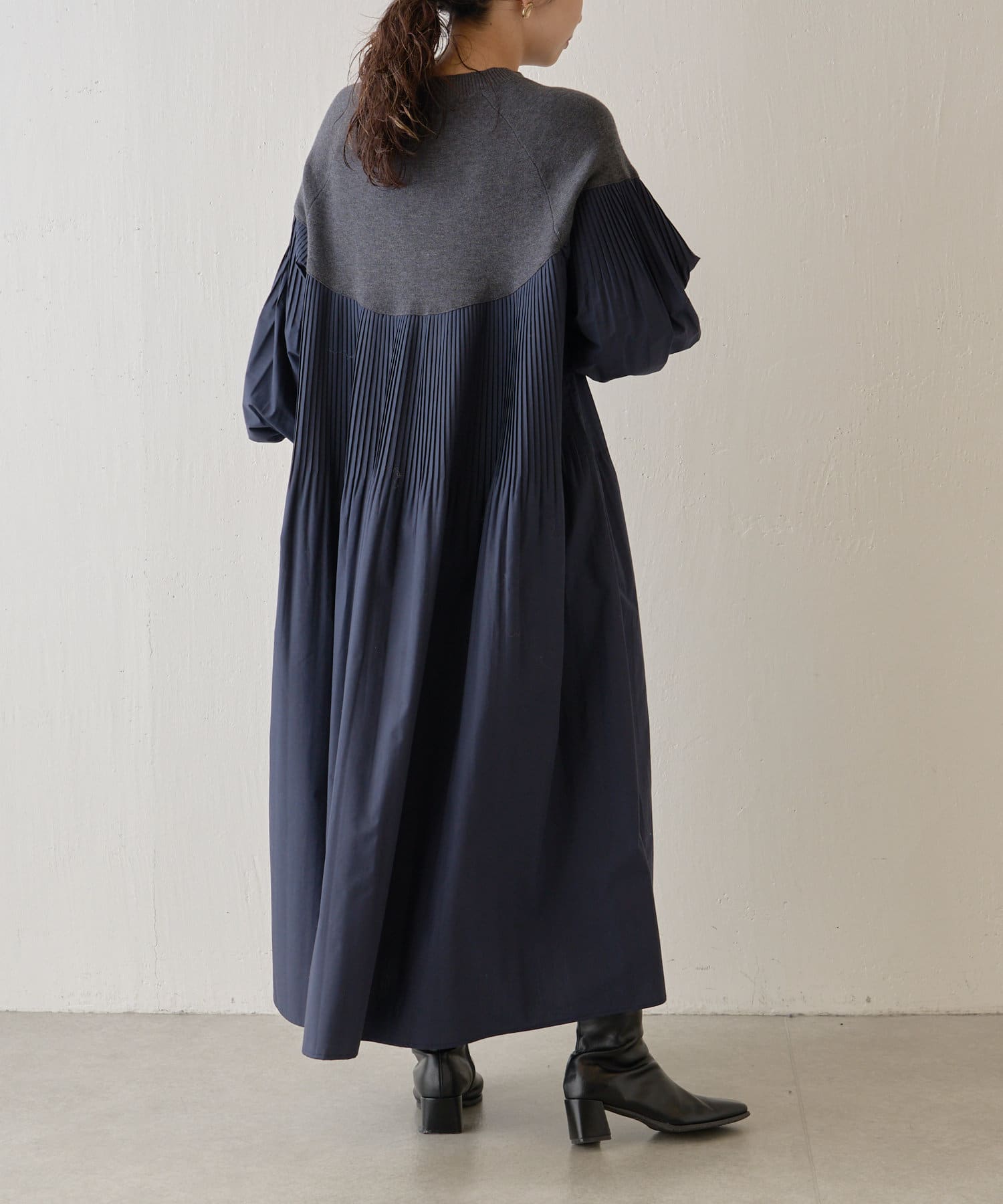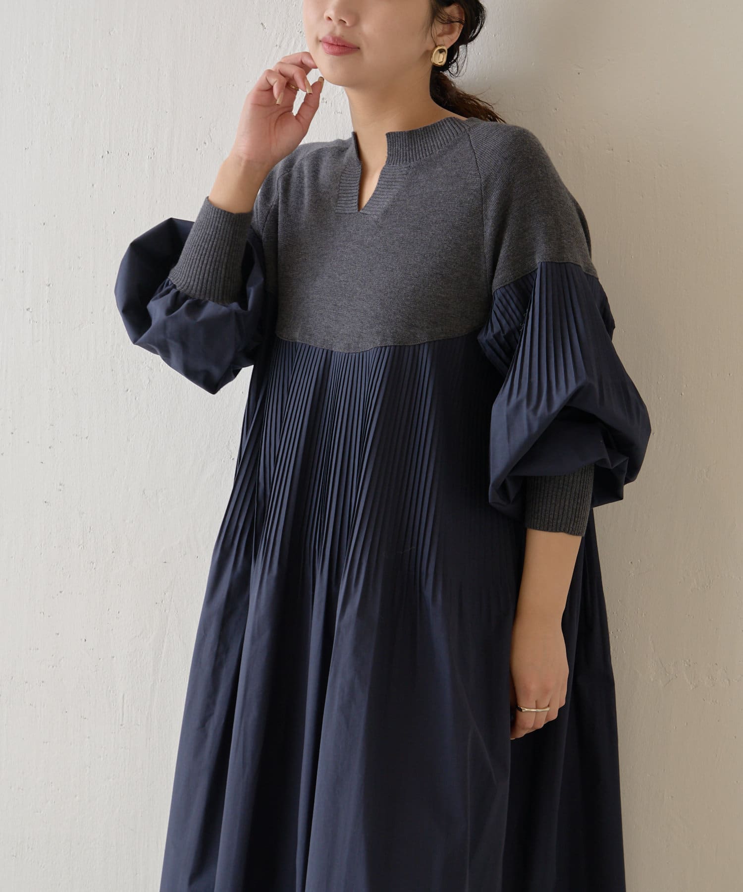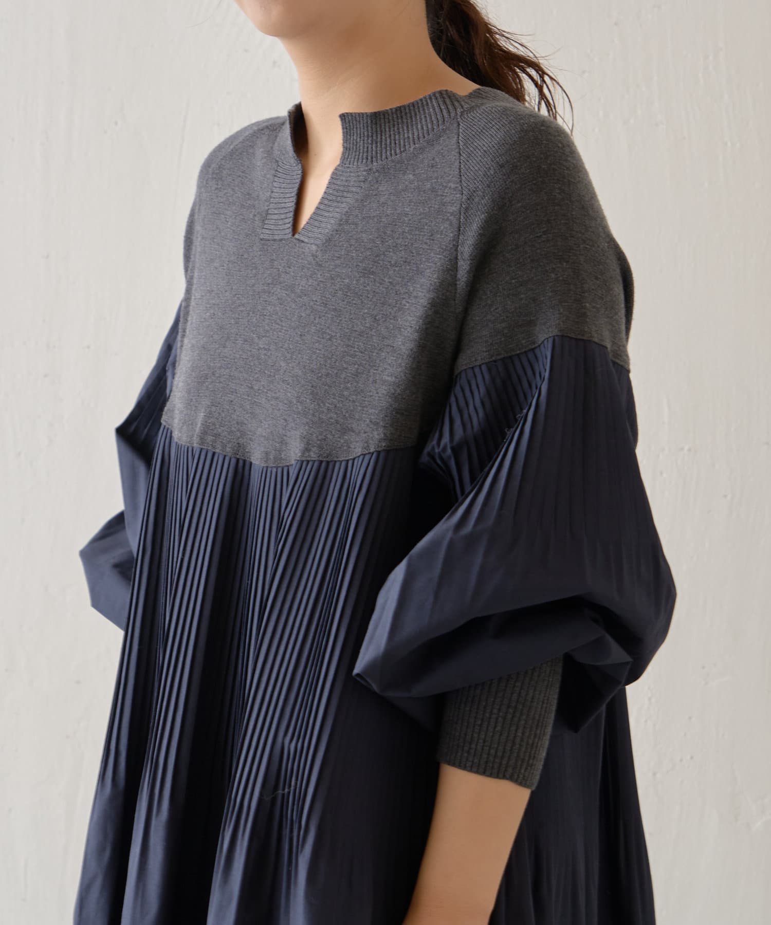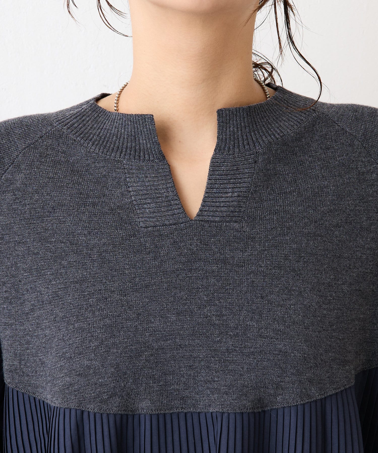 ・首元から胸元がニットになっておりこれからの時期にぴったりの一枚。