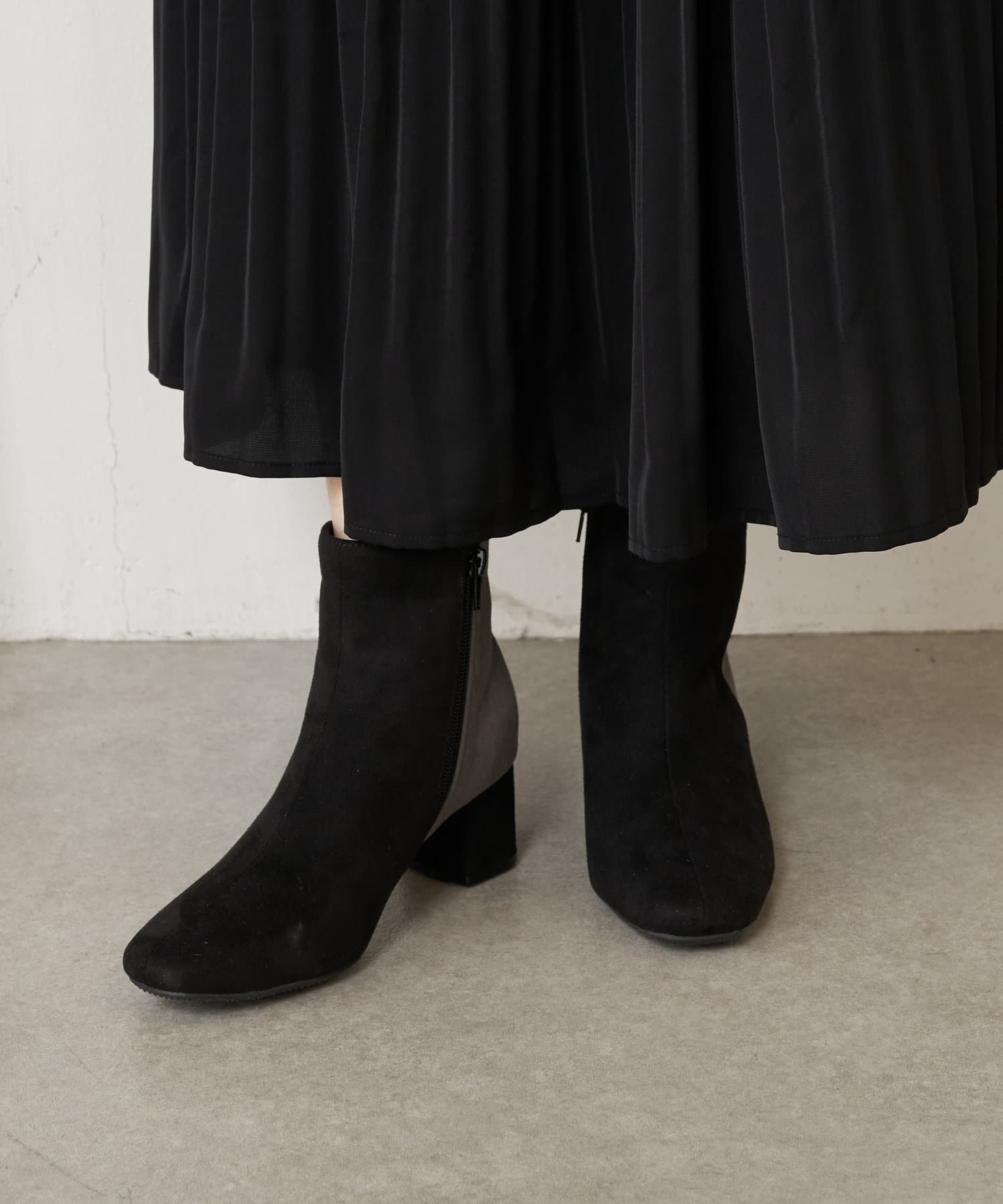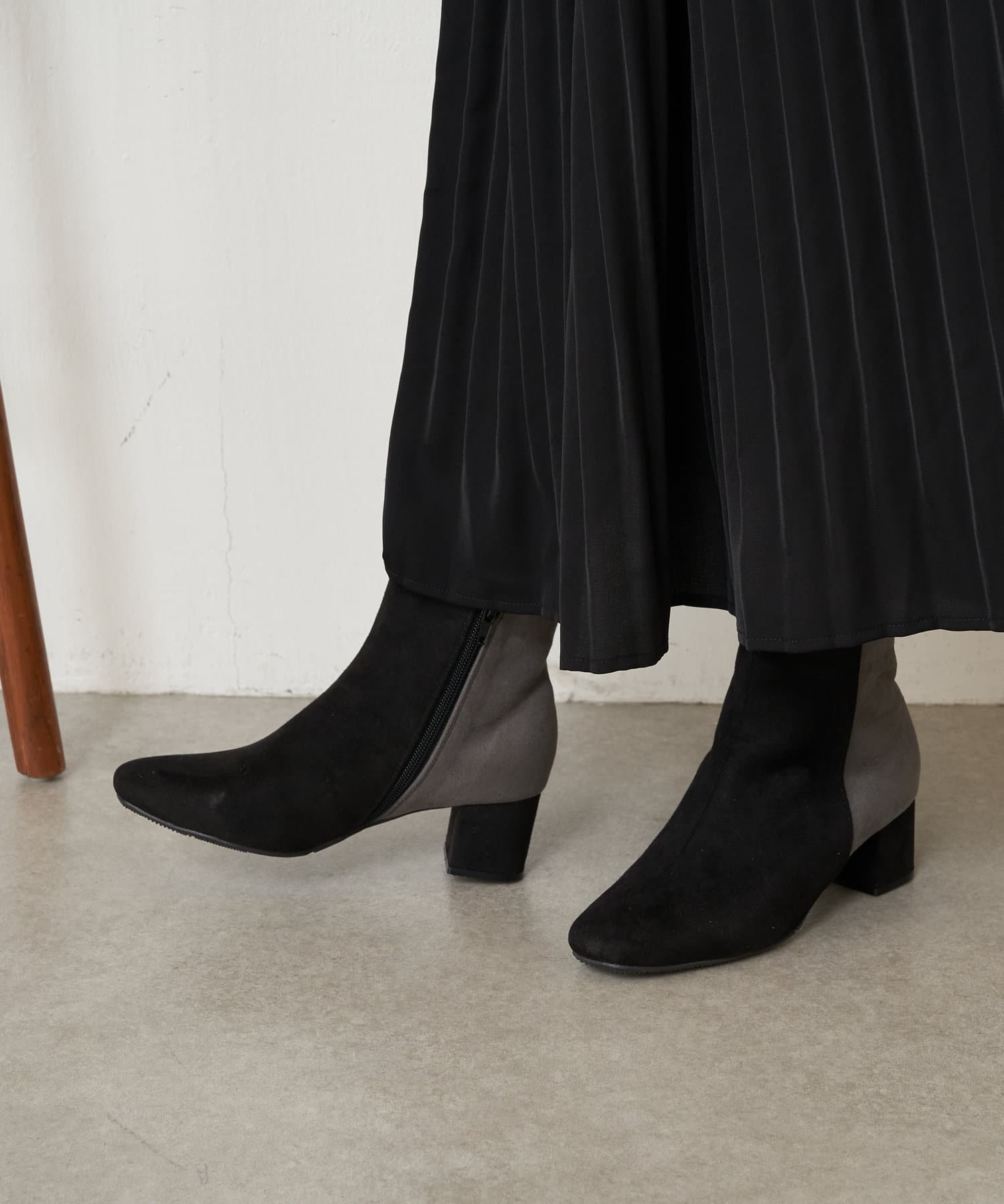 ・スエード調の生地でさりげないバイカラーで個性が光る、とっておきの1足です。
