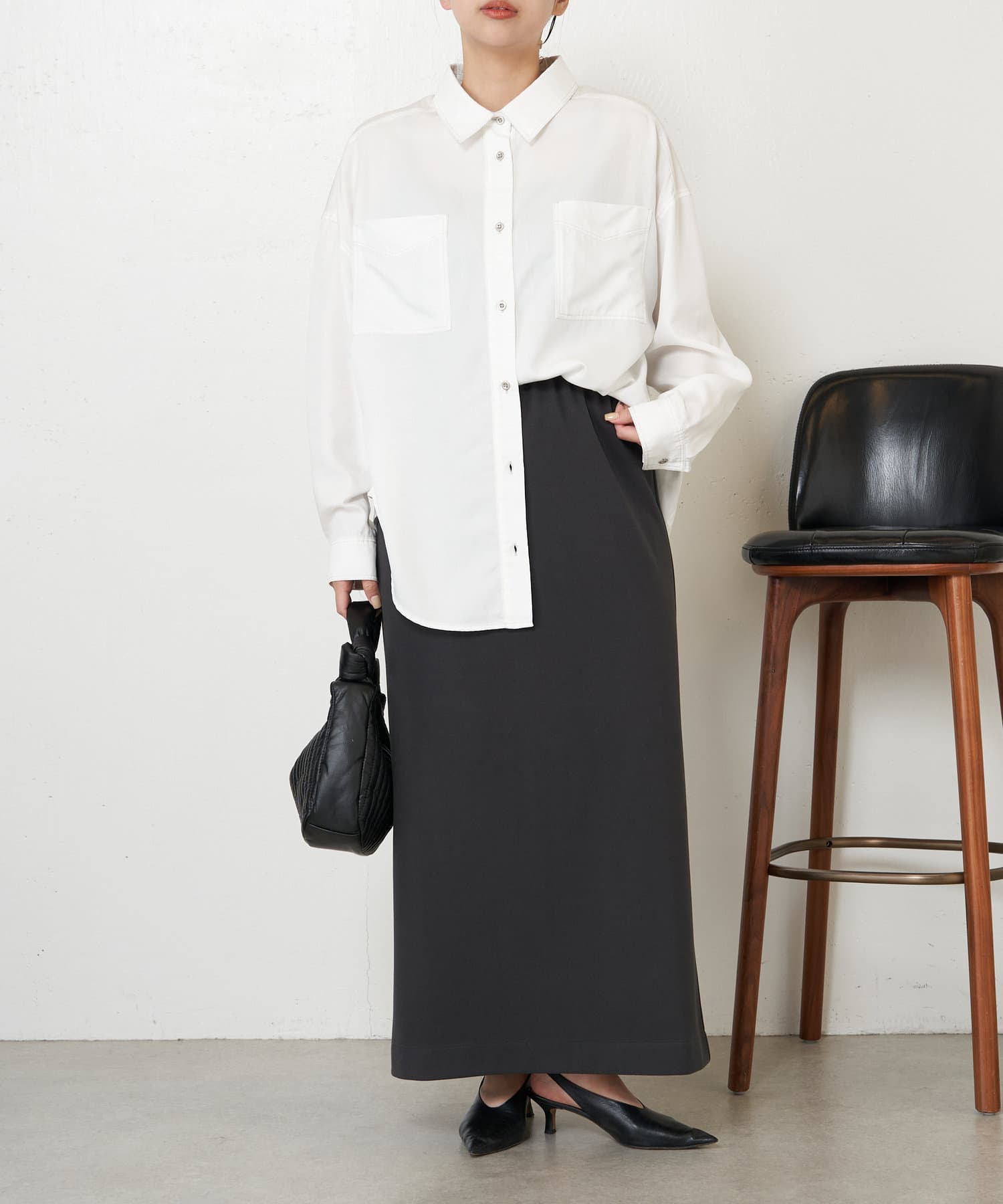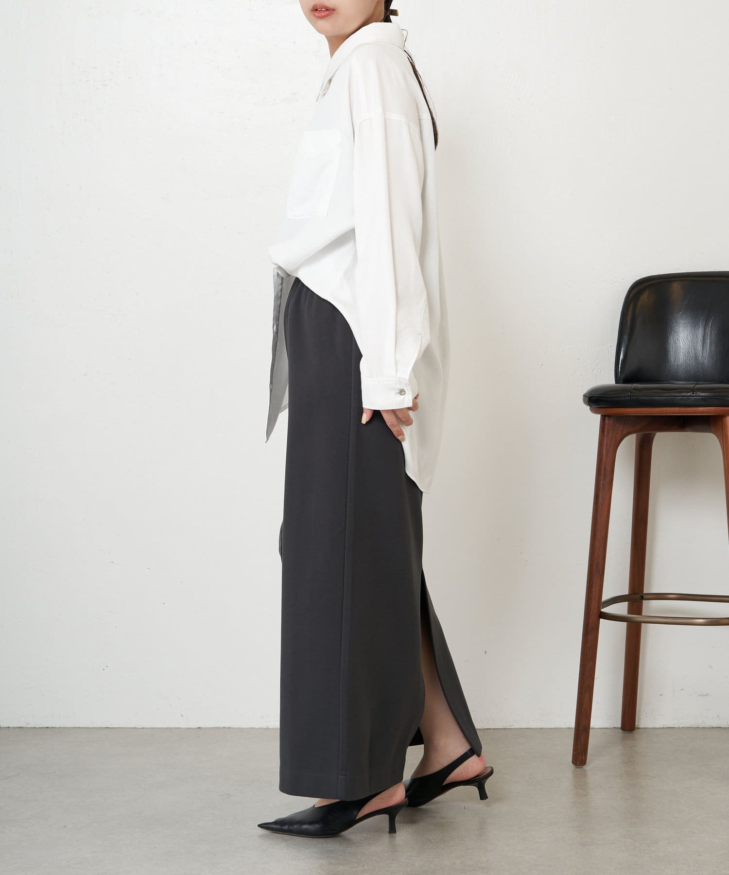 ・すっきり見えするIラインシルエットですが、体のラインを拾いにくく安心感あるところもポイント◎