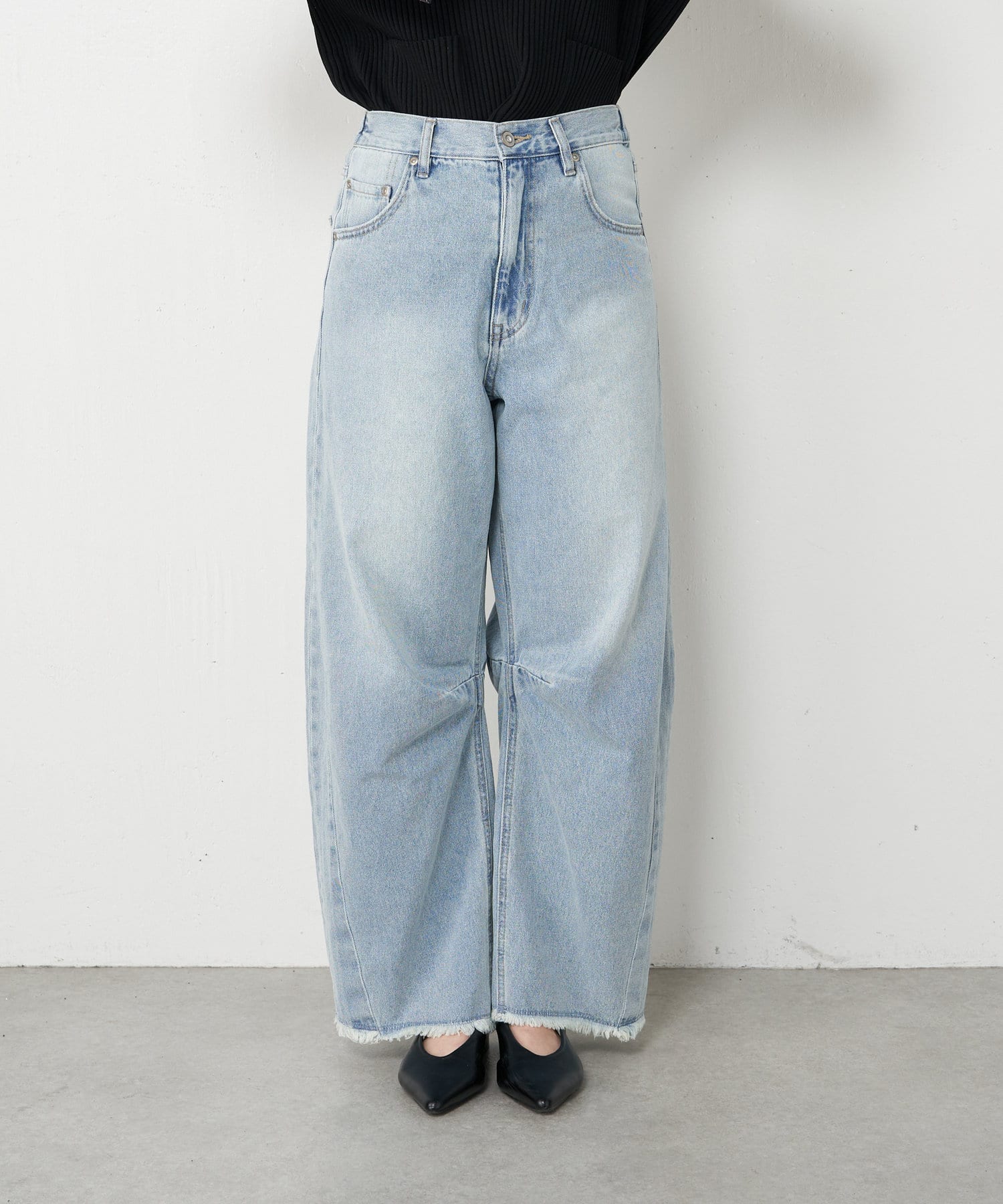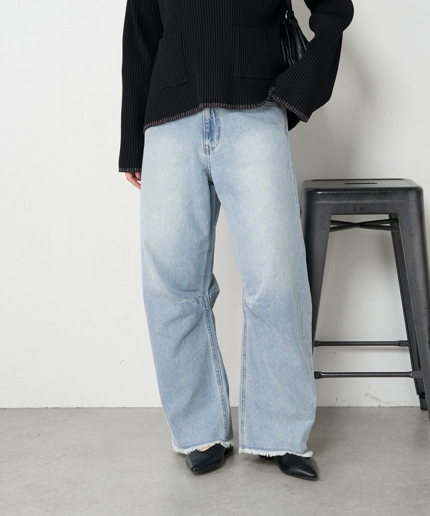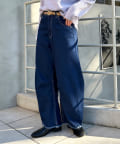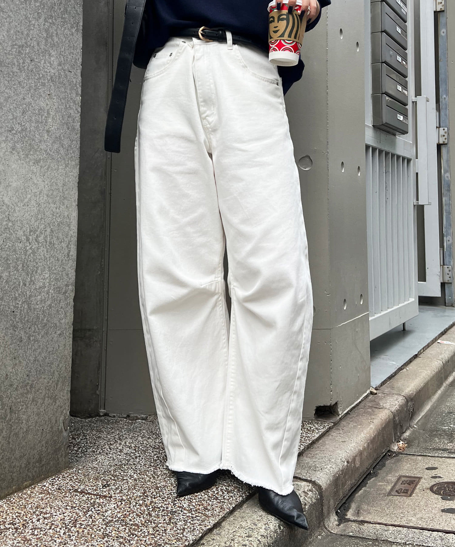 ・立体的なカーブシルエットが特徴的なデニムパンツ。