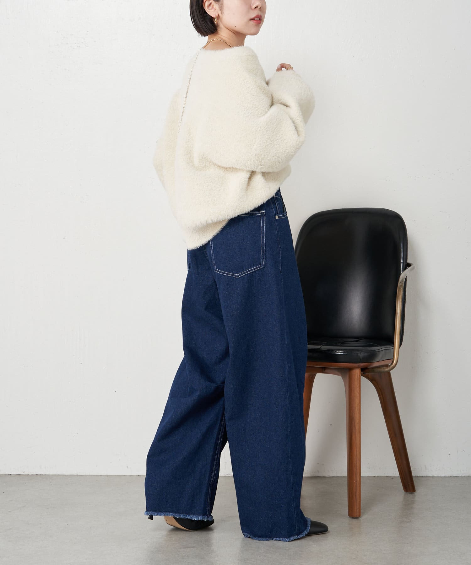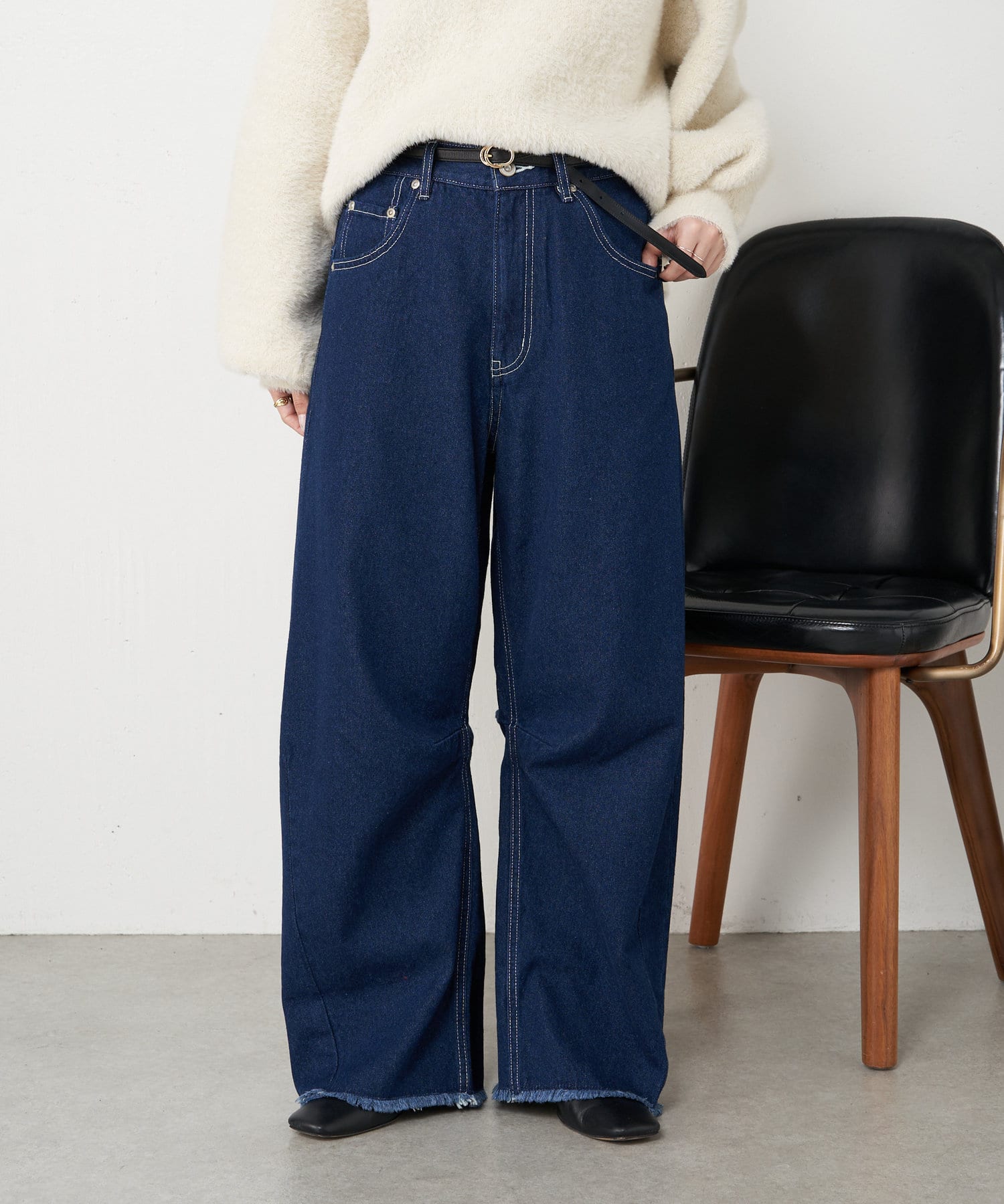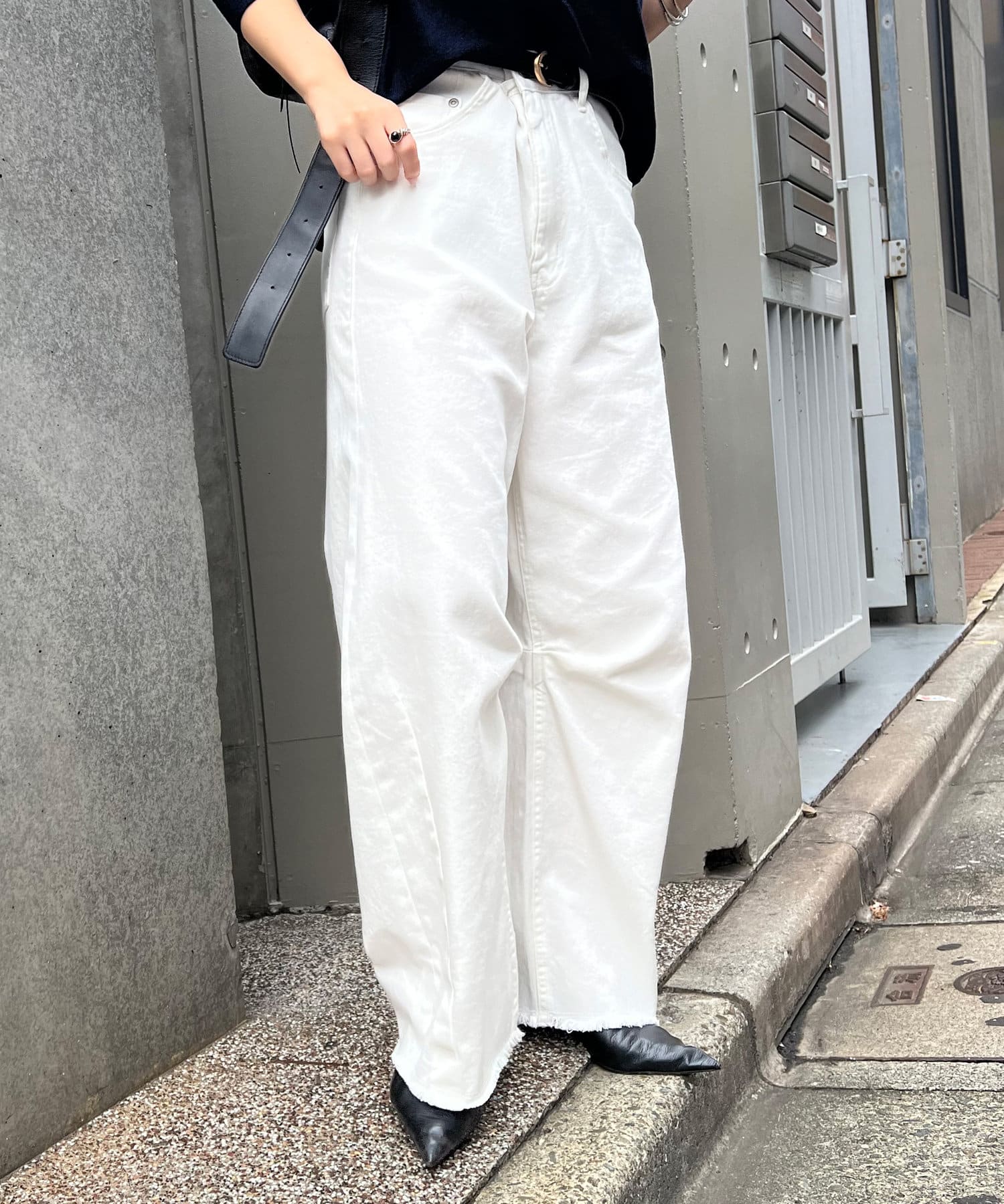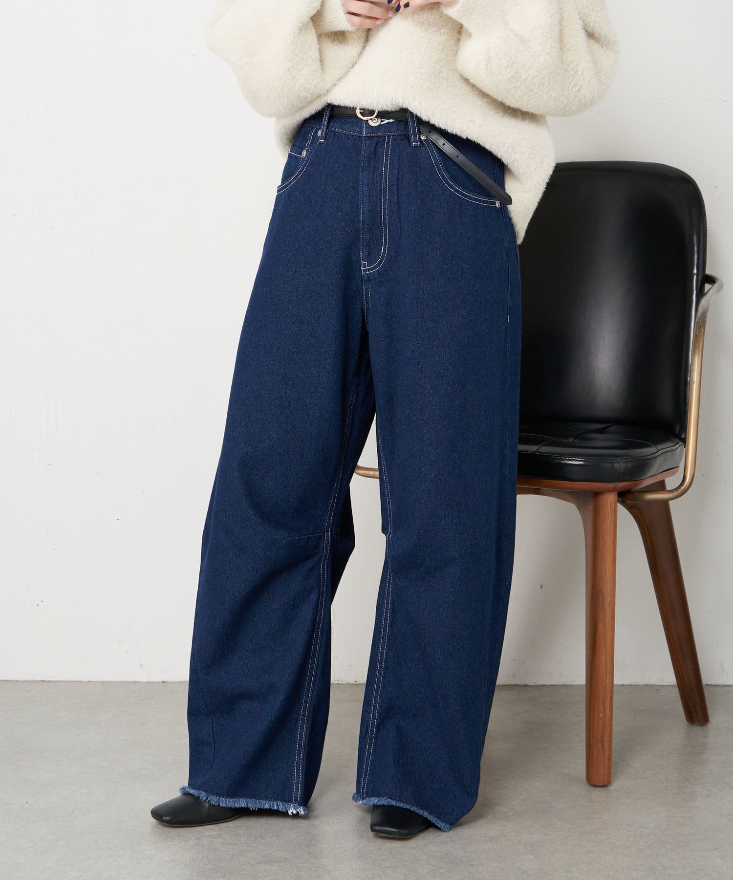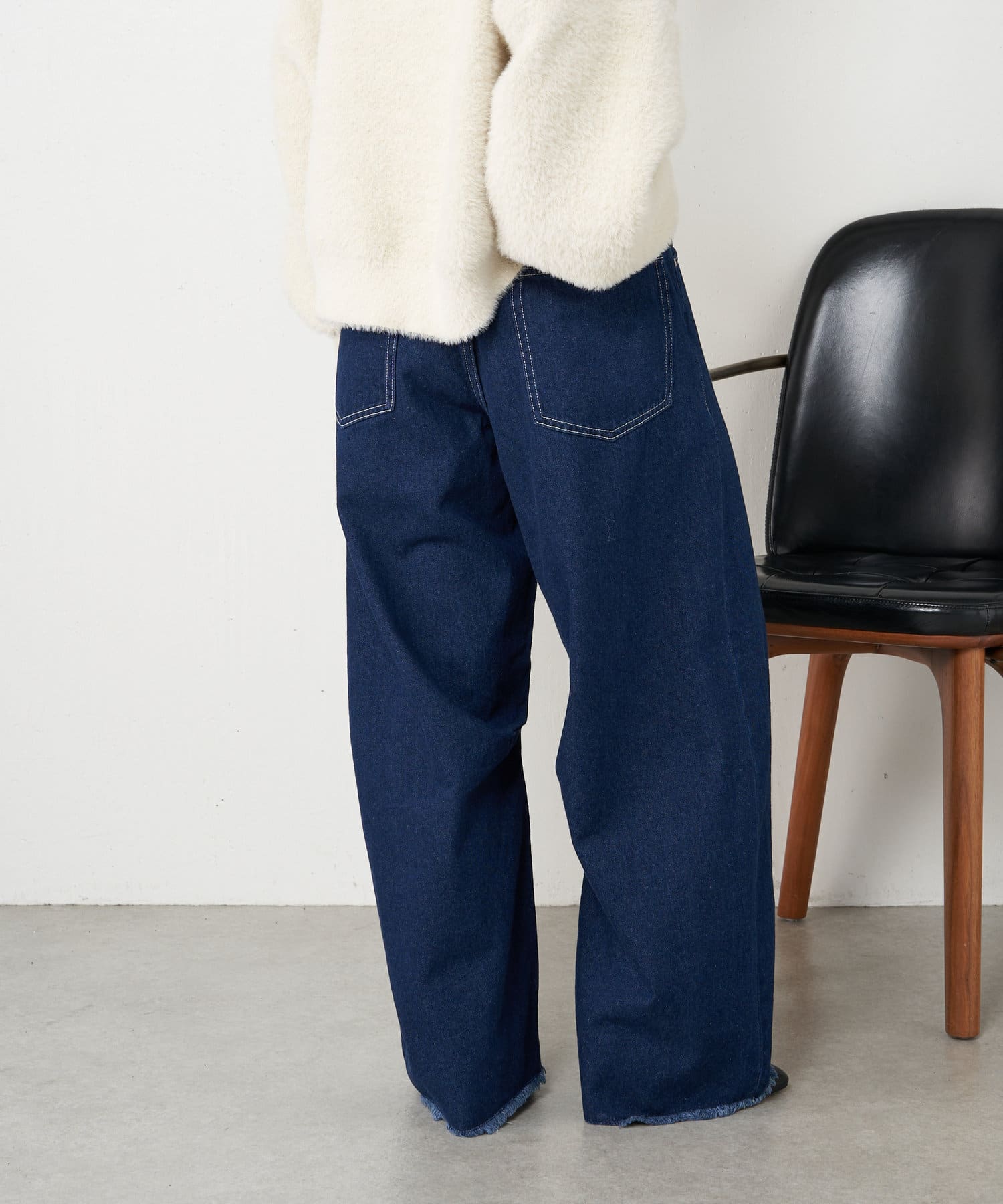 ・ワイドなシルエットながらも美脚見えするデニムです。