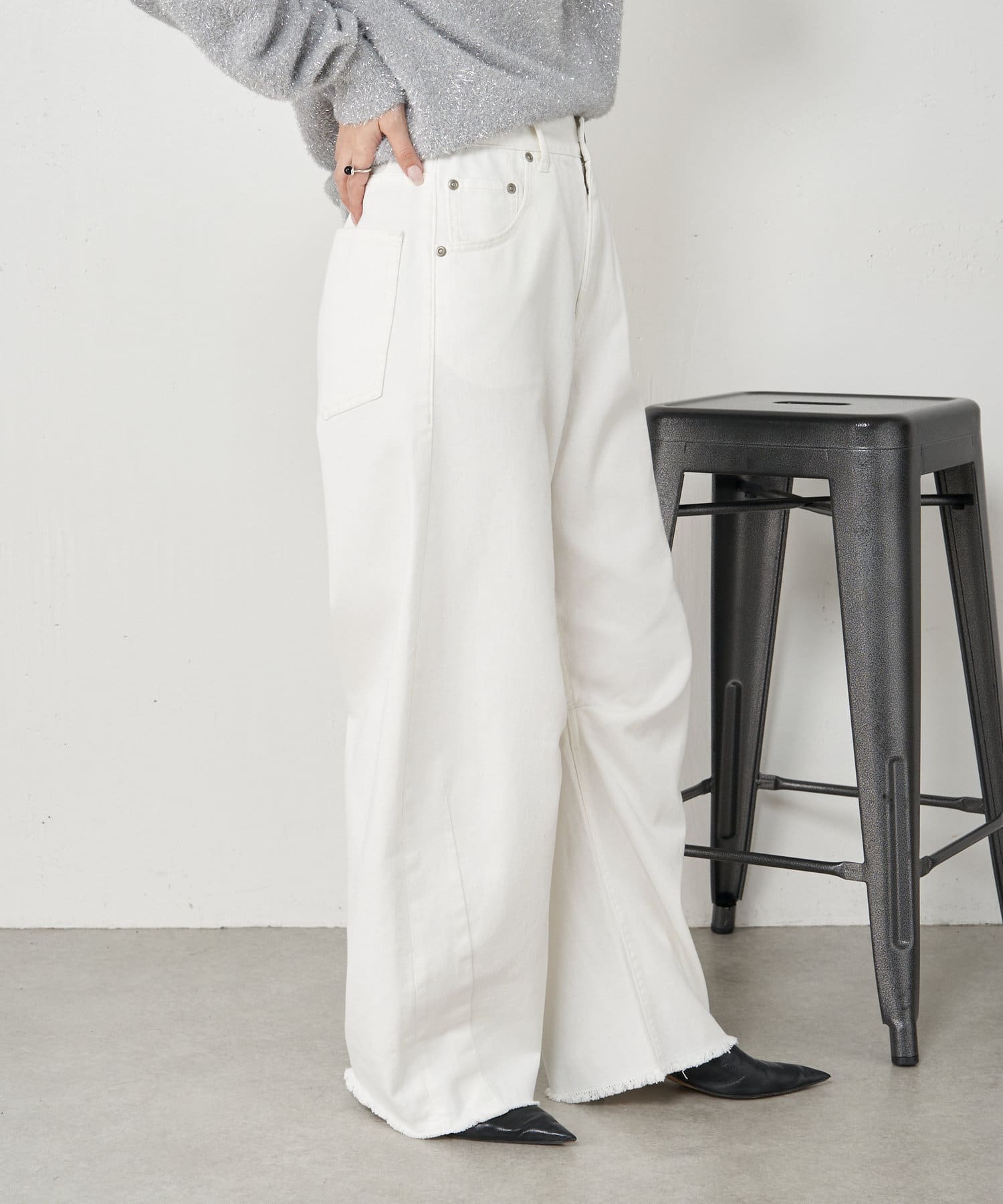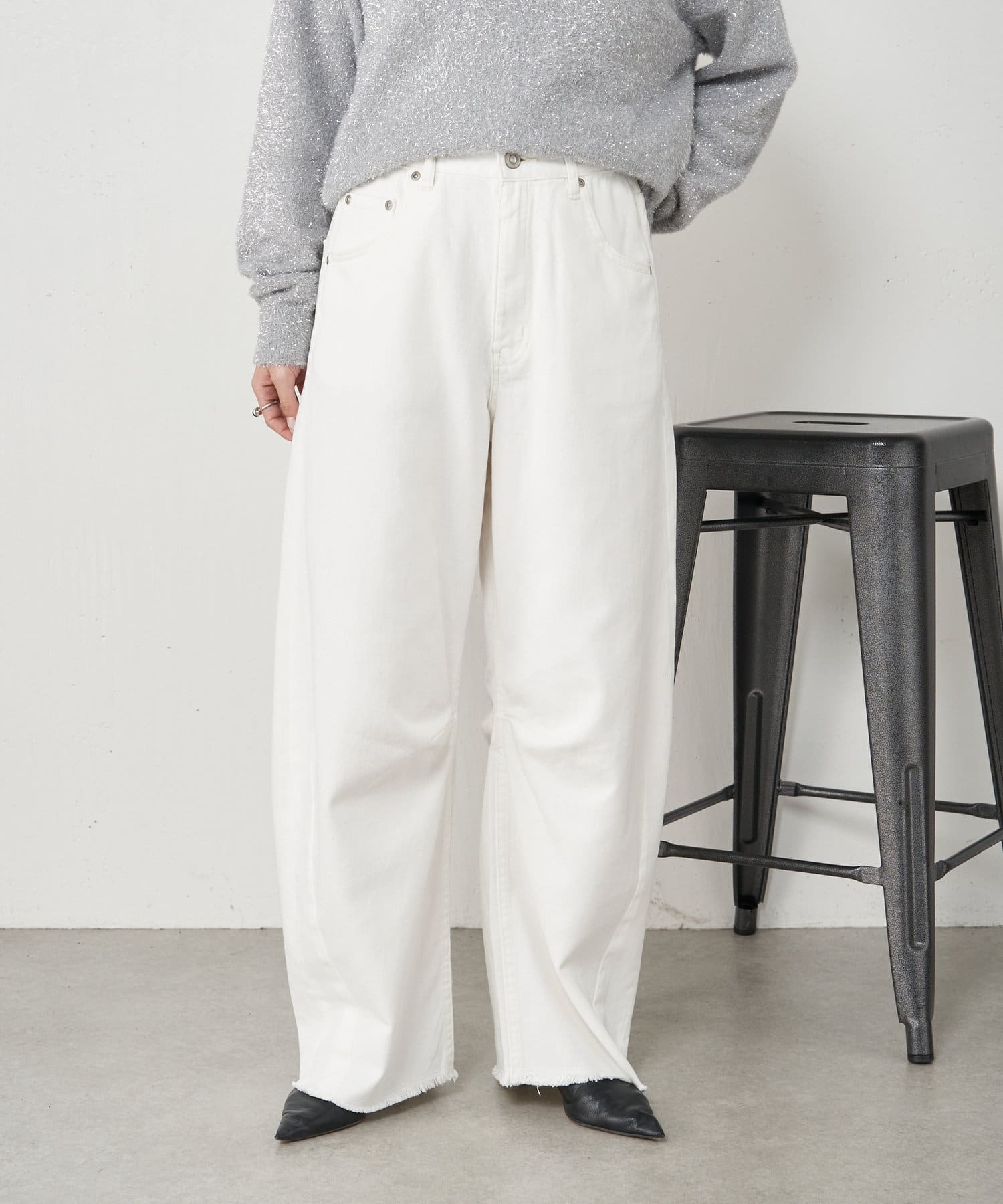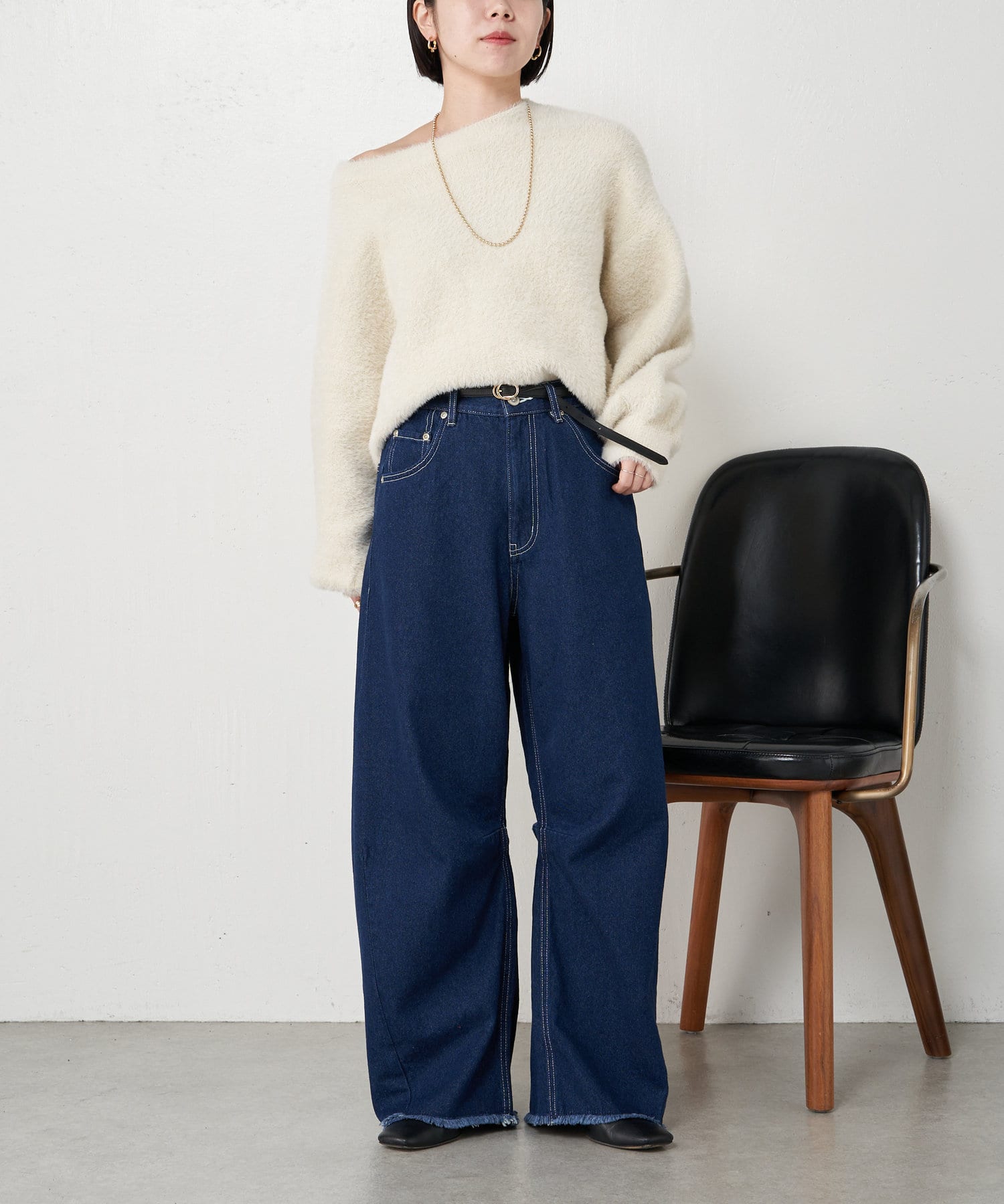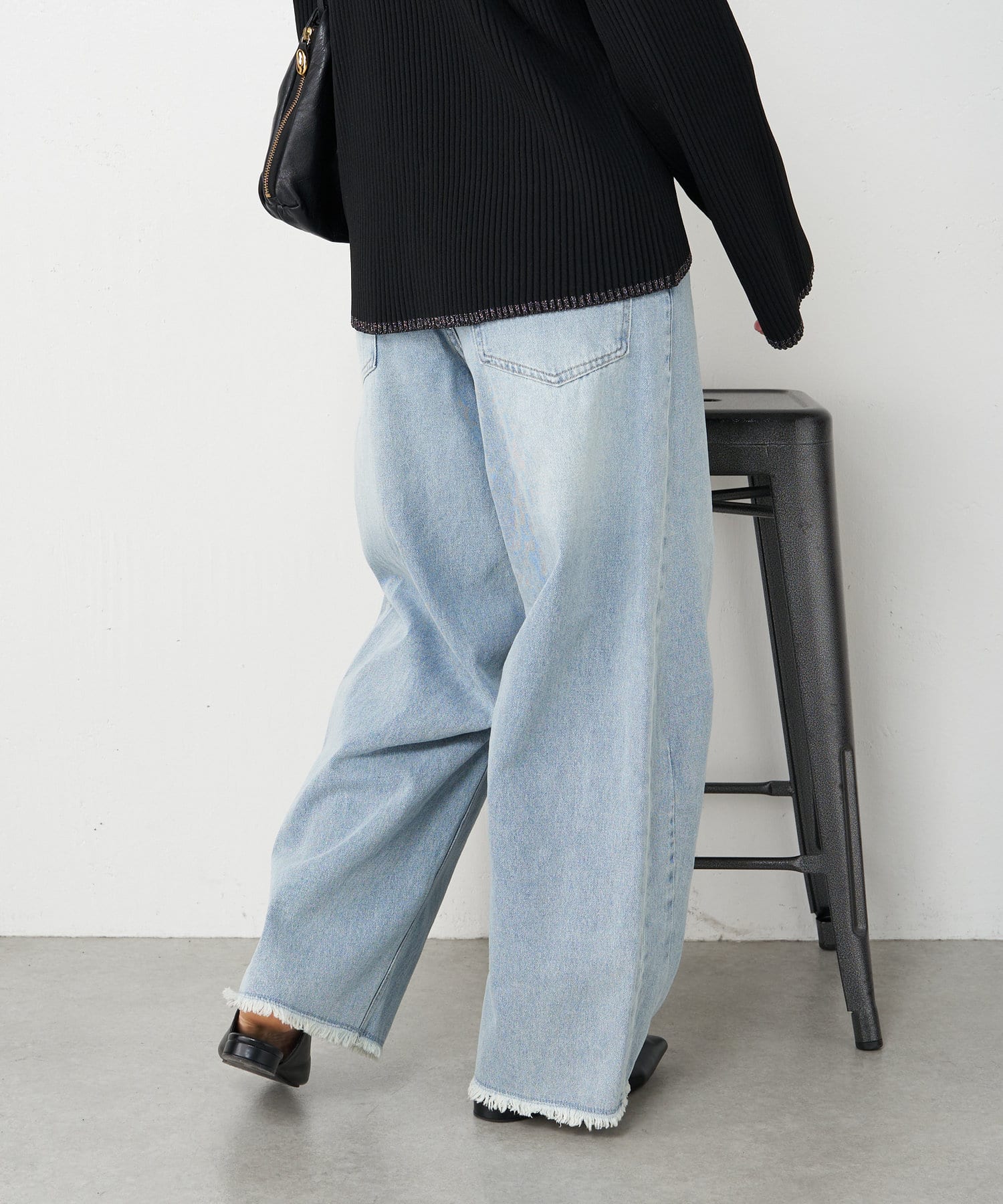 ・ワイドなシルエットながらも美脚見えするデニムです。