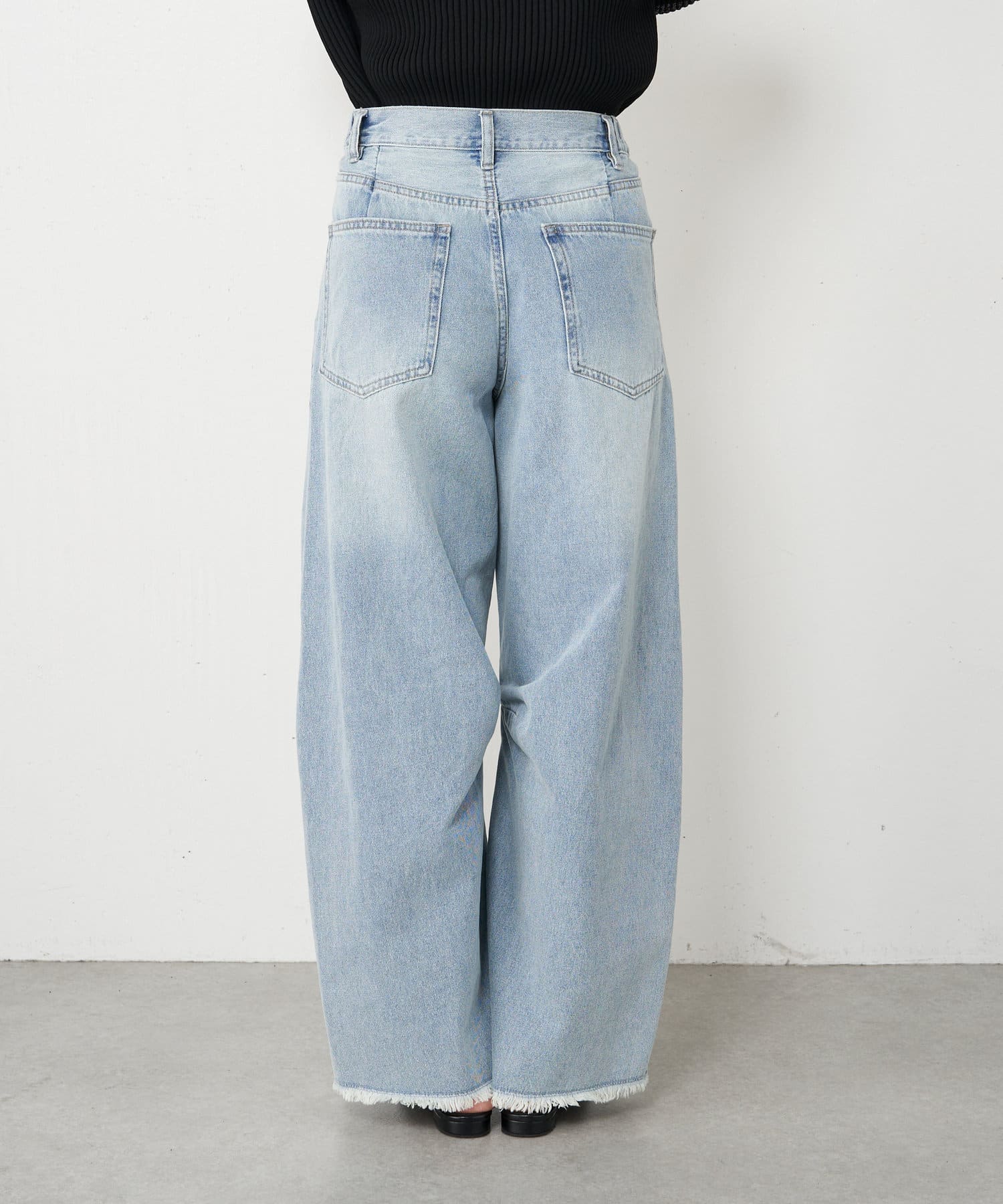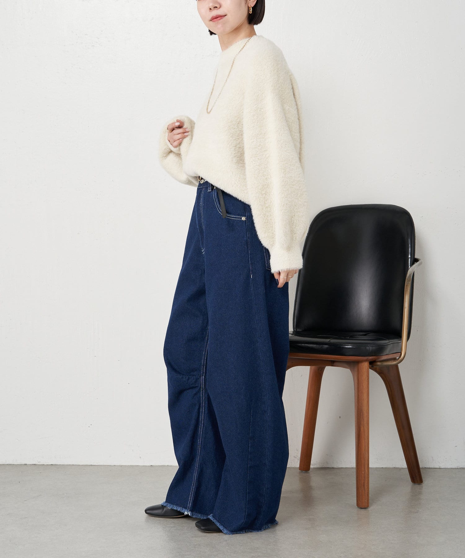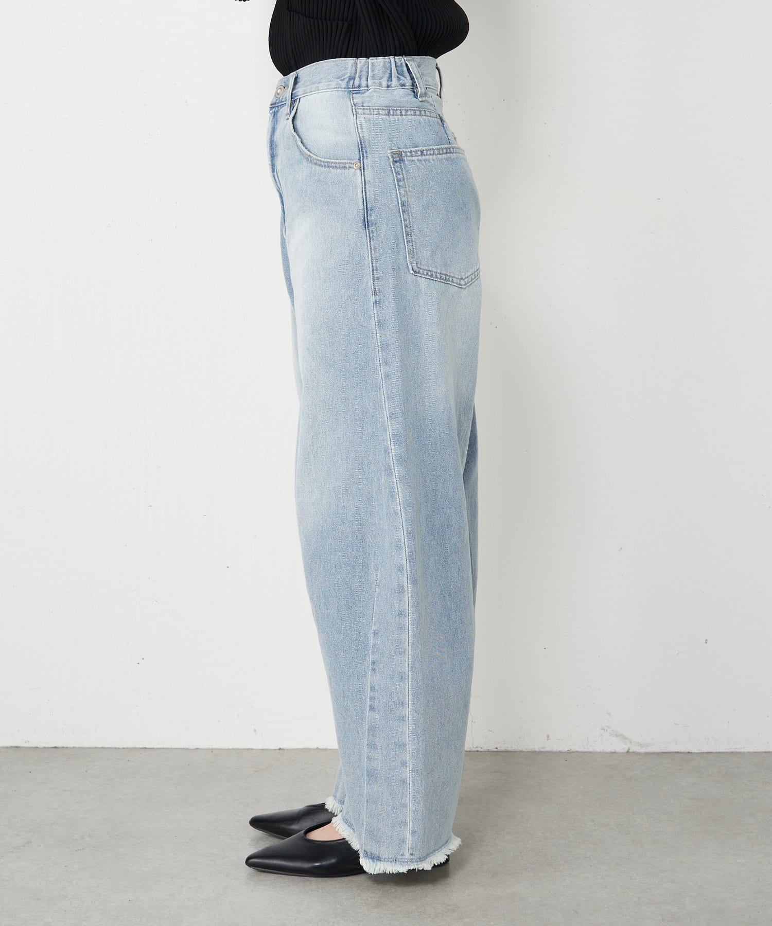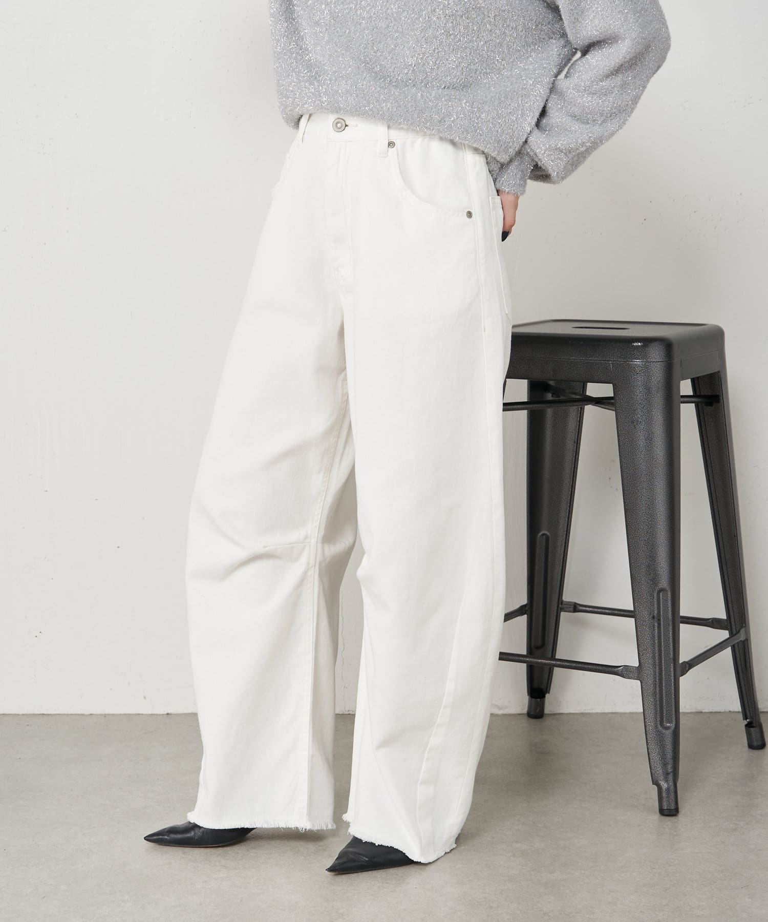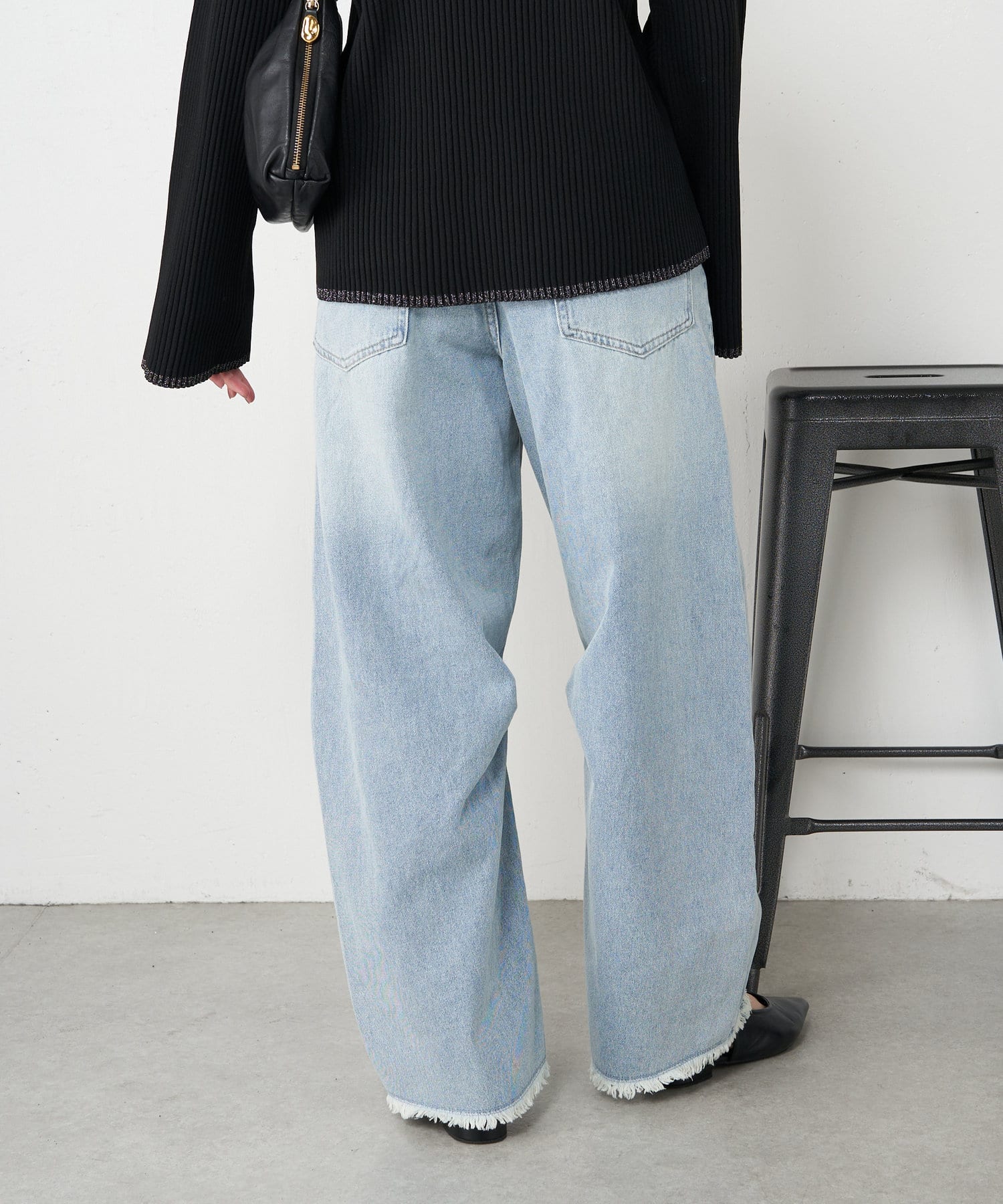・ワイドなシルエットながらも美脚見えするデニムです。