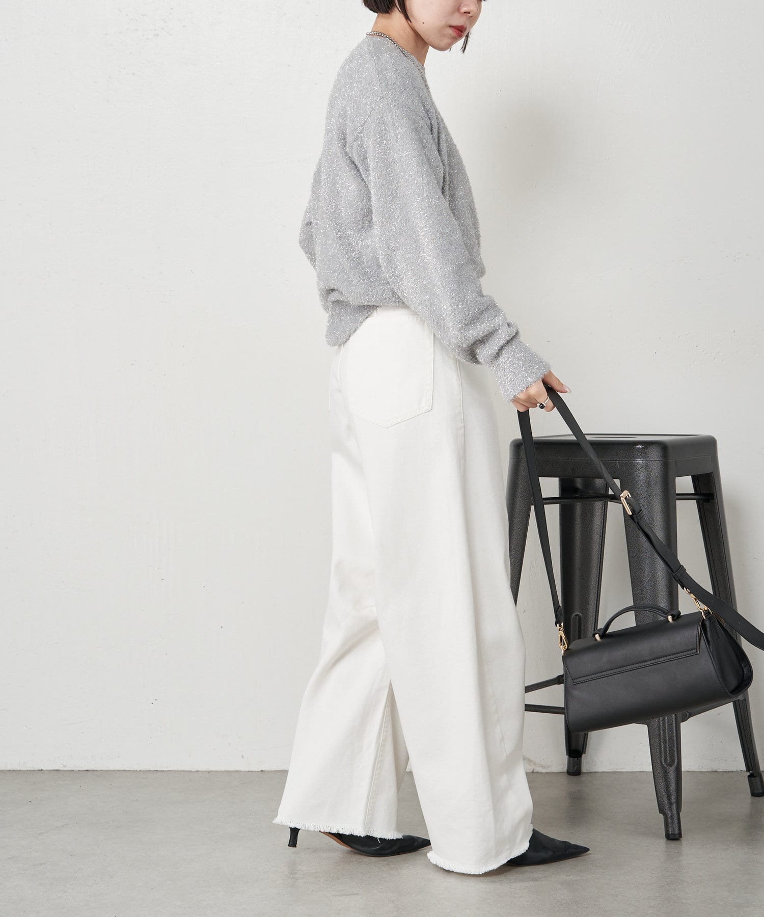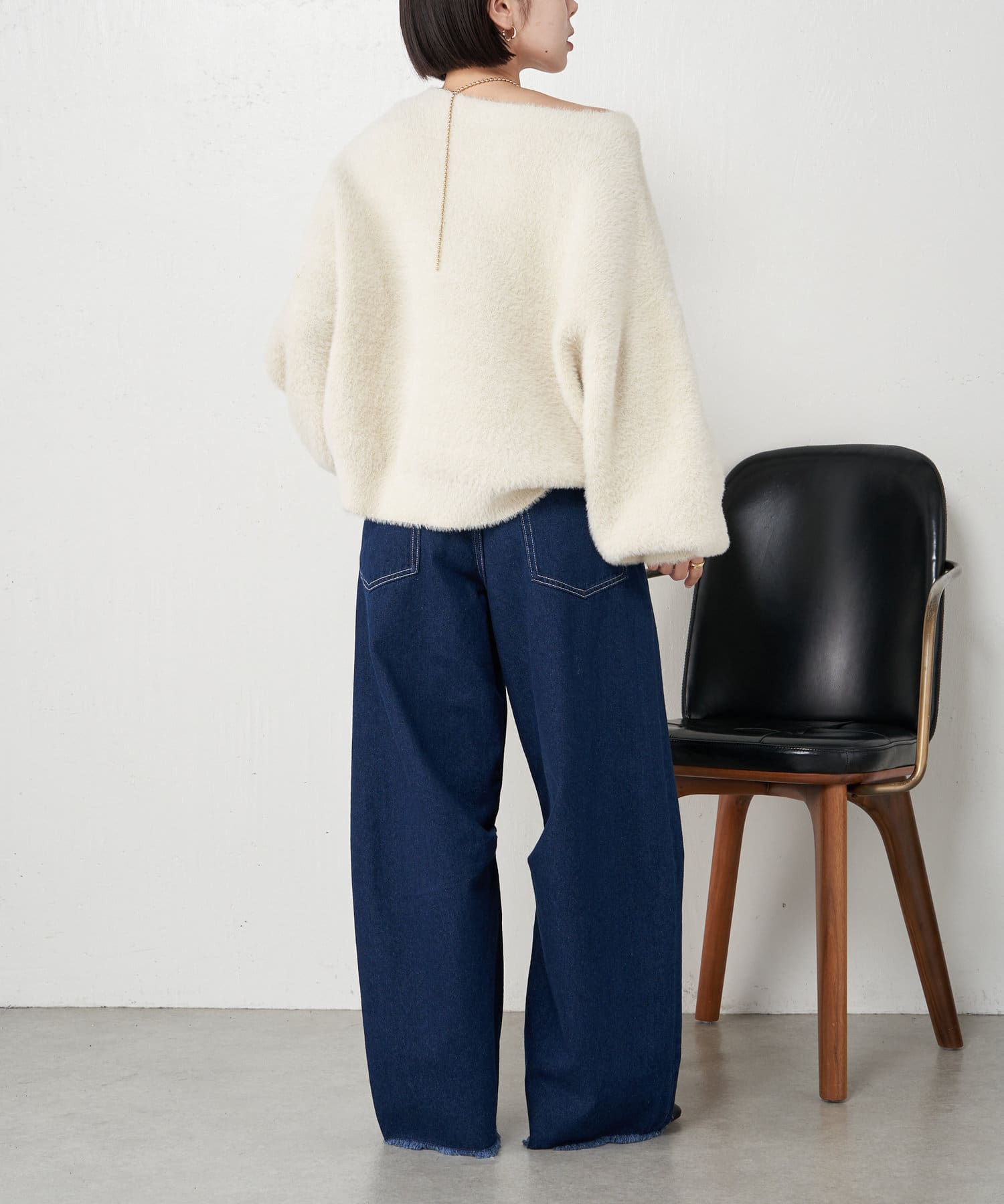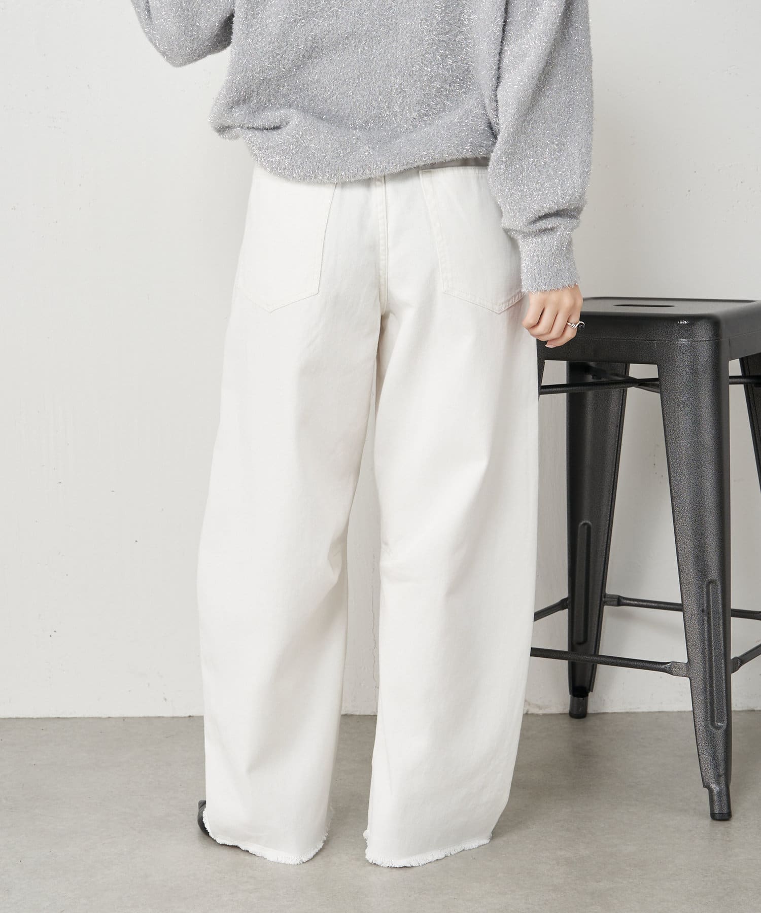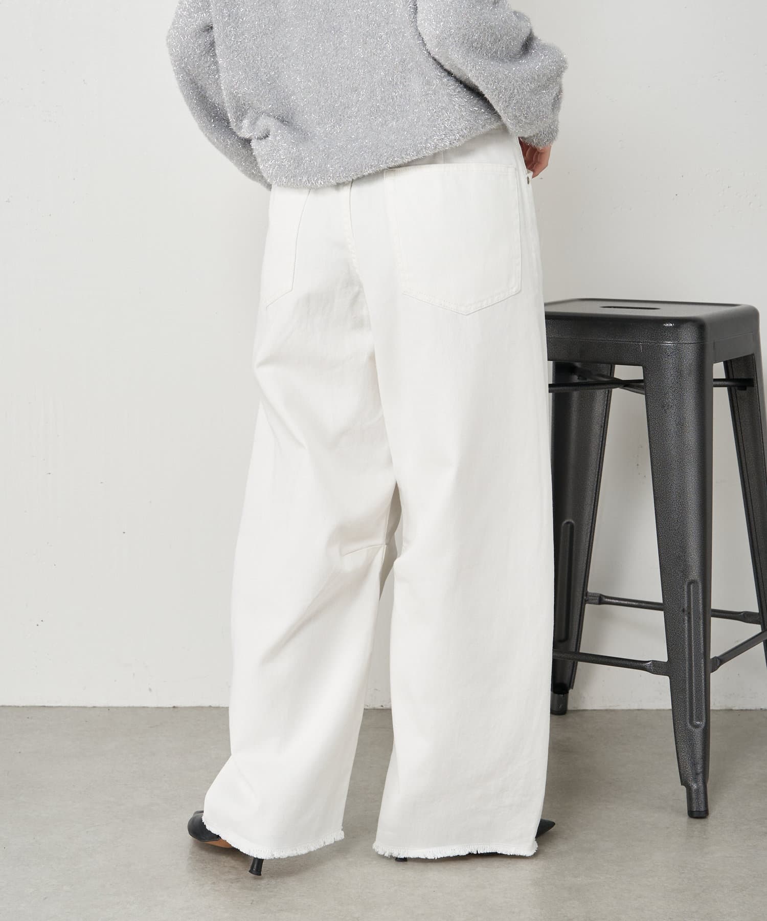 ・ワイドなシルエットながらも美脚見えするデニムです。