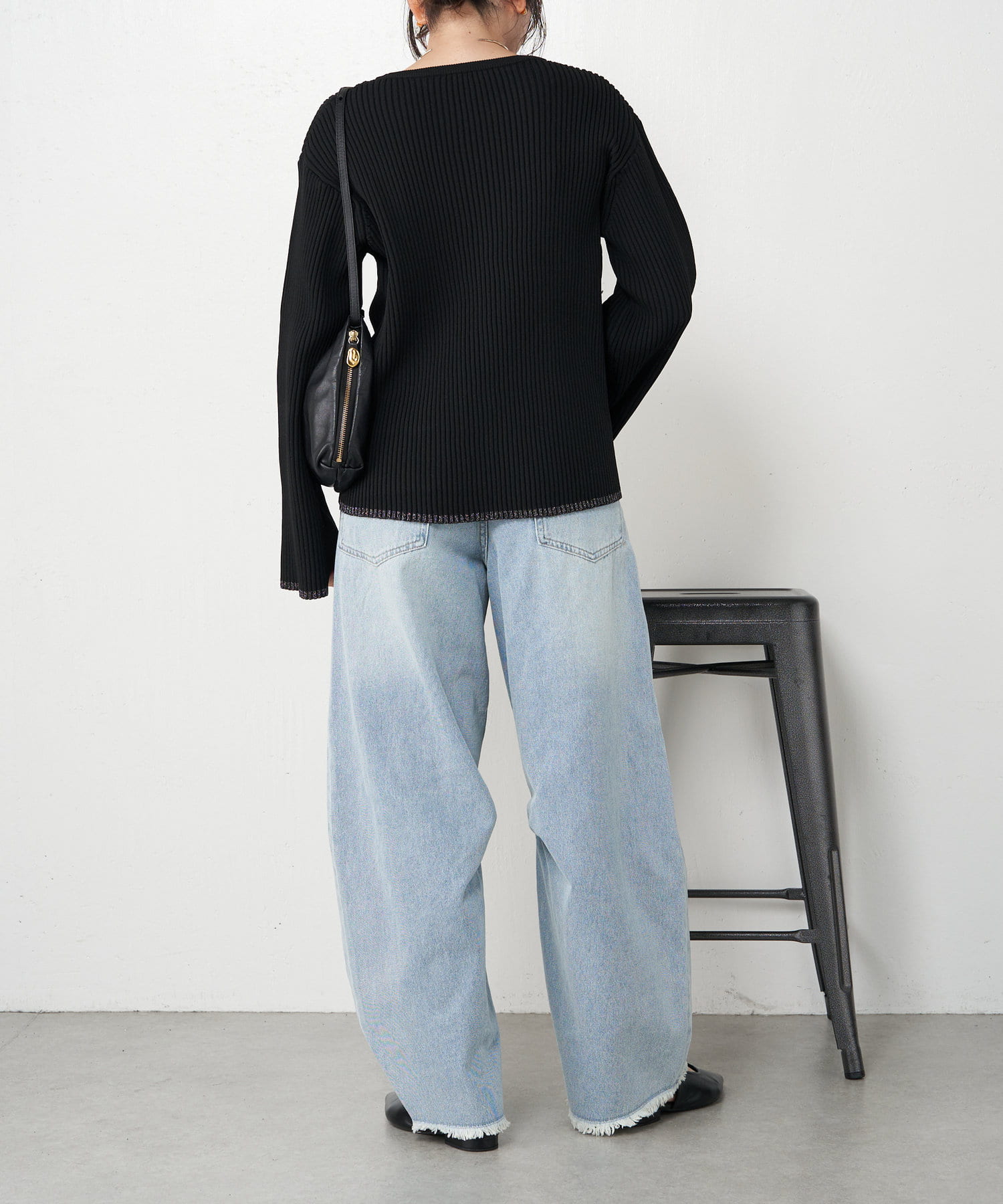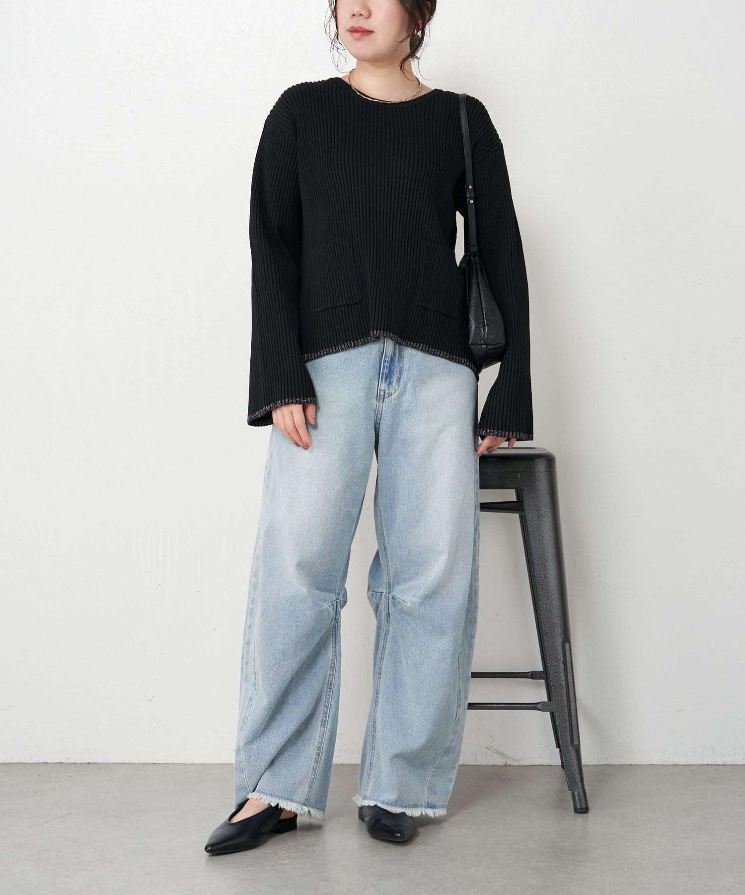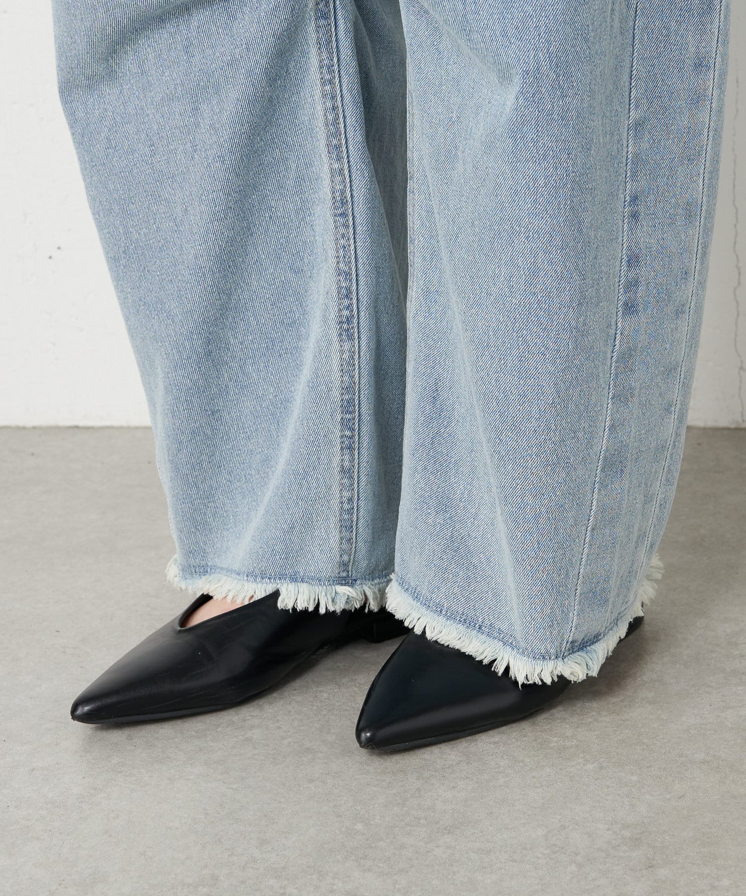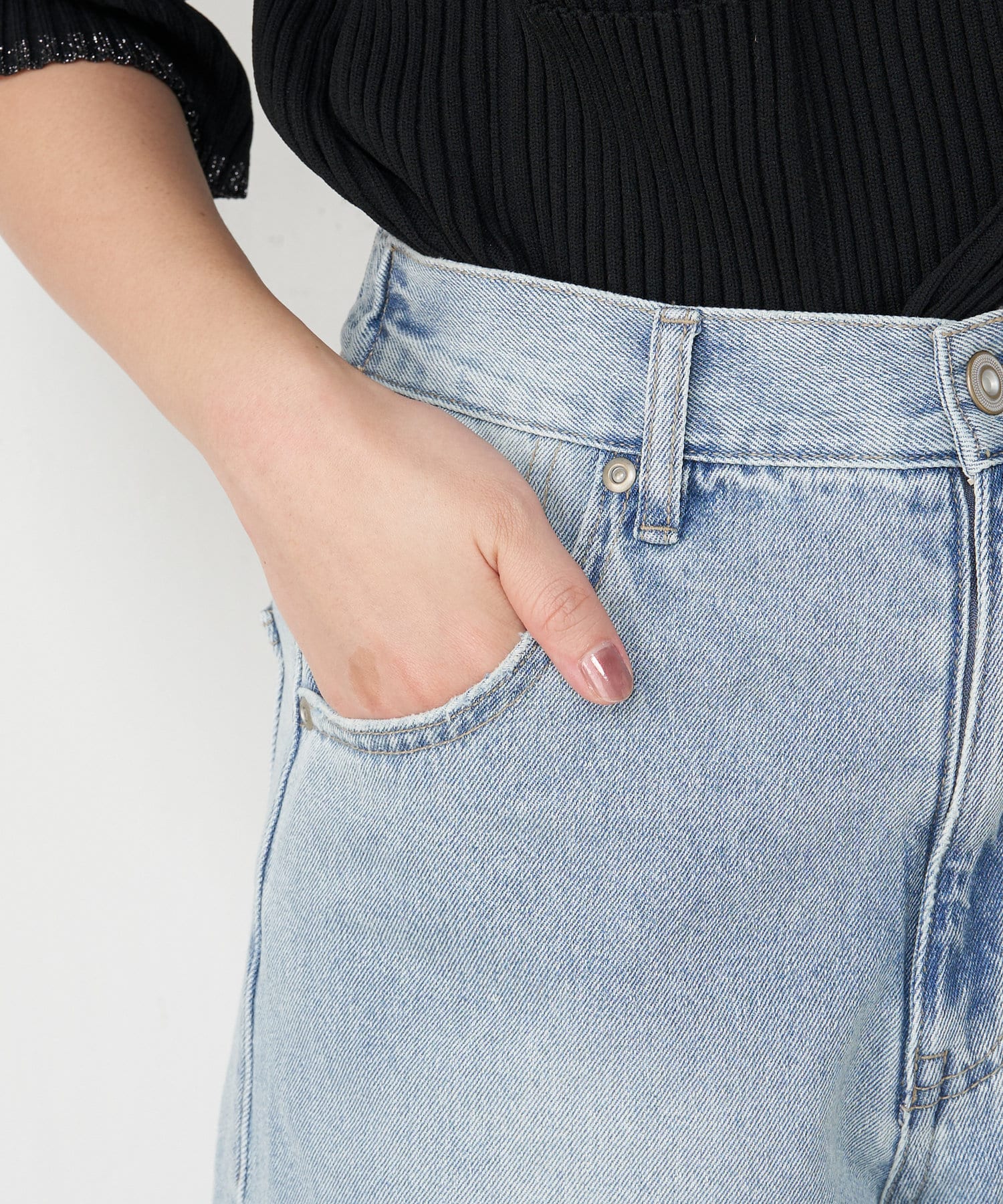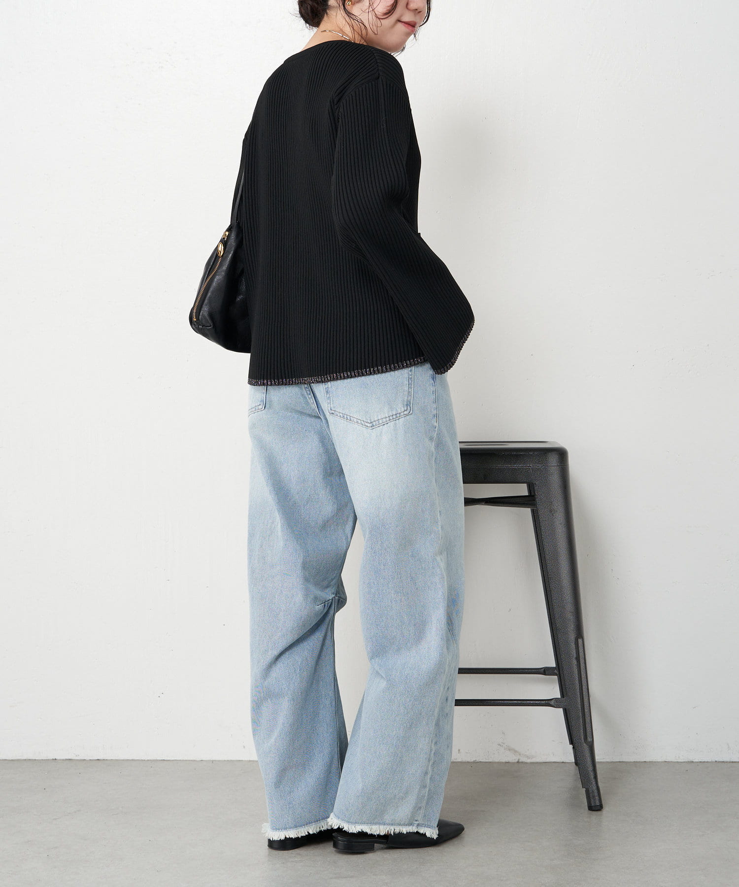・ワイドなシルエットながらも美脚見えするデニムです。
