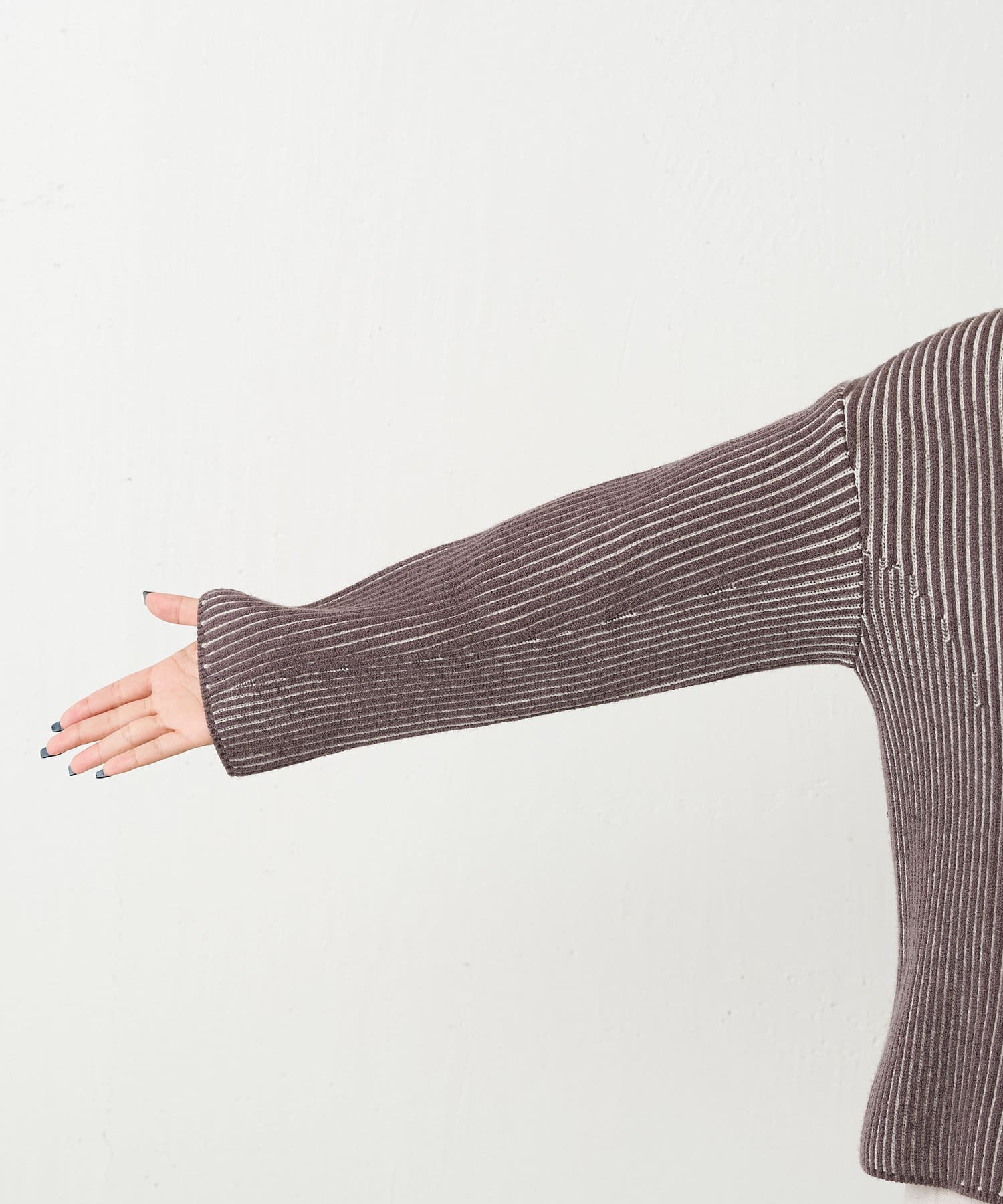 ・カジュアルになりすぎない、リブデザインがこなれ感満載、ゆるっと長めの袖で可愛らしく、女性っぽさもある一枚。