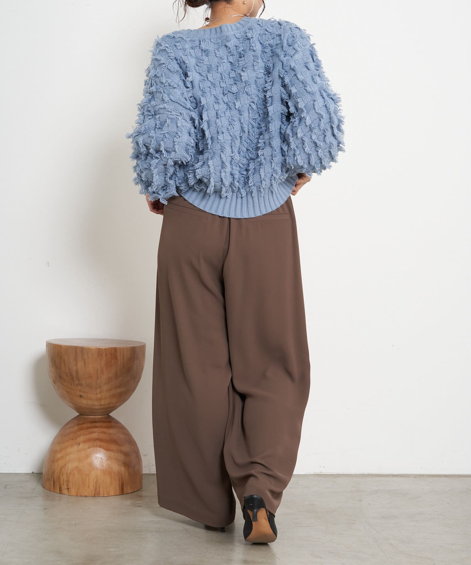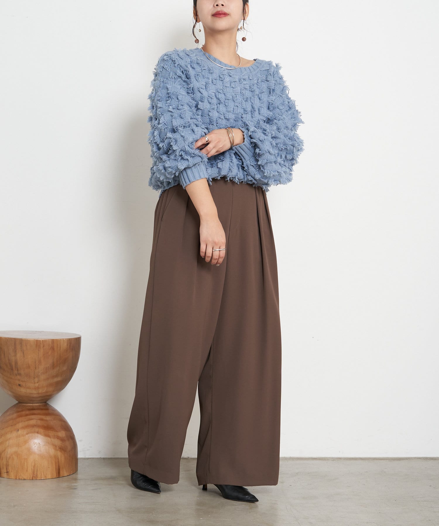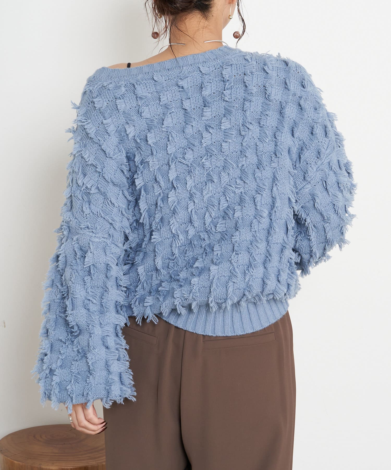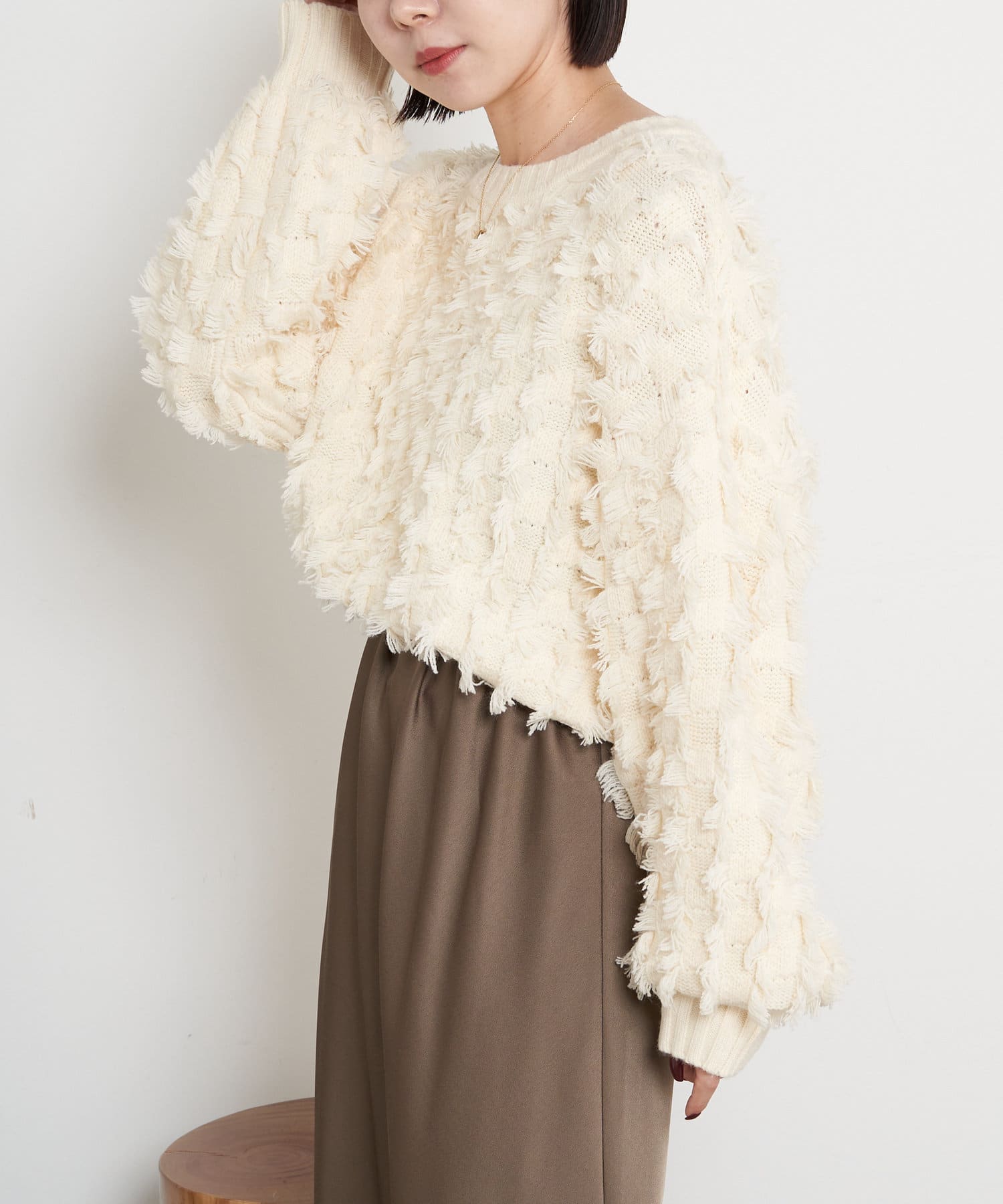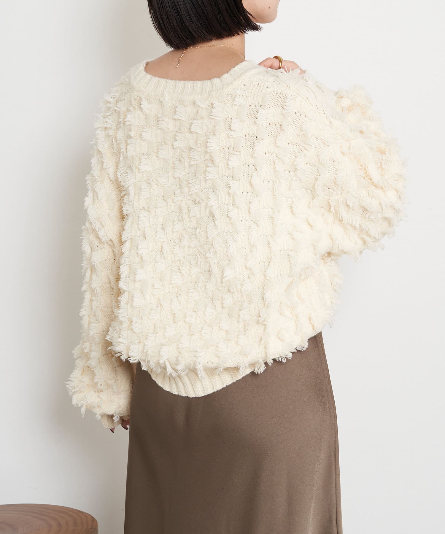 ・ボリューム感が目を惹くフリンジニット。