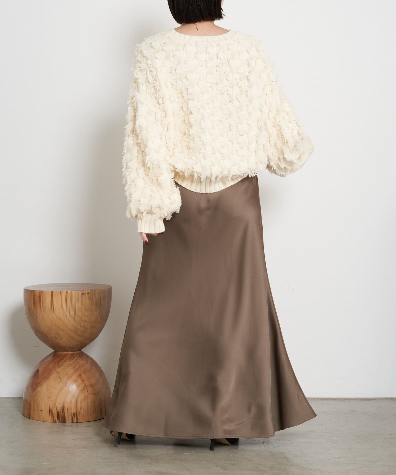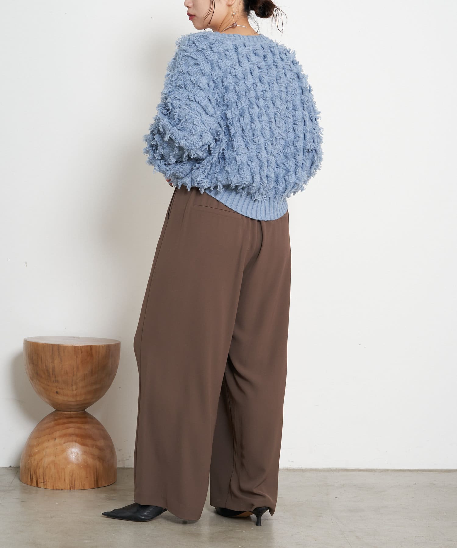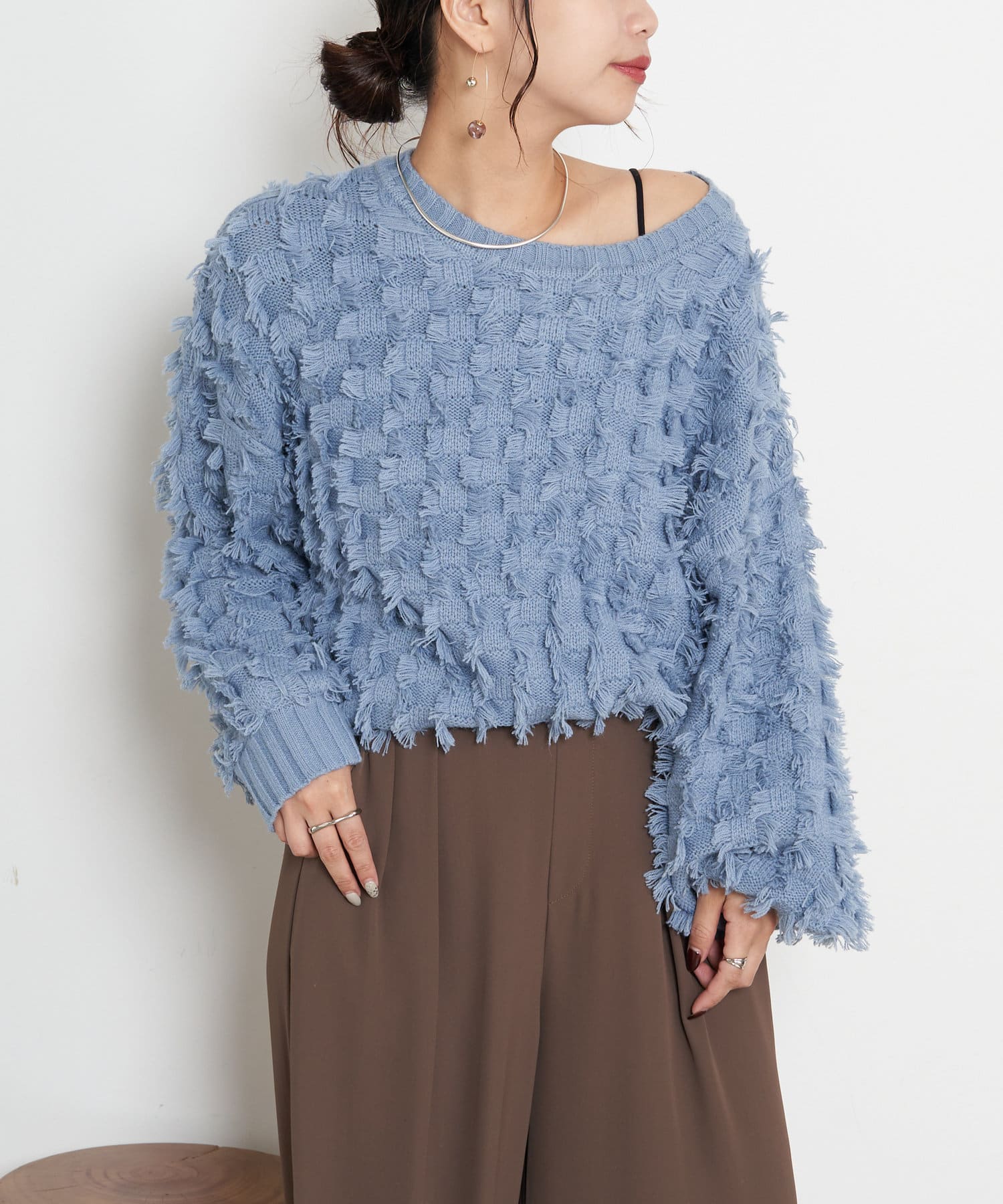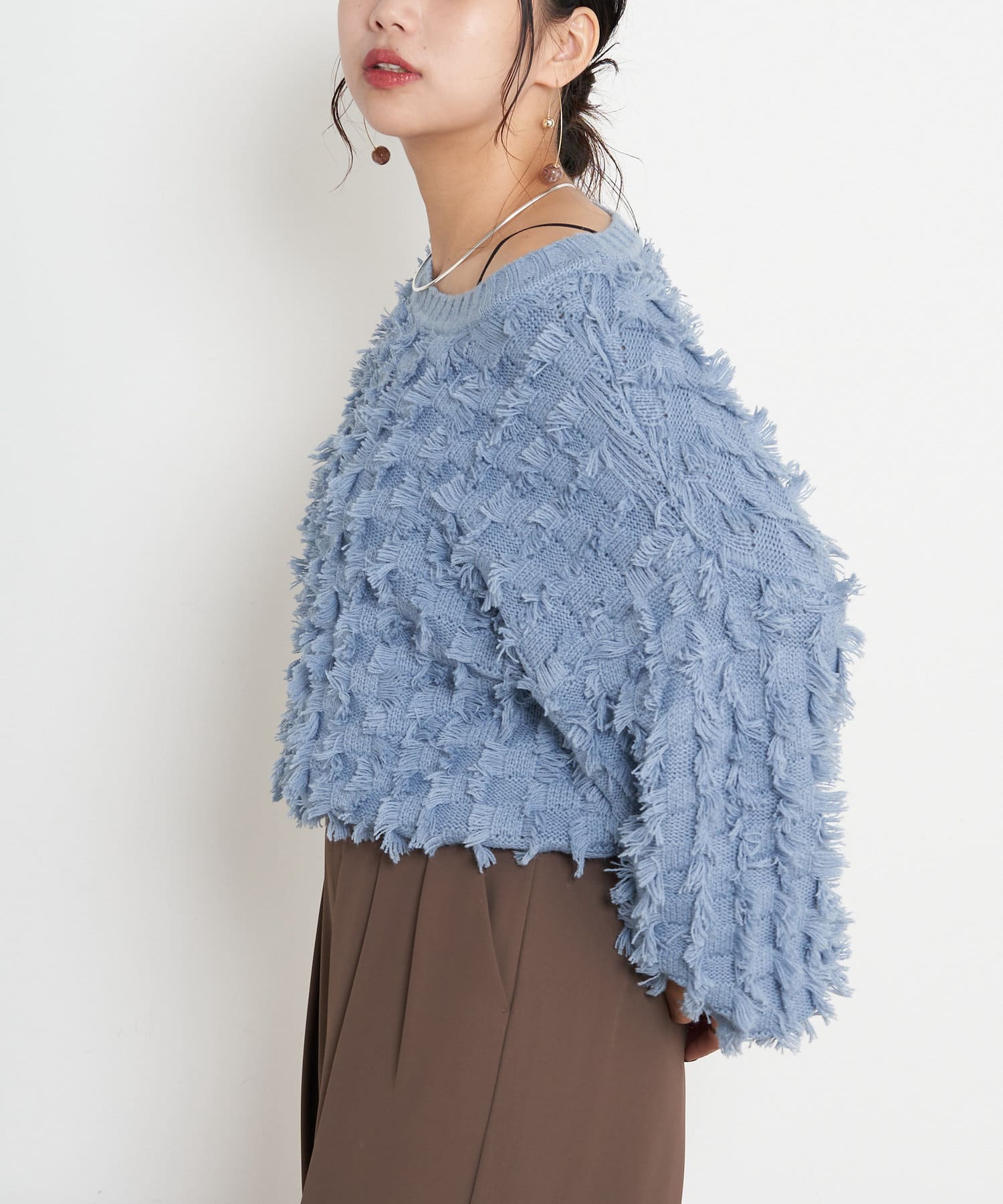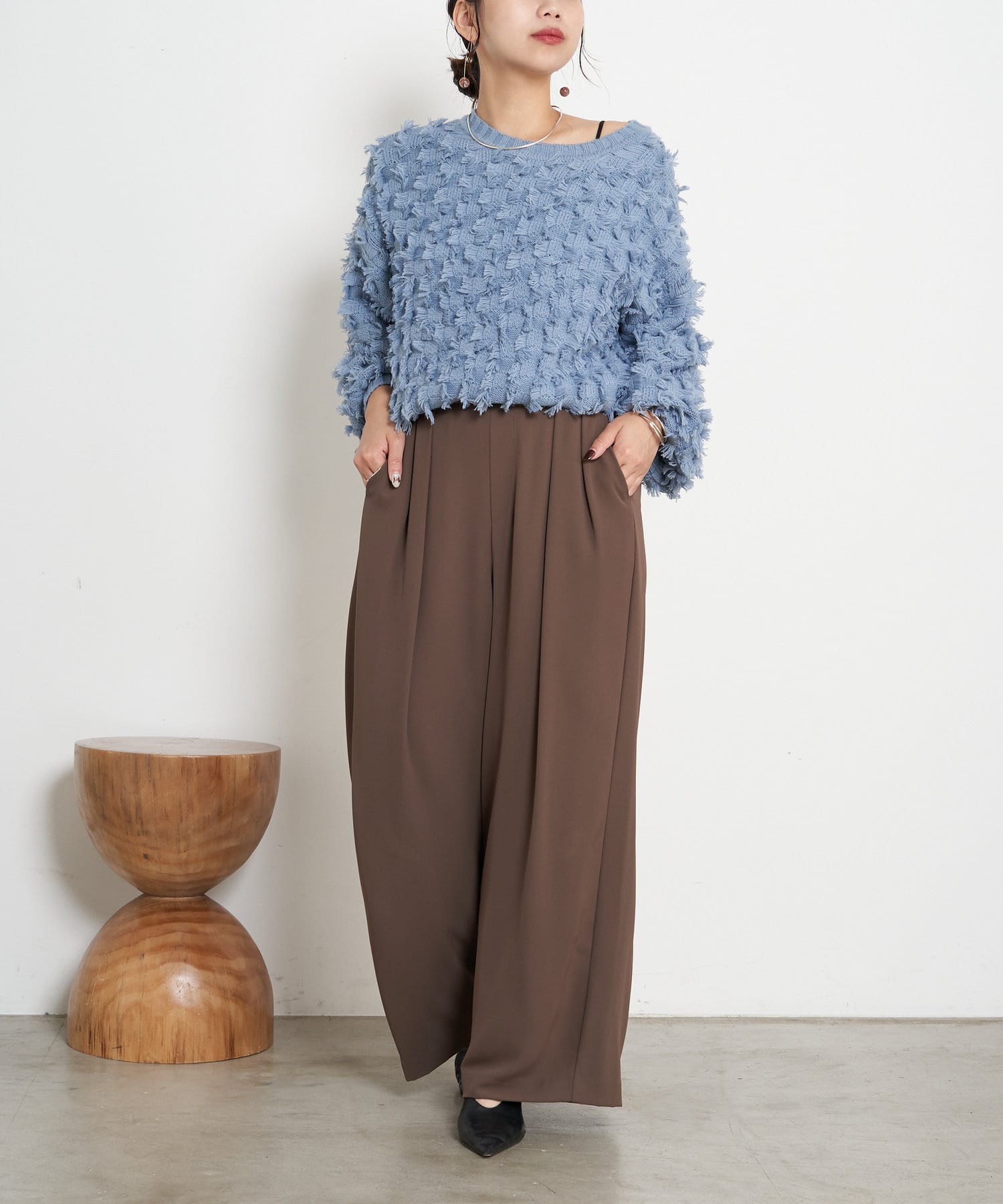 ・ボリューム感が目を惹くフリンジニット。