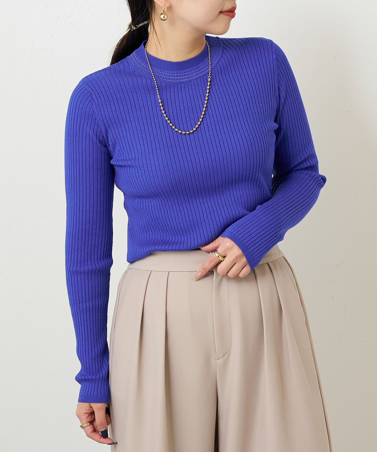 ・少し高さを持たせたネックで品の良さも加わり、女性らしい着こなしをかなえます。