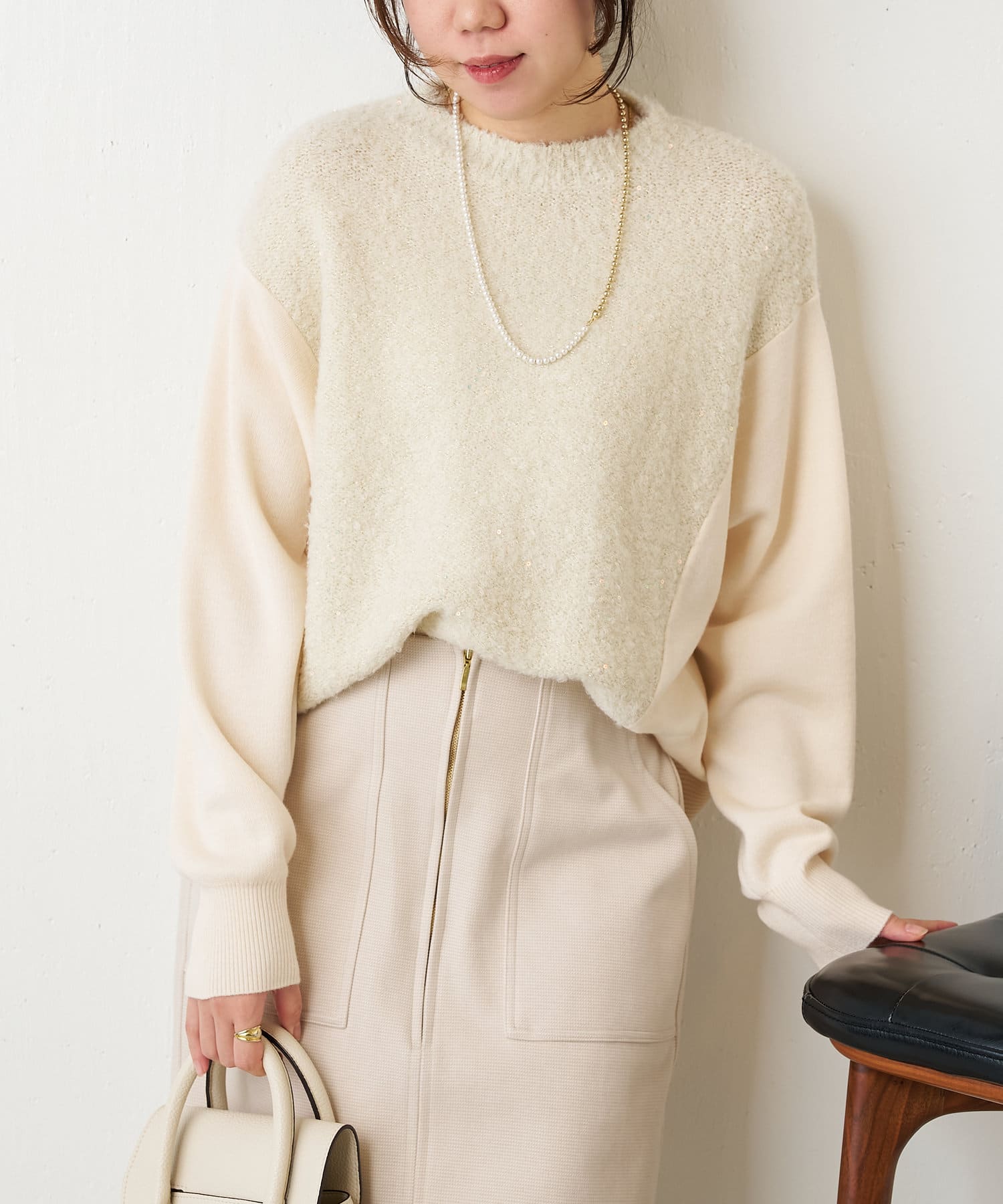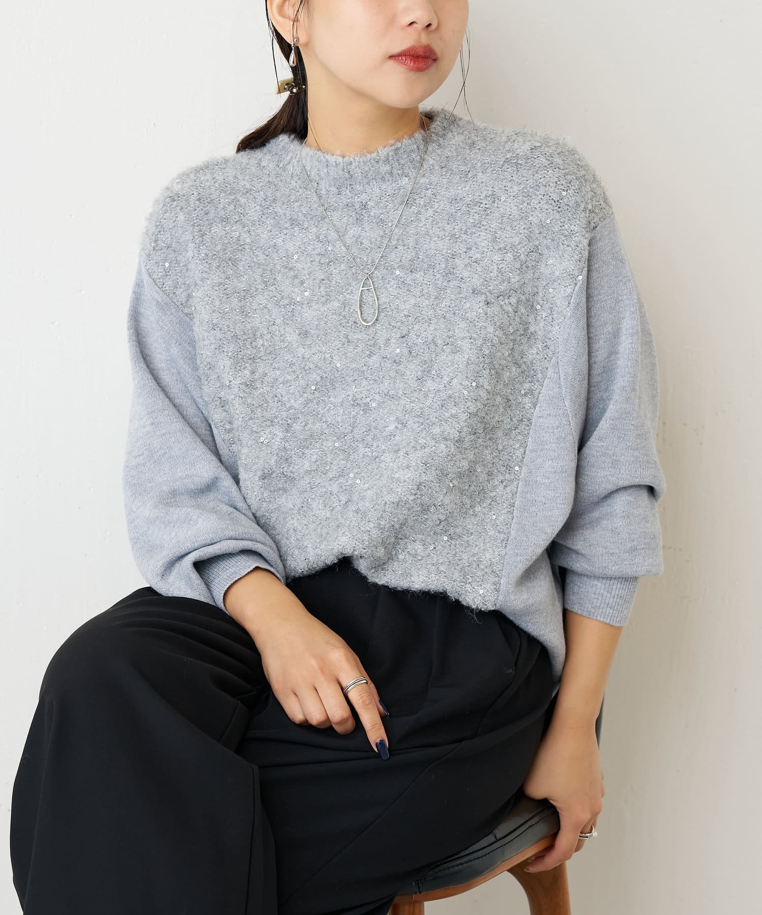 ・キラッと光る身頃のスパンコールがオトナ可愛い一枚です。