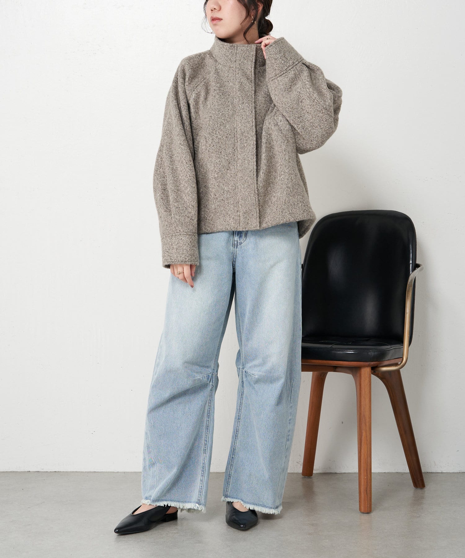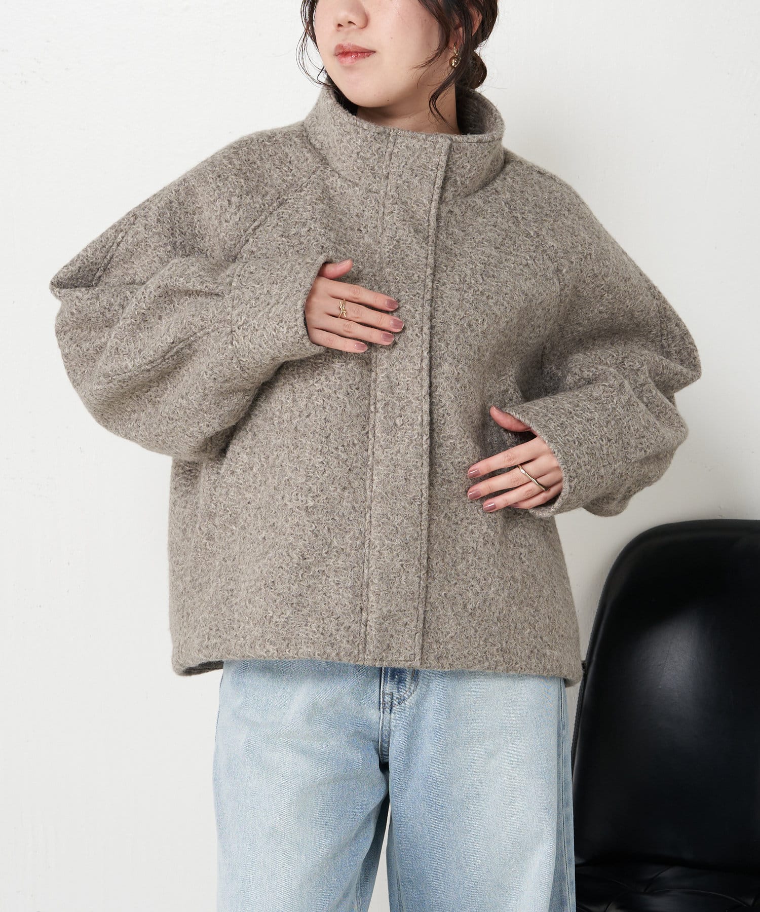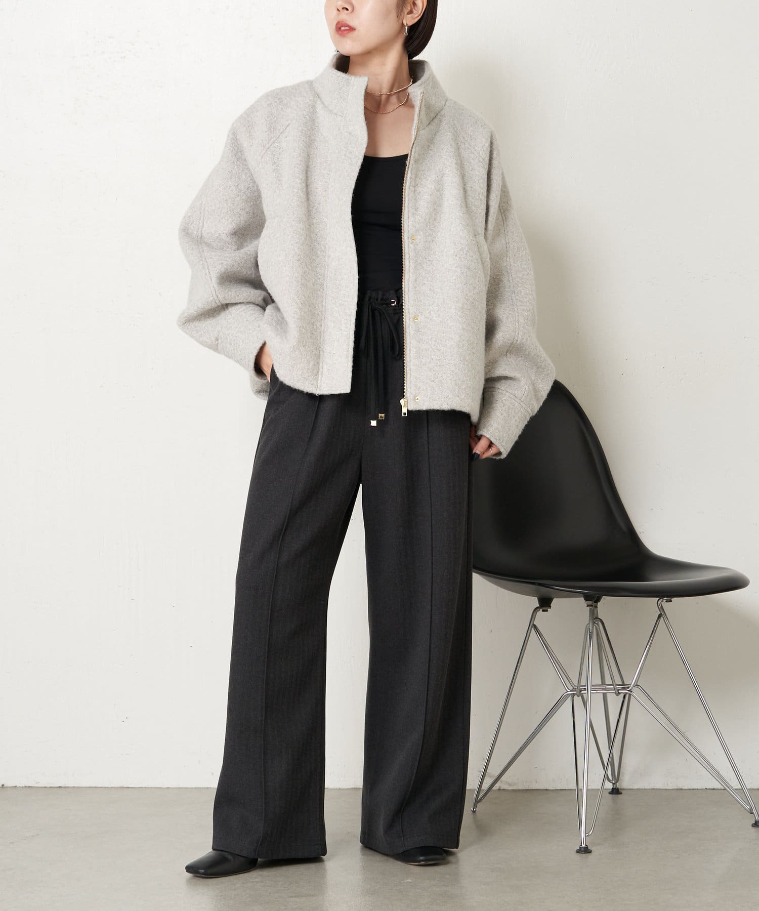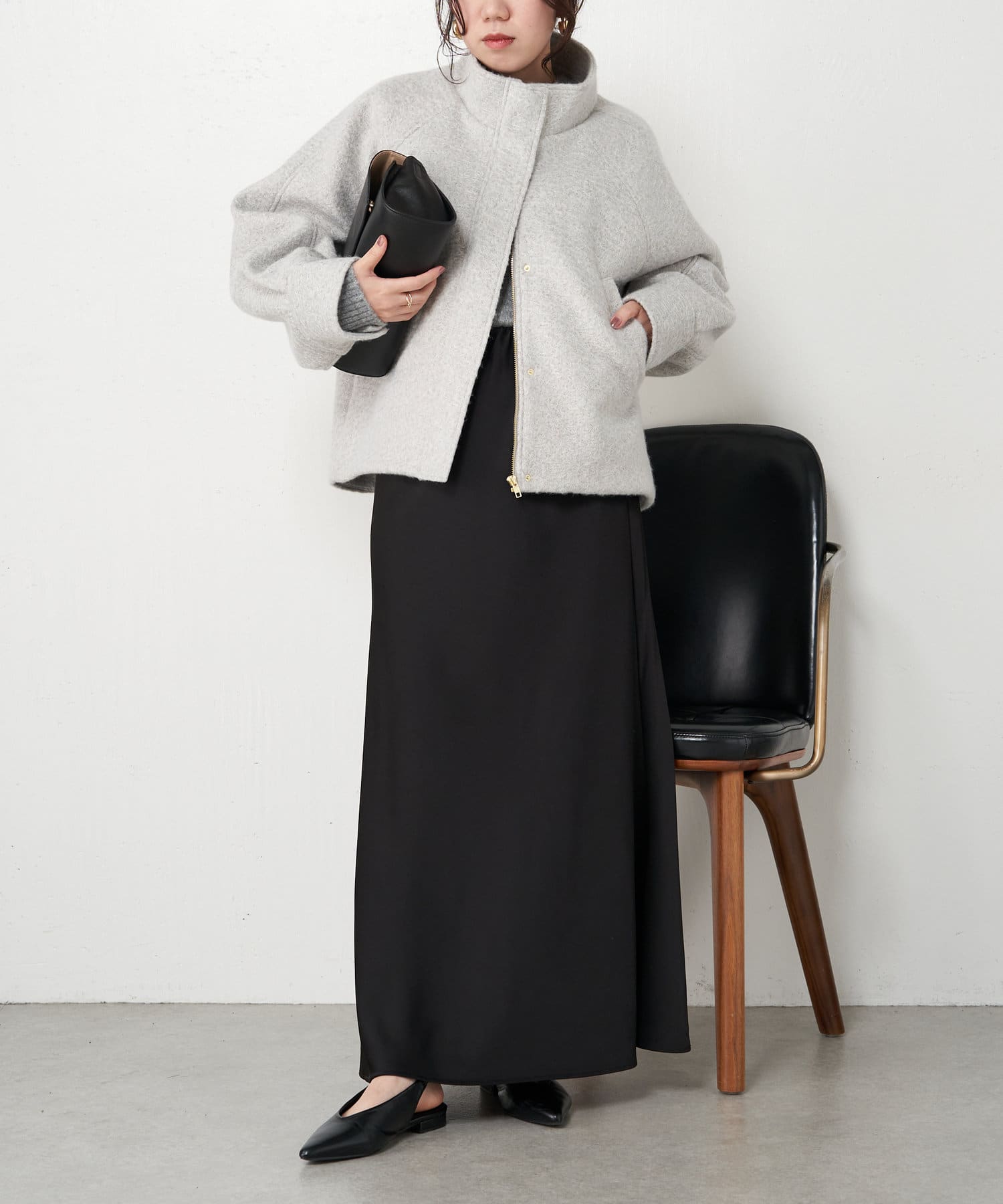 ・高すぎないスタンドネックデザインで首元をスッキリ見せつつマフラーいらずの温かさ◎