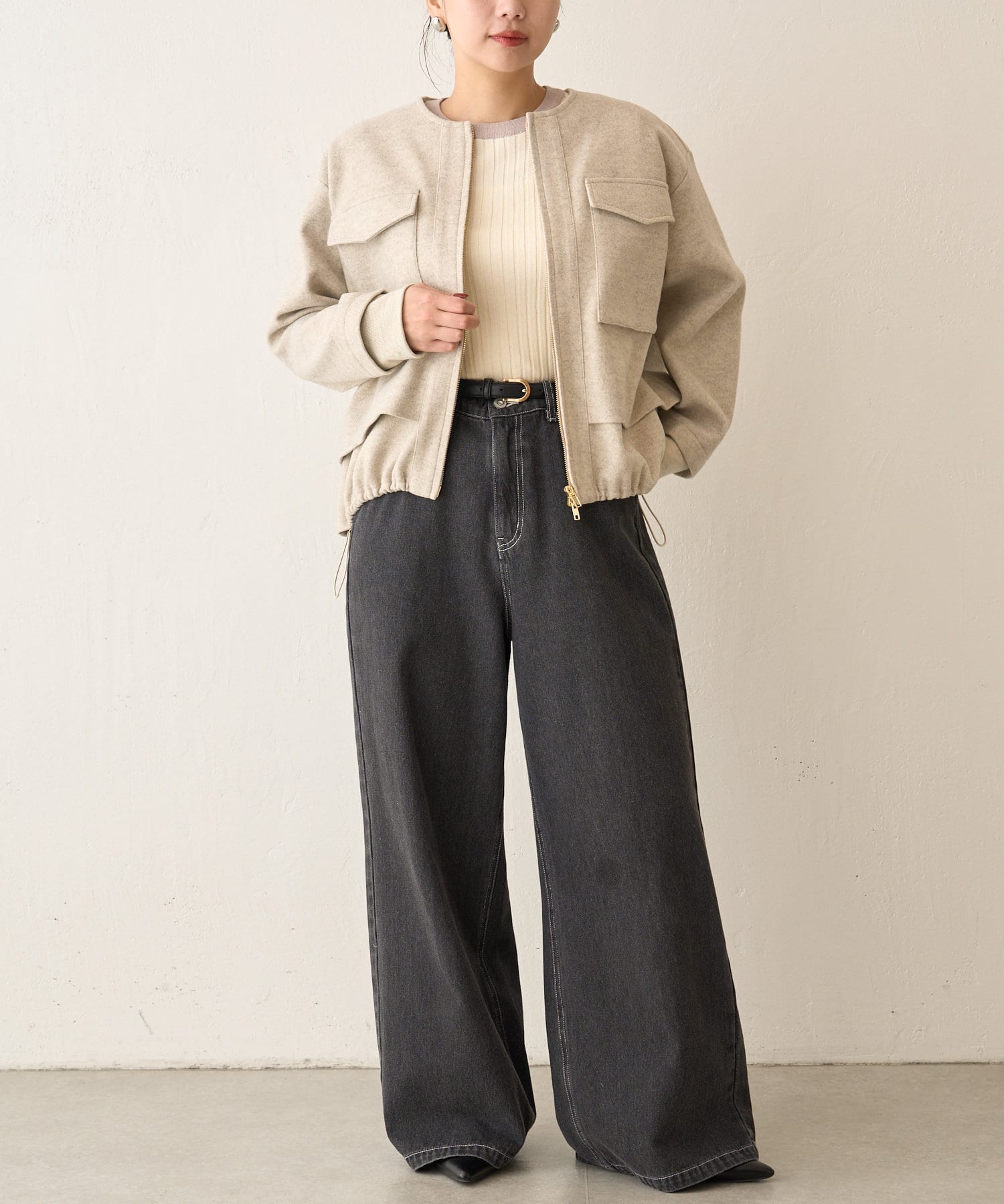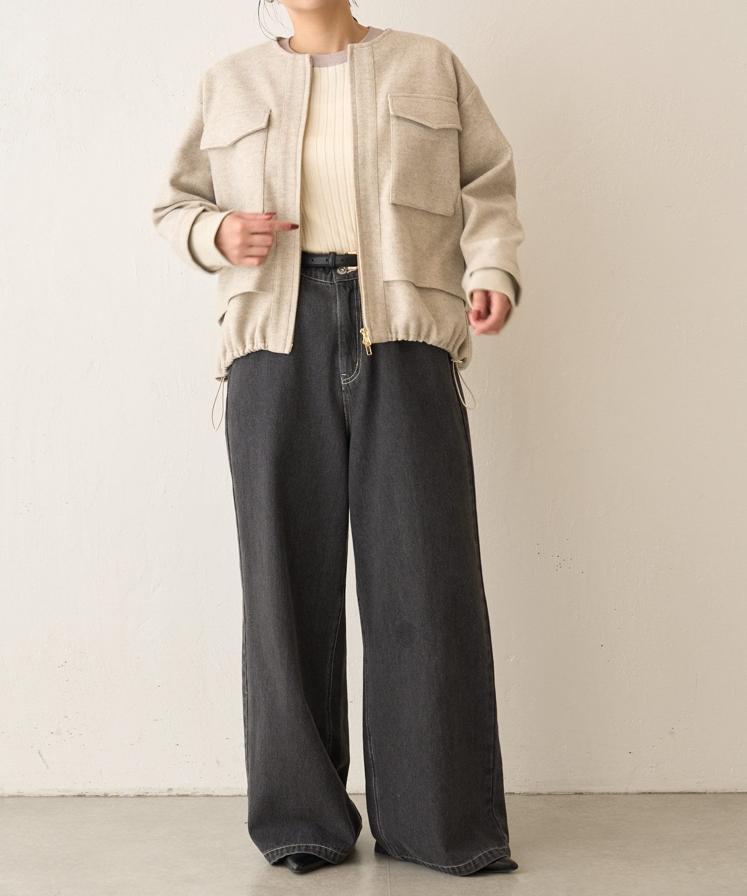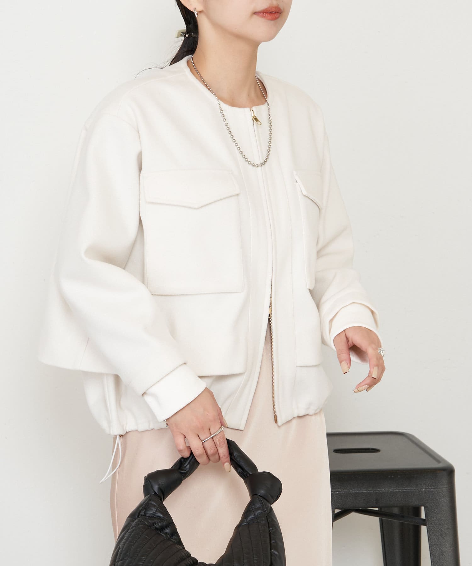・裾部分にドロストデザインがあり、絞るとコンパクトなシルエットにもなります。