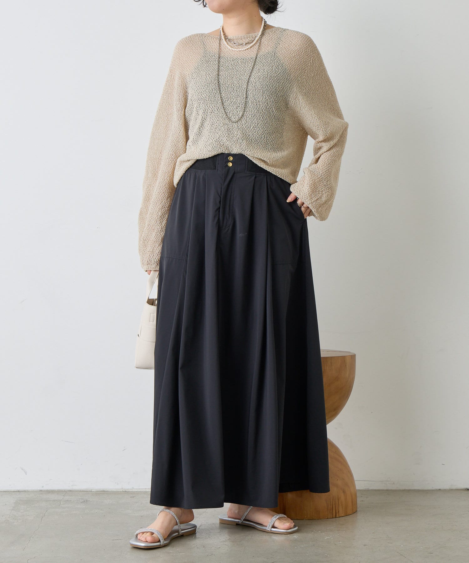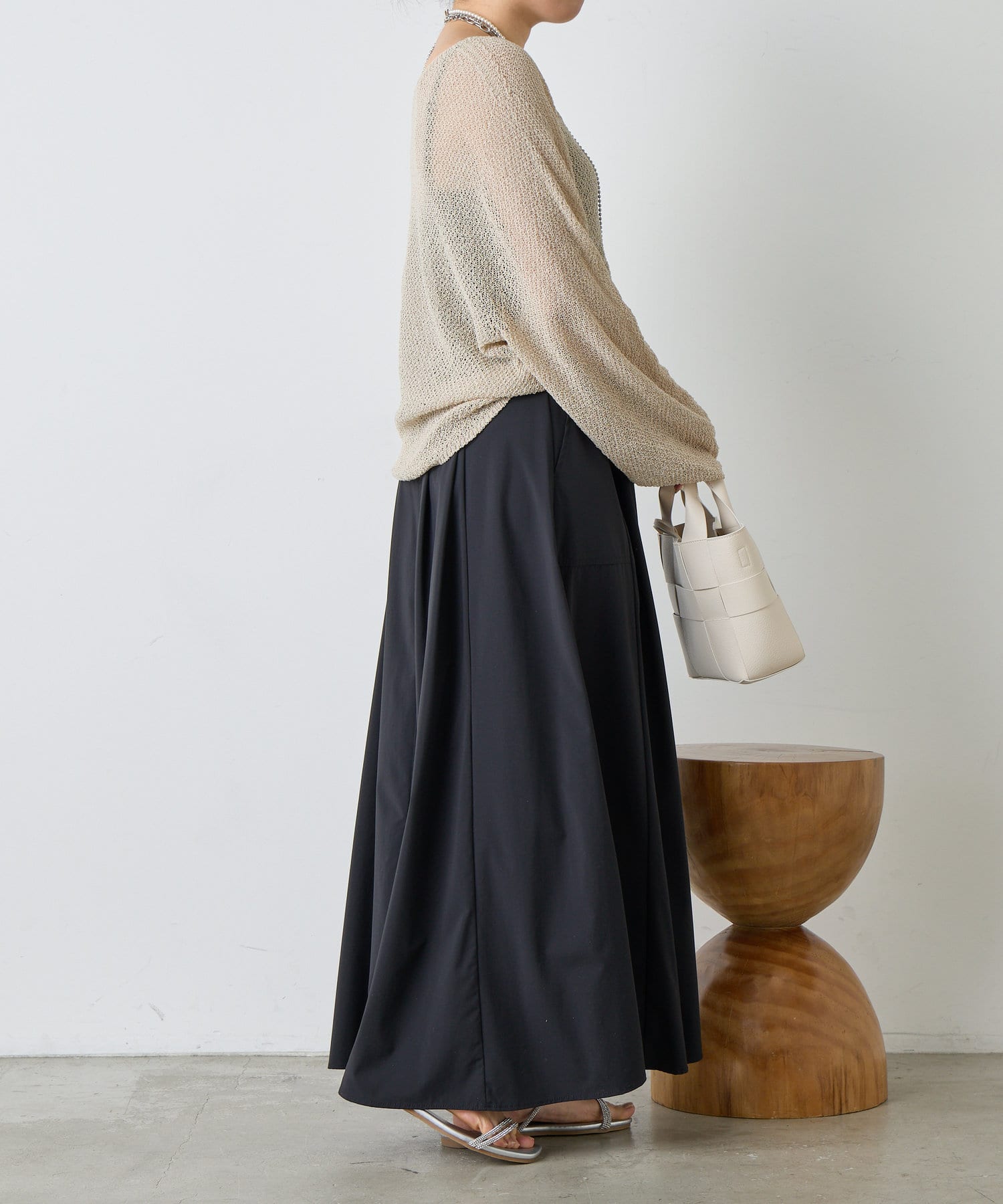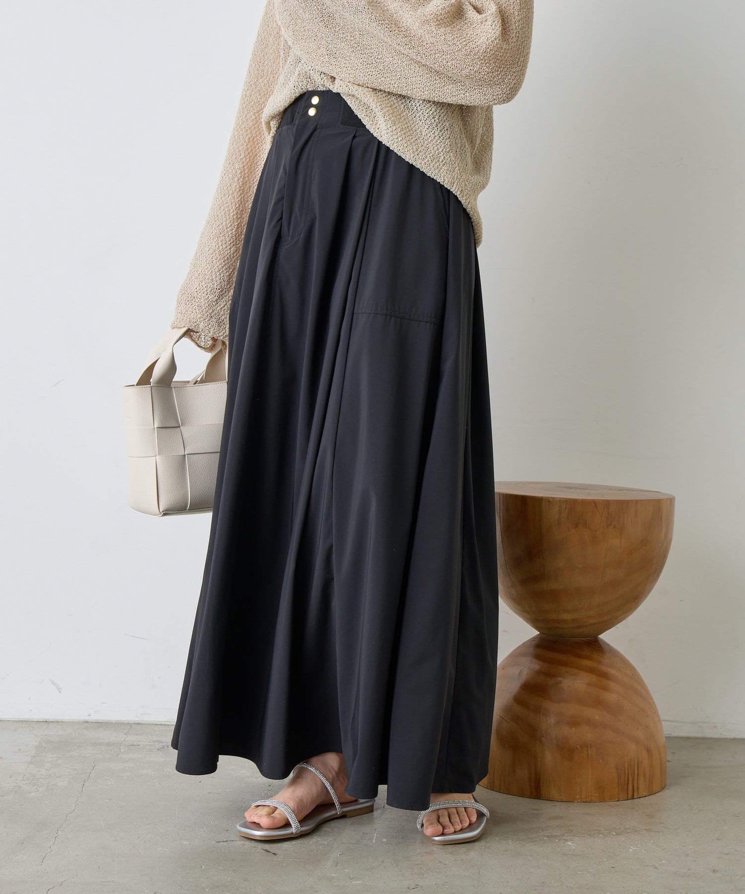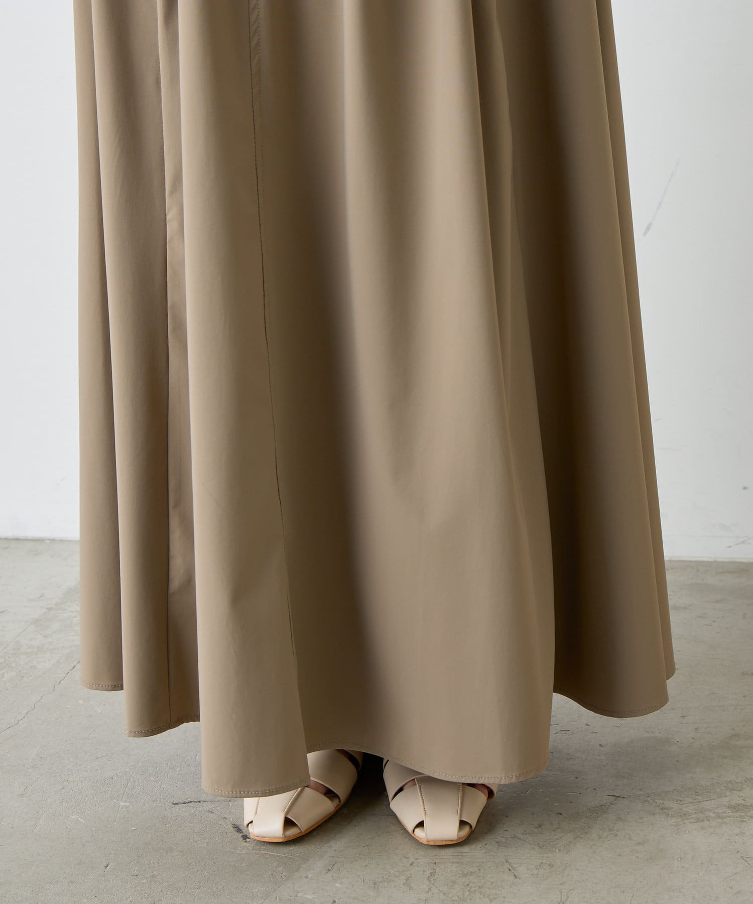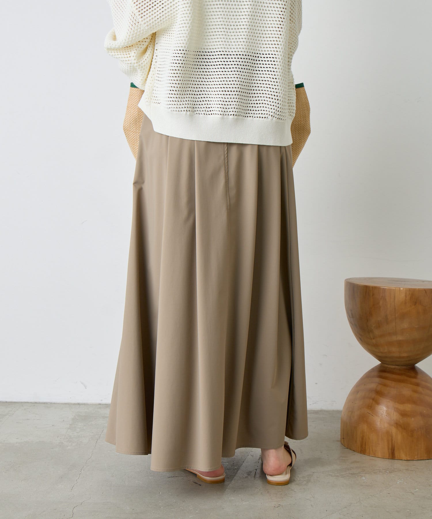 ・程よい艶感と上品な落ち感があるフレアスカート。