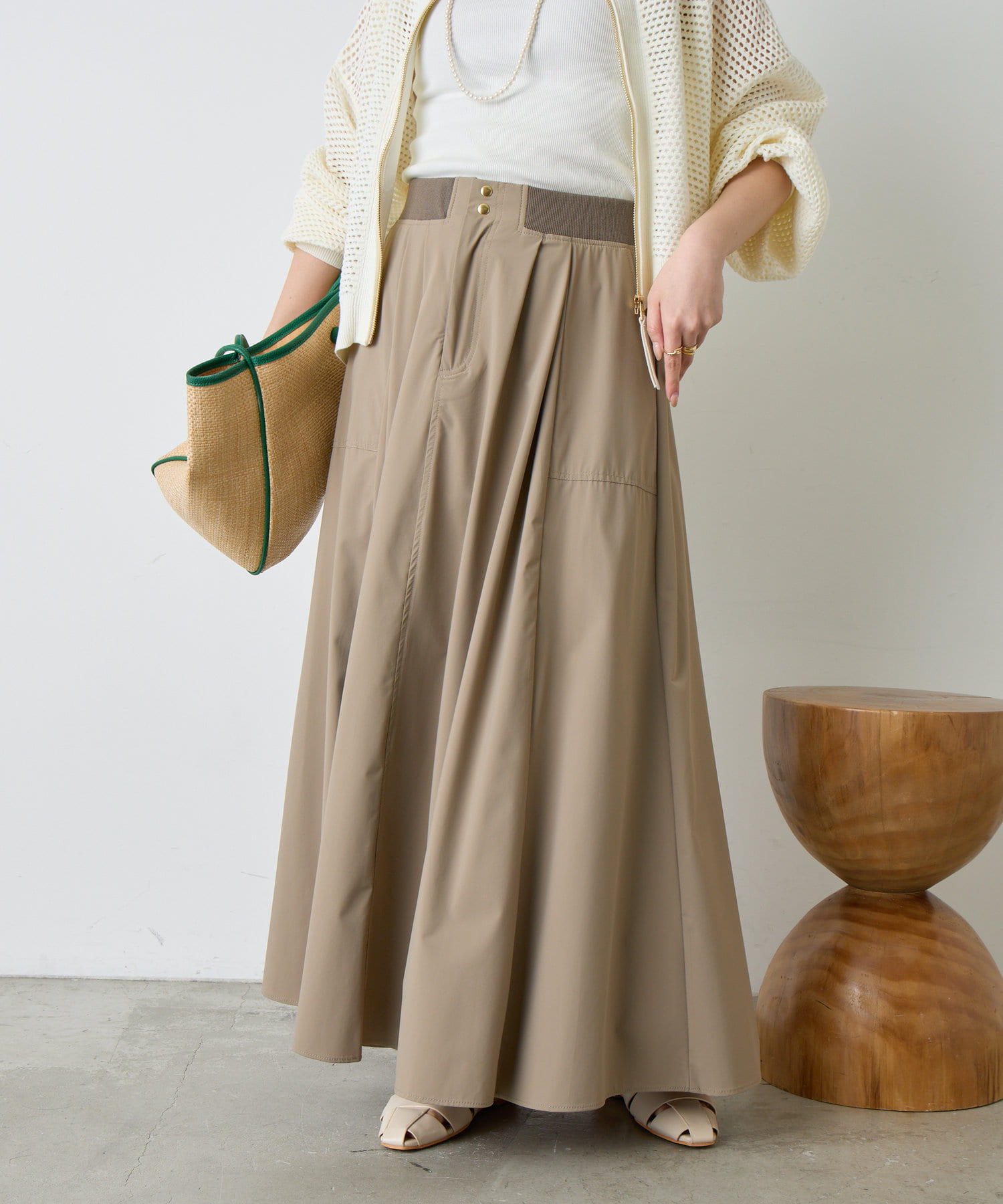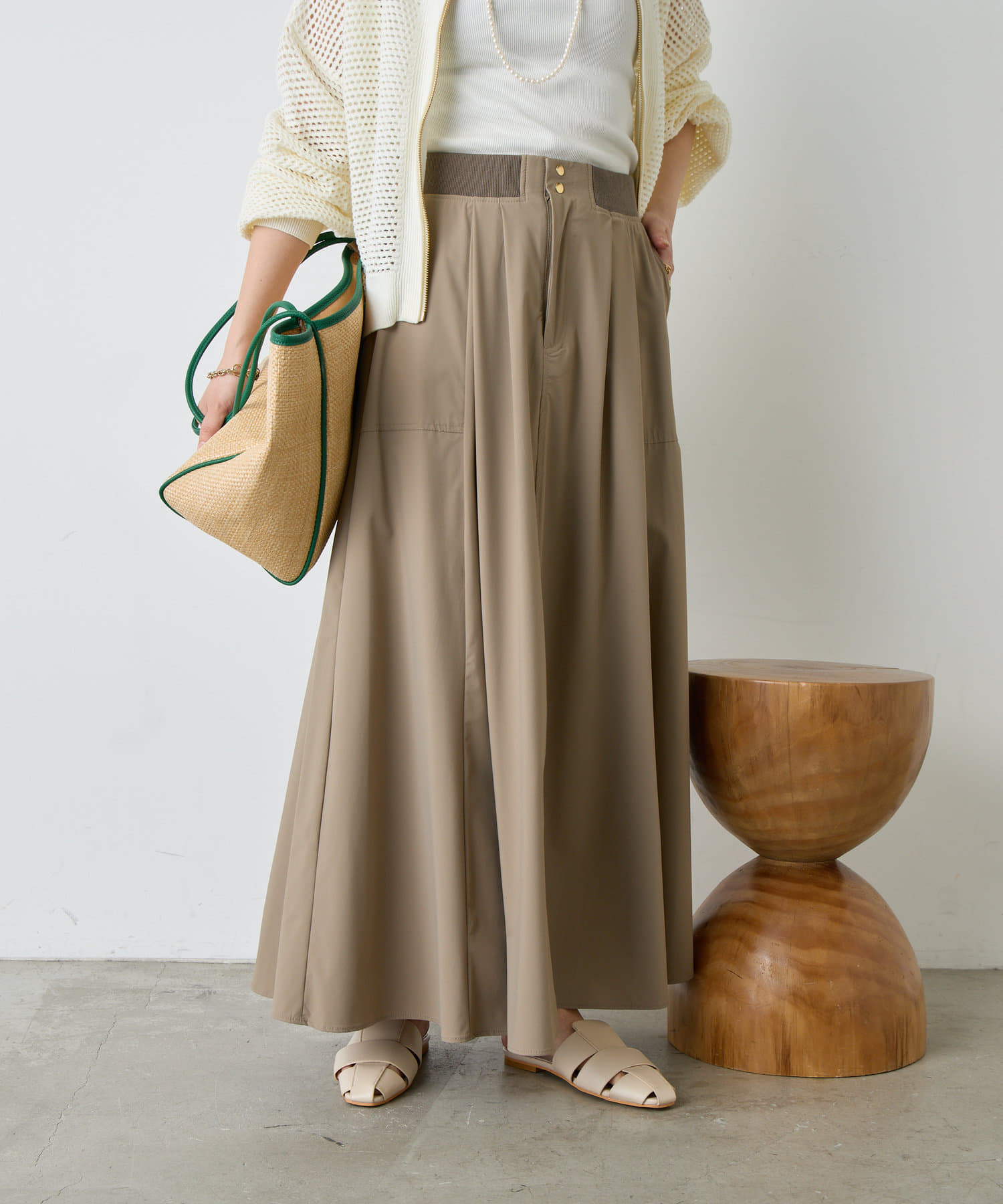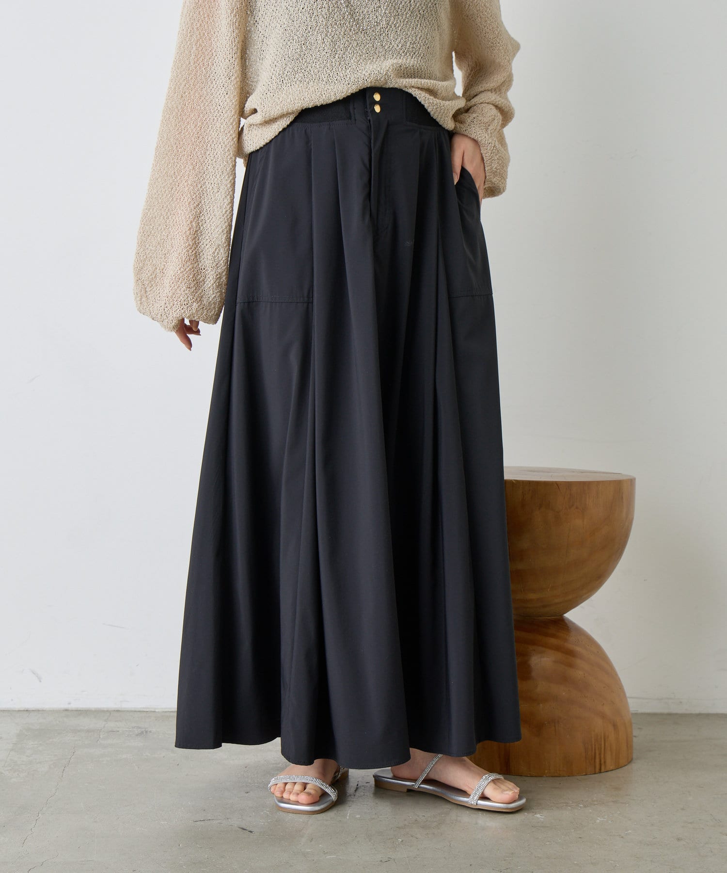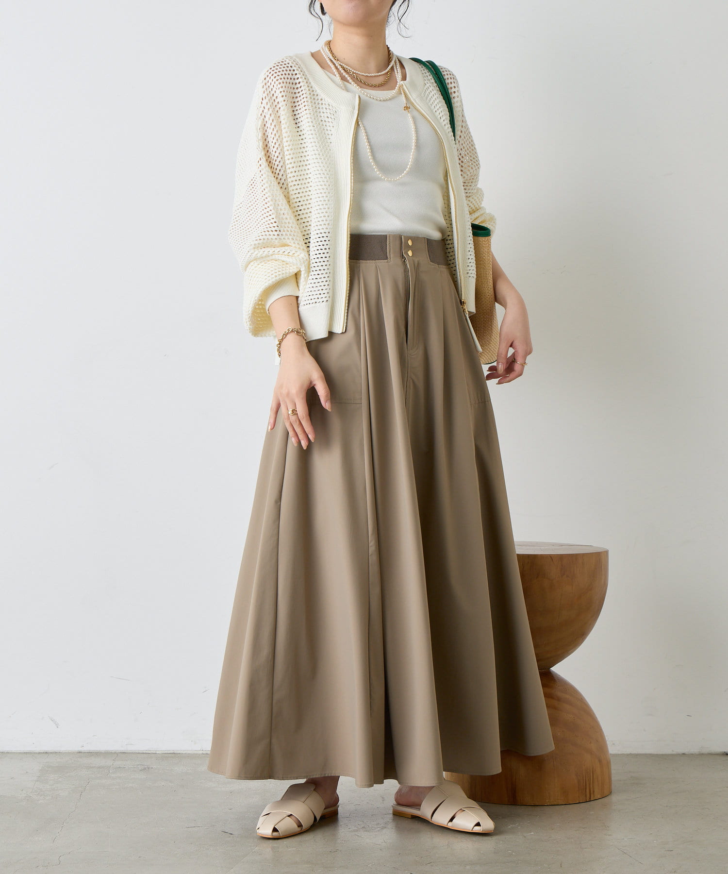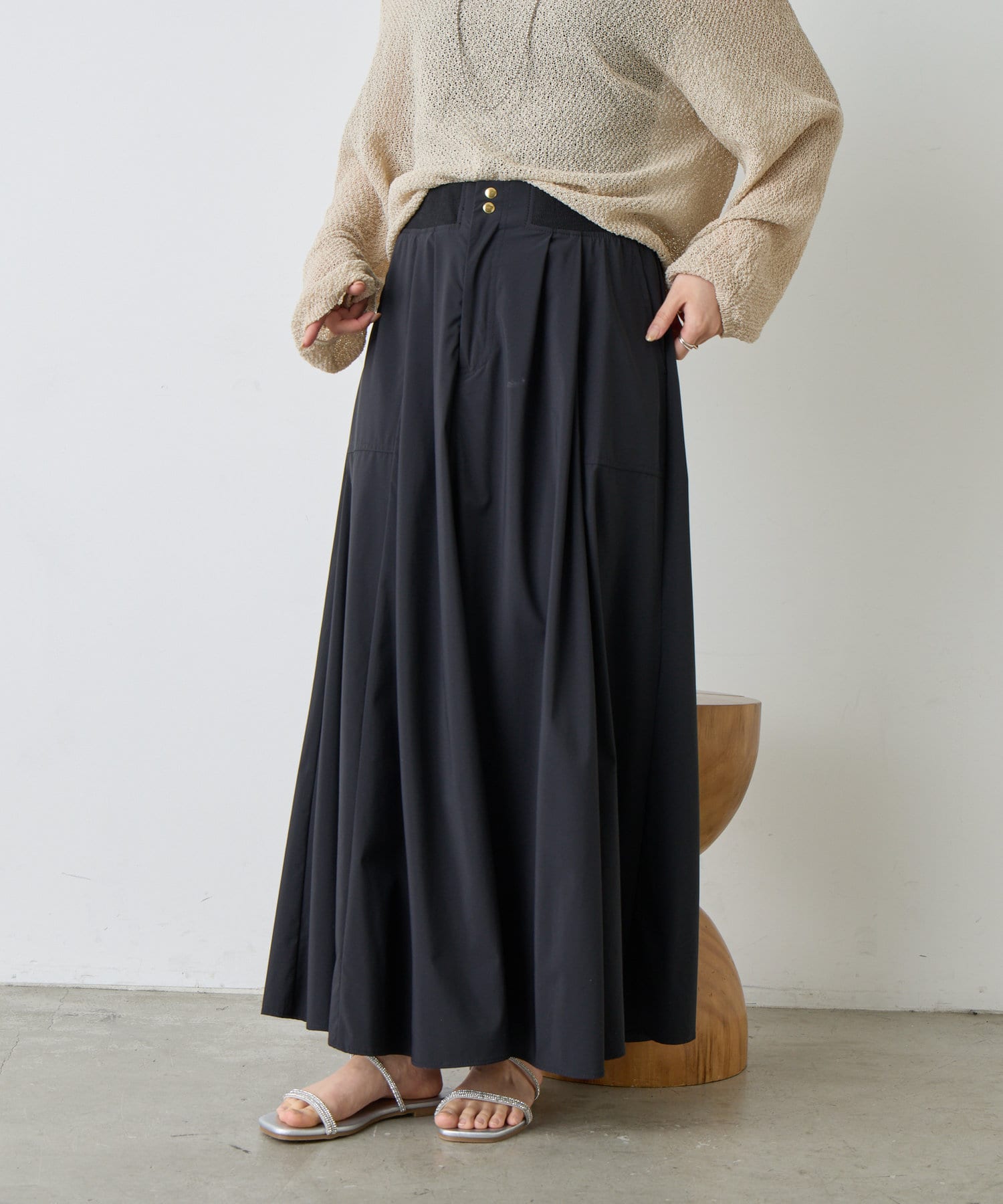 ・程よい艶感と上品な落ち感があるフレアスカート。