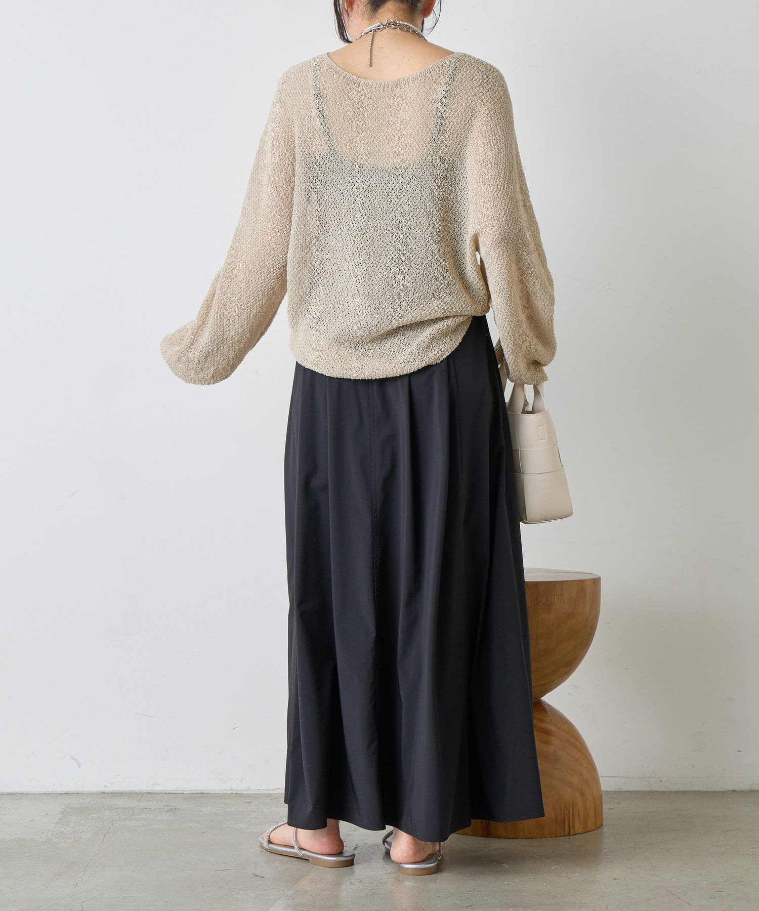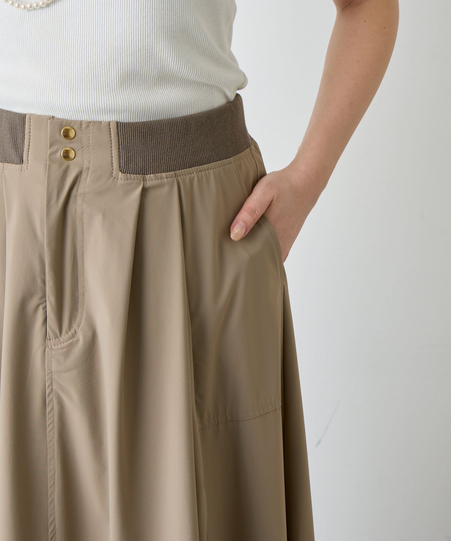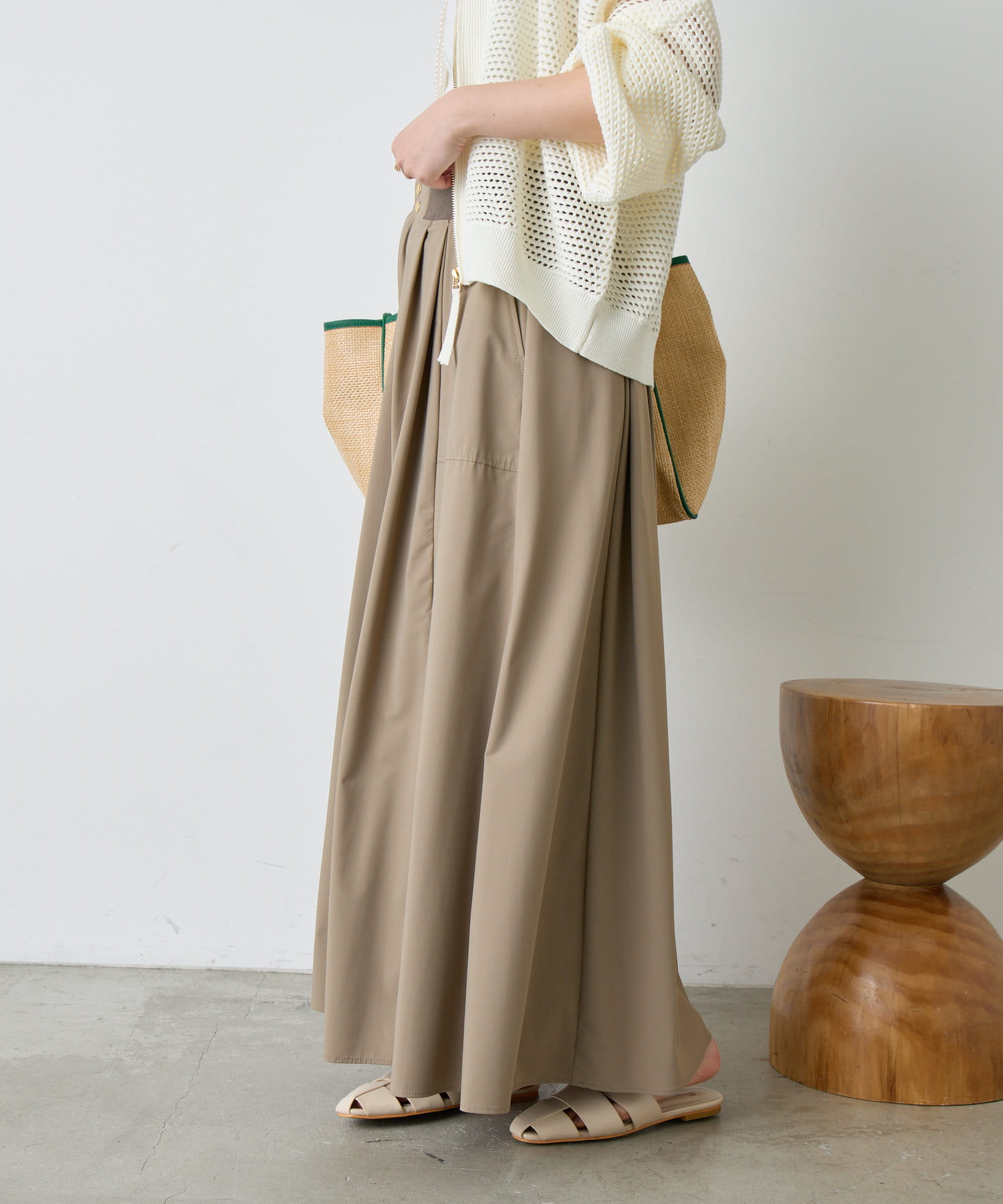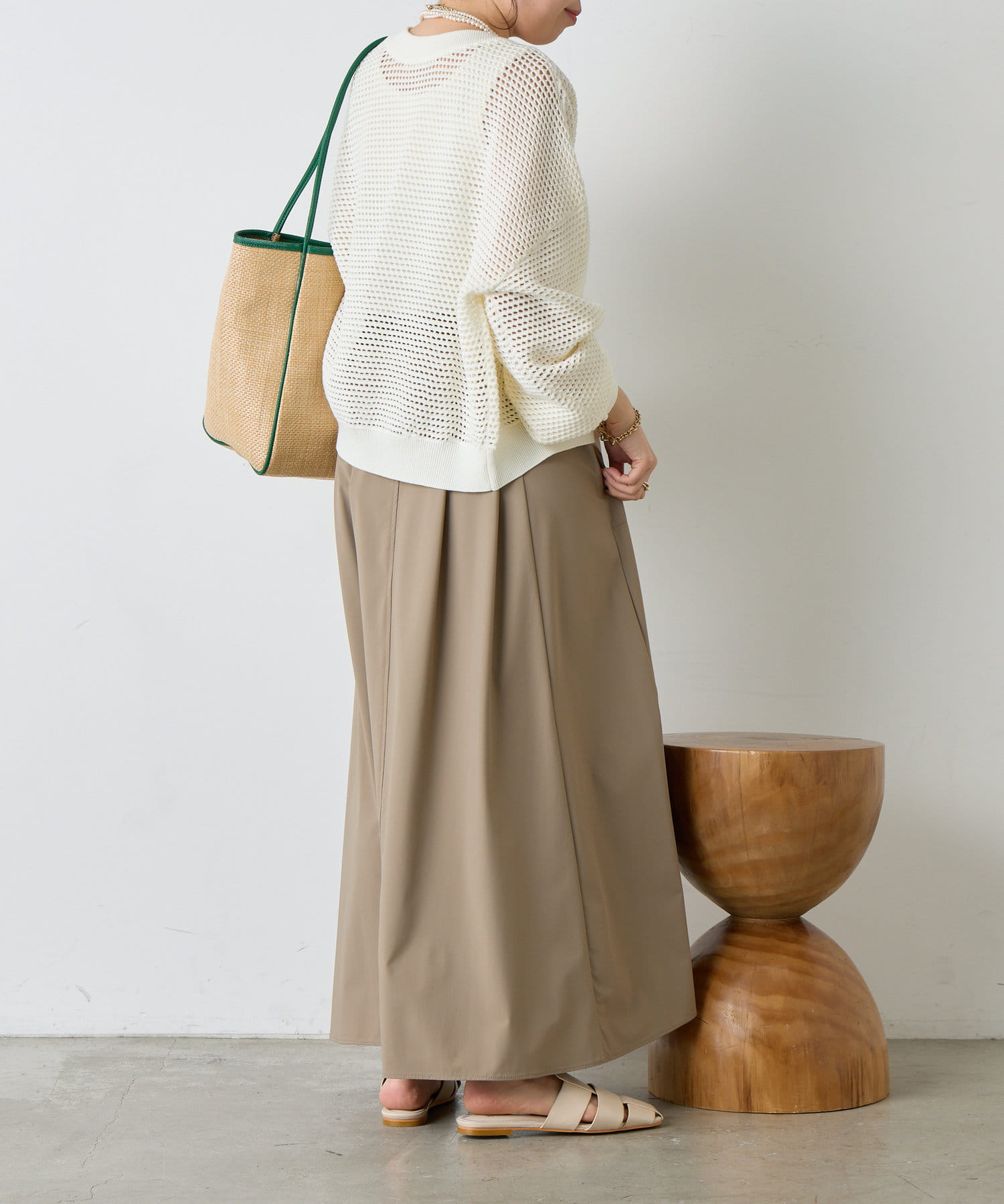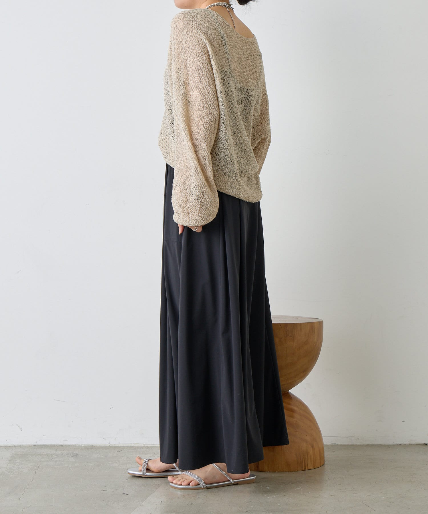 ・程よい艶感と上品な落ち感があるフレアスカート。