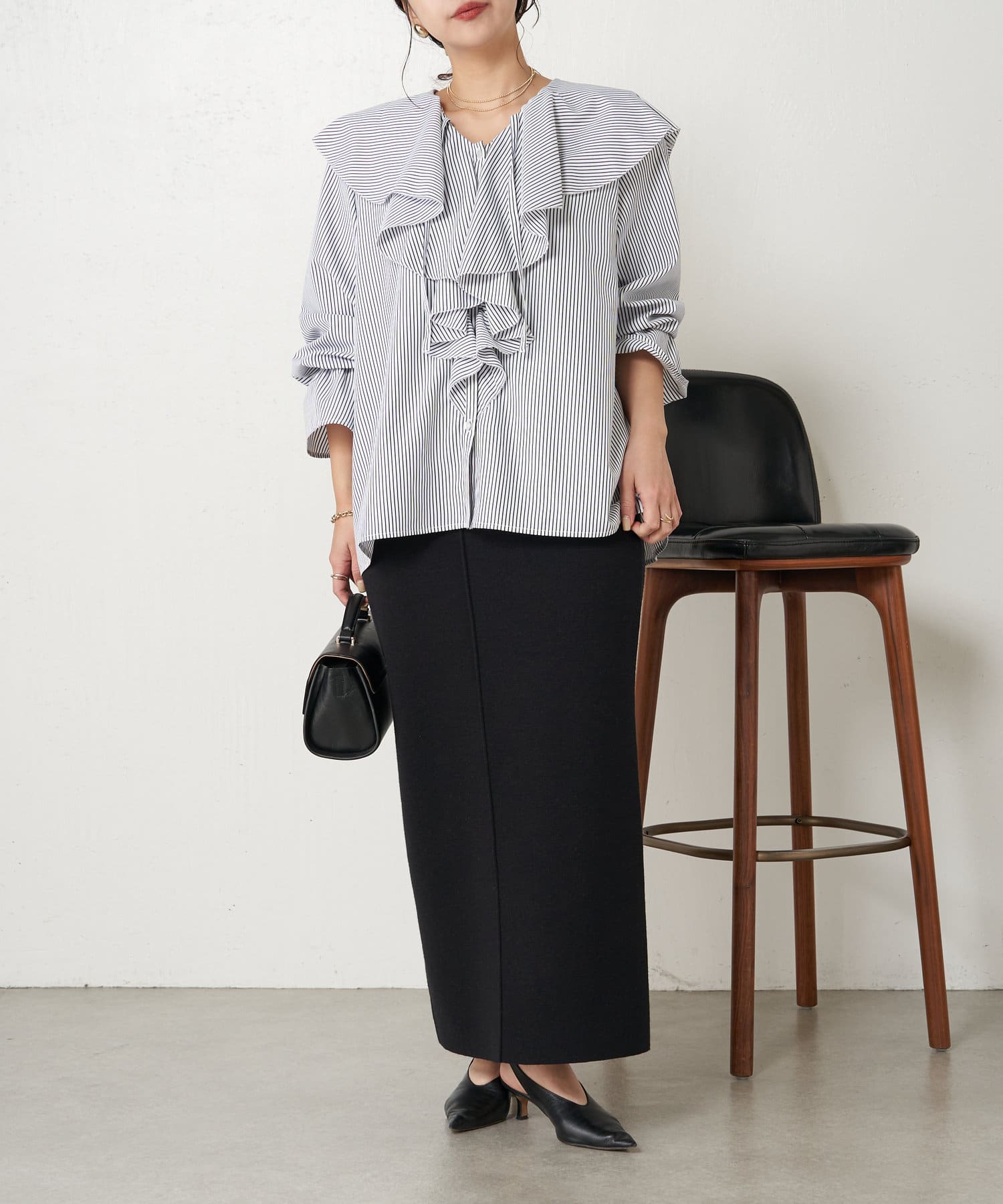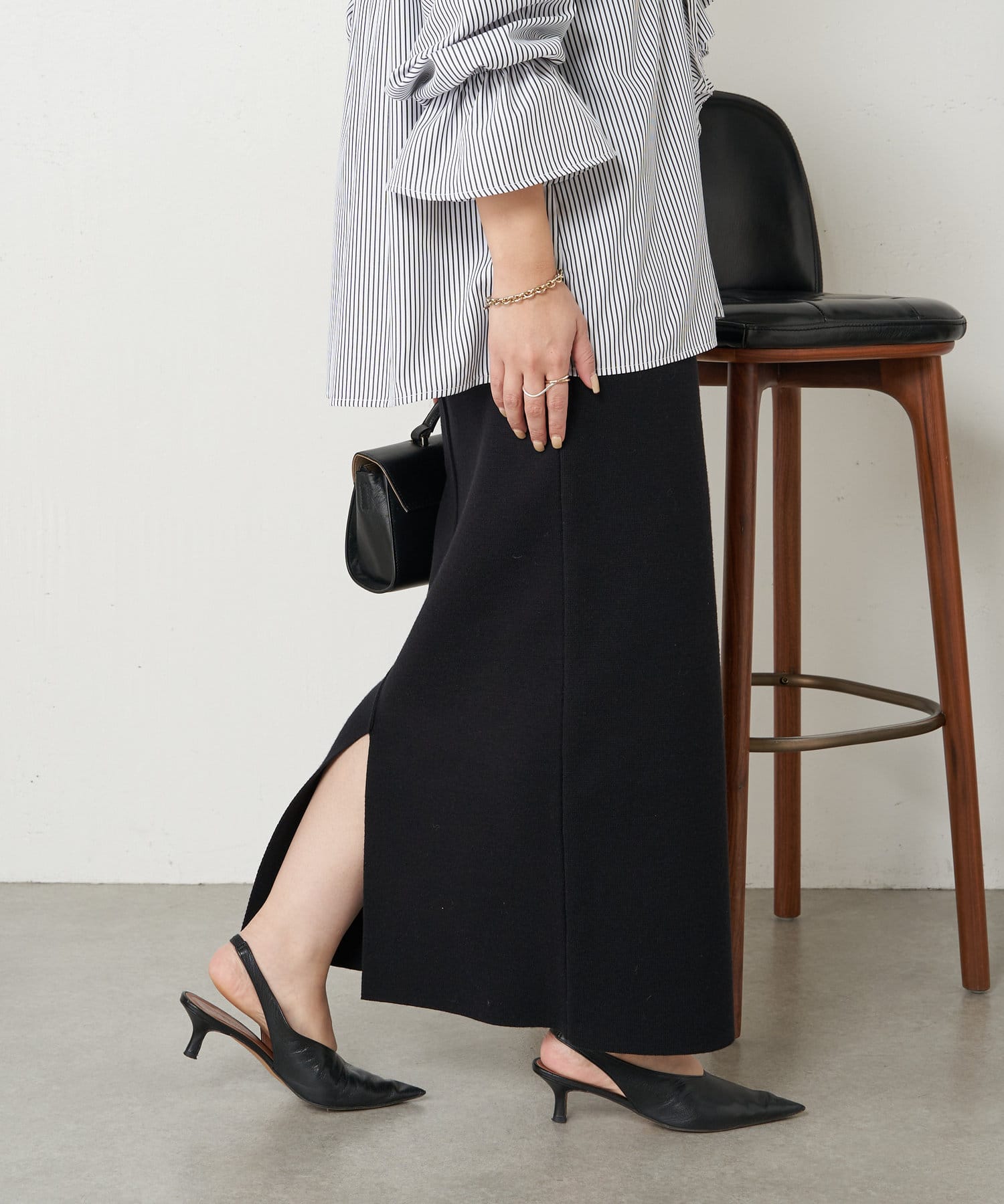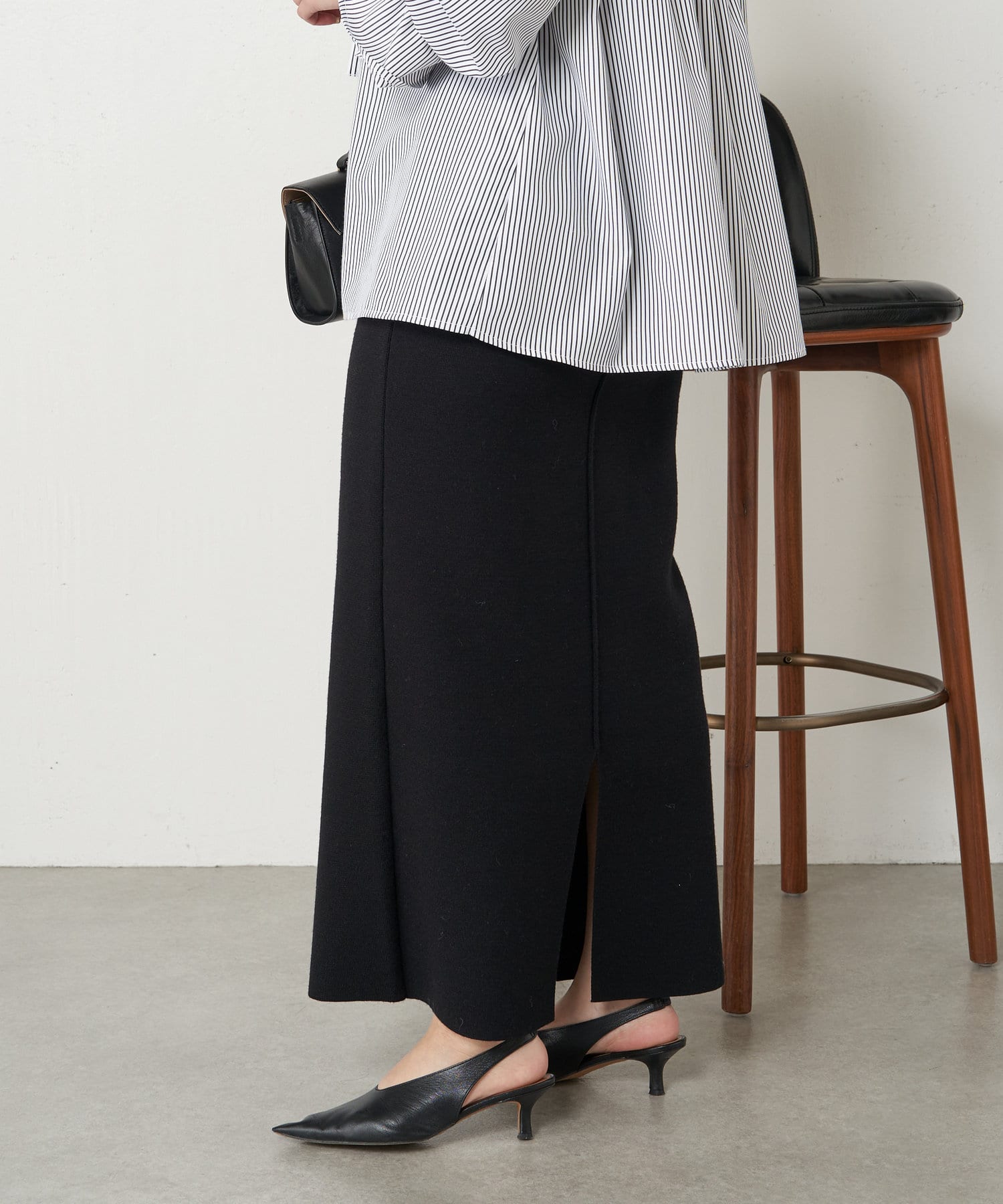 ・センターラインが足元をスッキリバランスよく見せてくれるスカート。