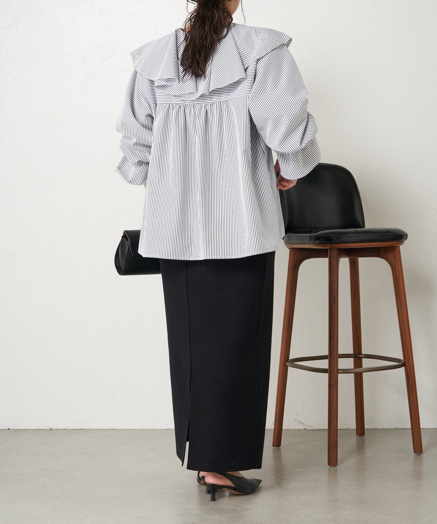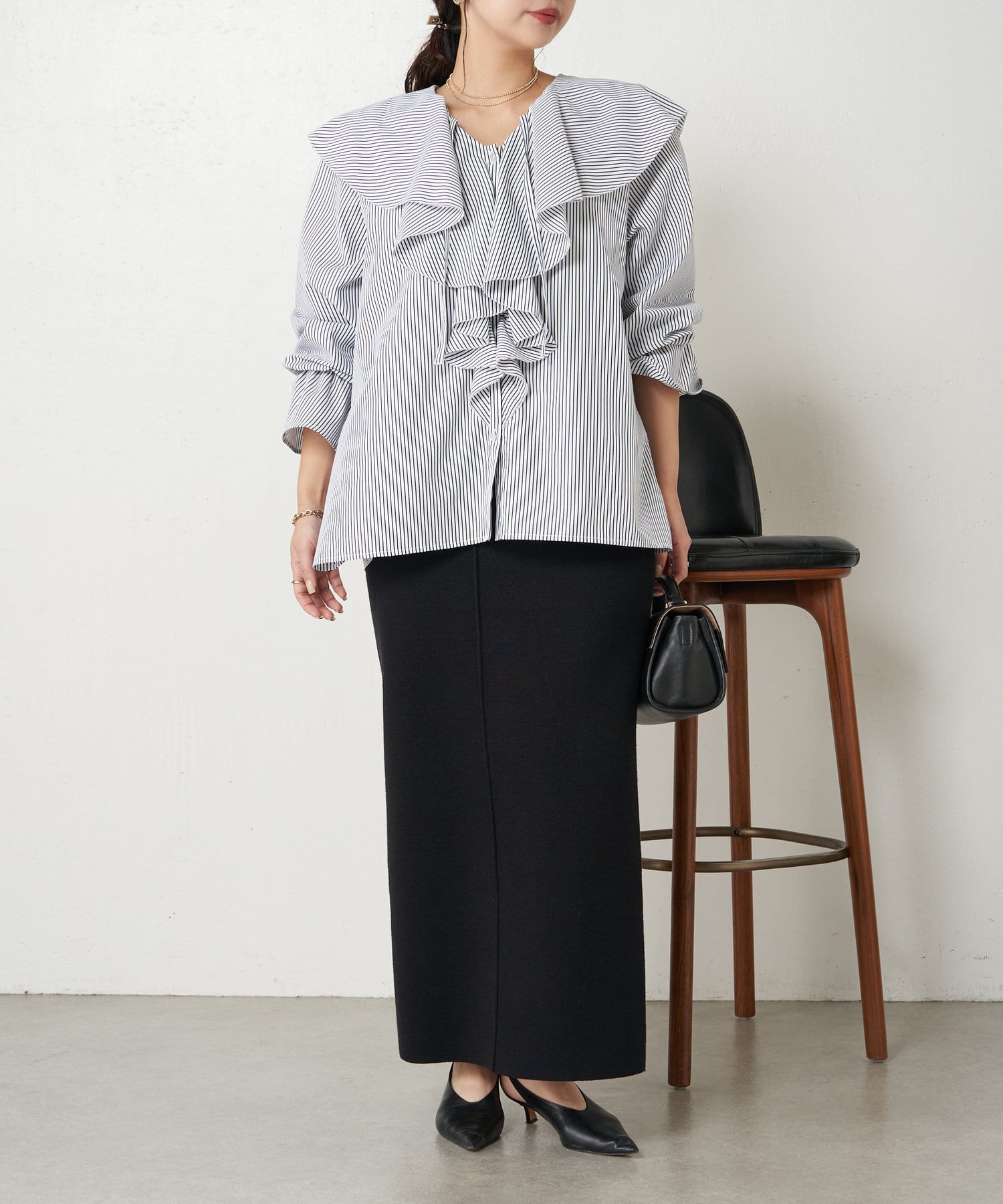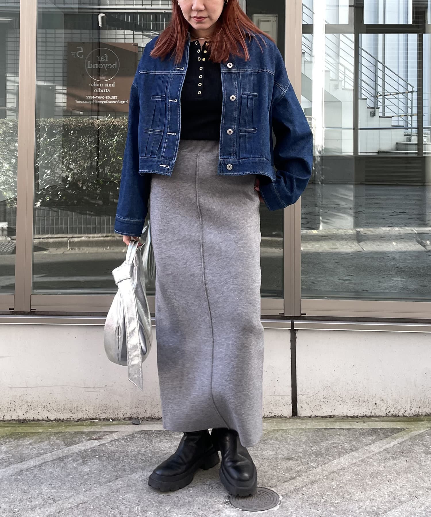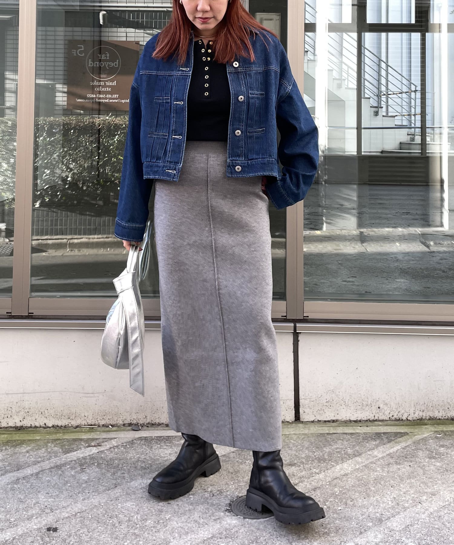 ・センターラインが足元をスッキリバランスよく見せてくれるスカート。