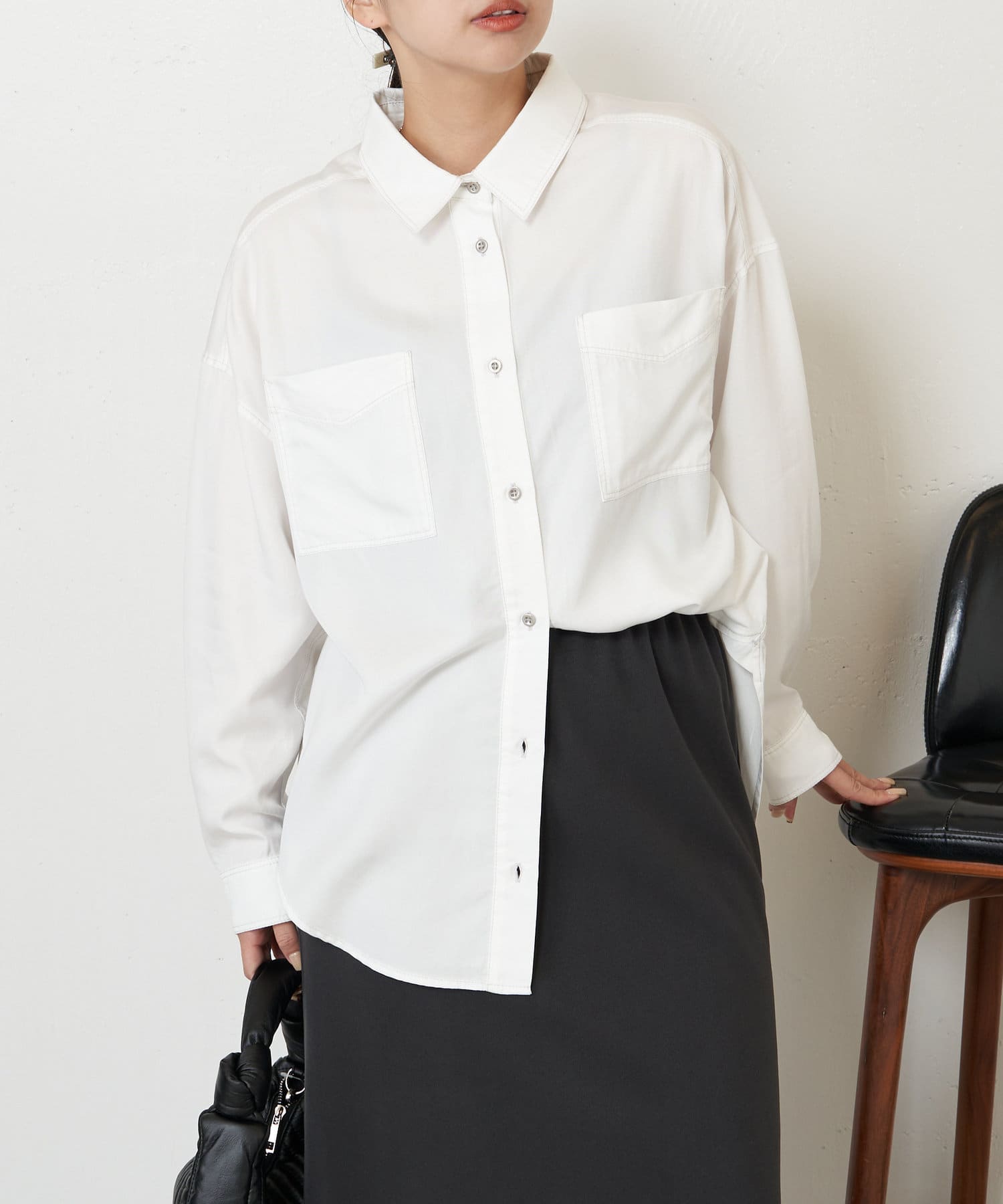 ・肩を抜いてニュアンスのある着こなしにも、さらっと羽織りにも幅の広いスタイリングが楽しめます。