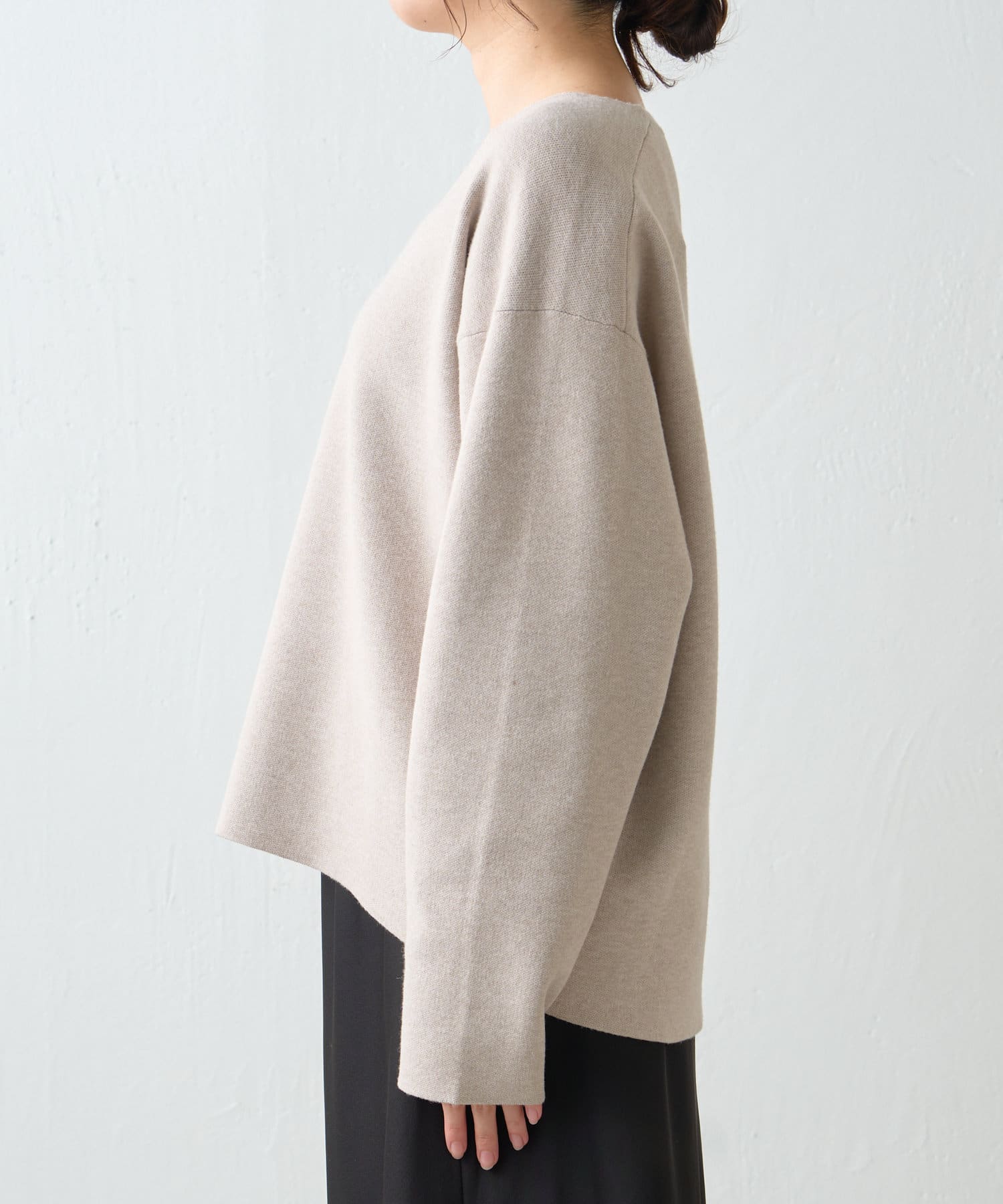 ・1枚でさらっと着ることができ、長すぎず短すぎない絶妙な丈感でバランスが取りやすく、ボトムを選ばず着回しの効く一枚。
