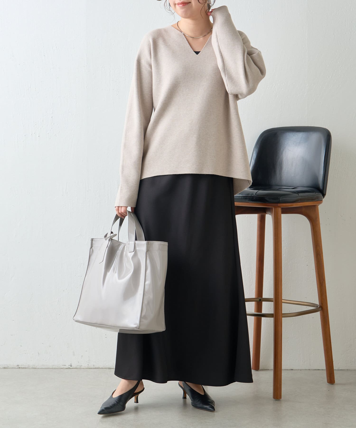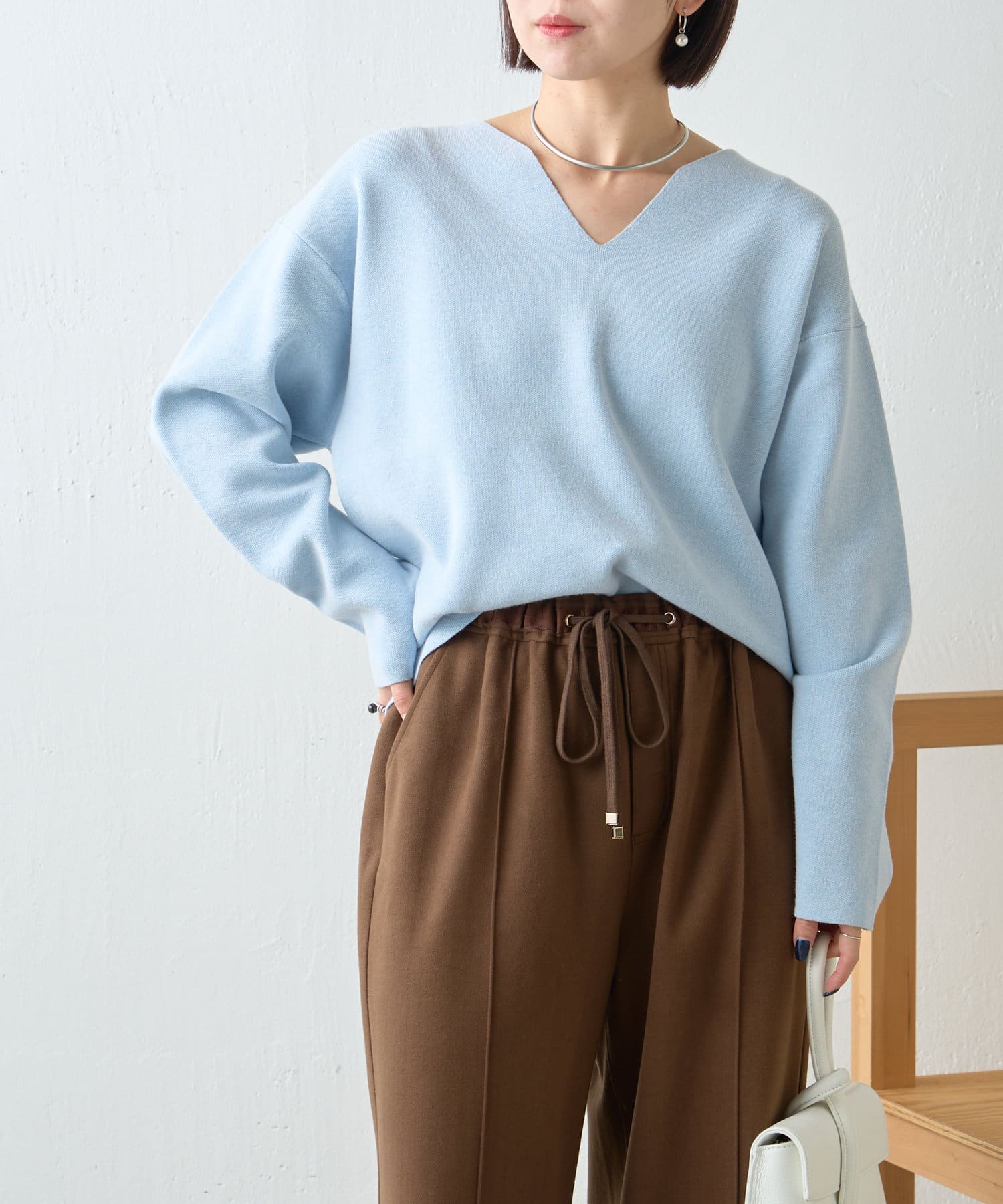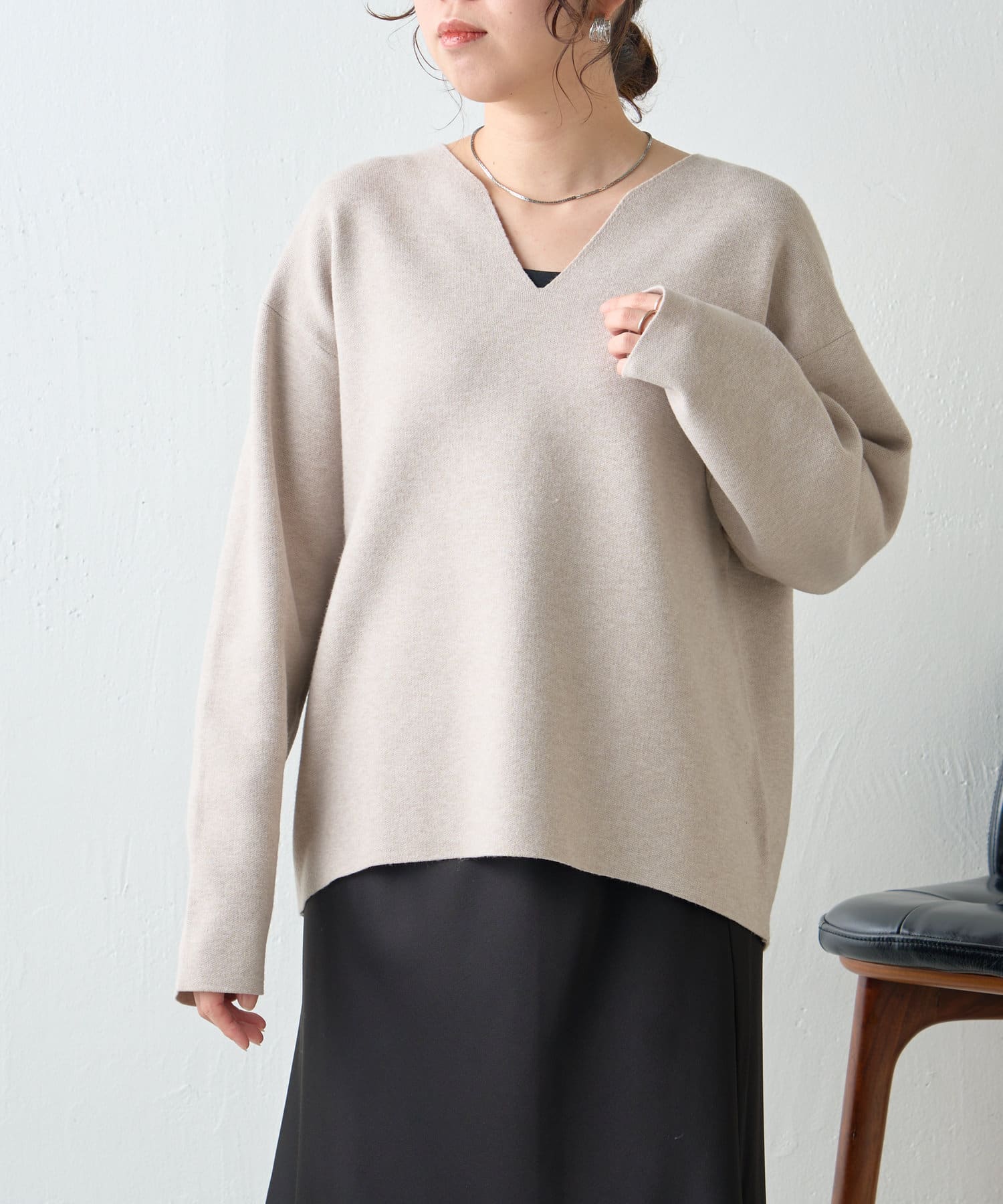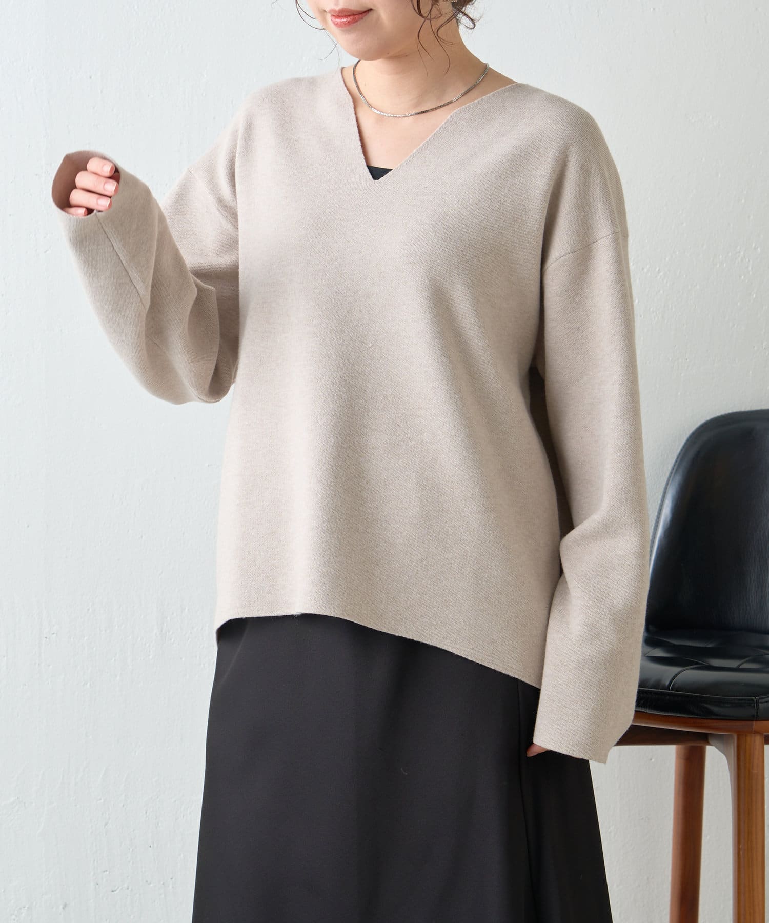 ・Vネックデザインで、首元すっきり見えも叶います。