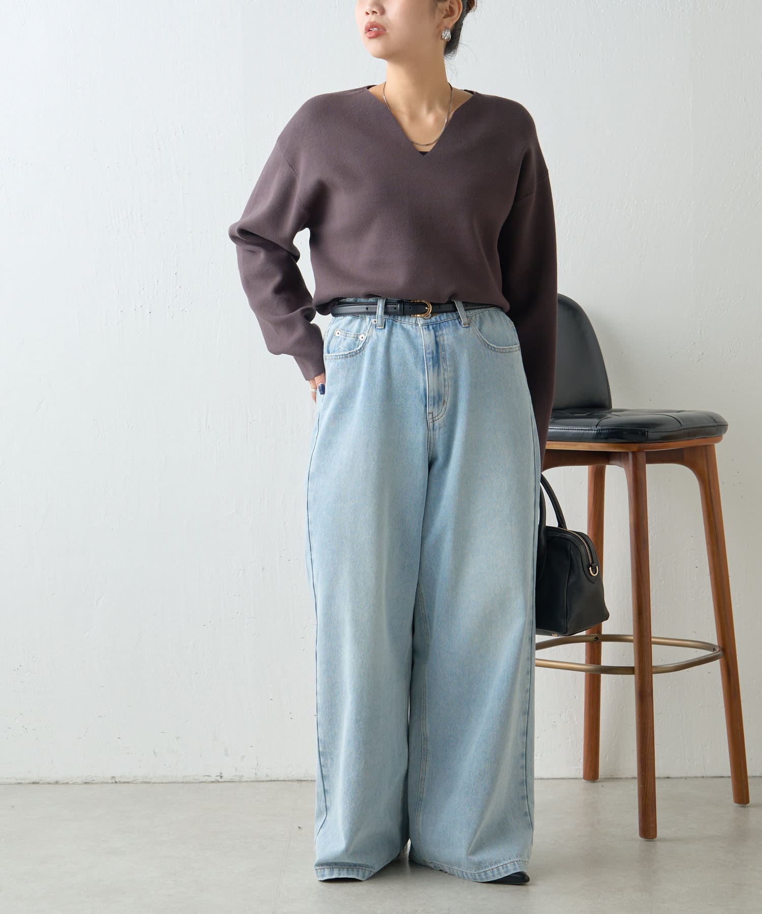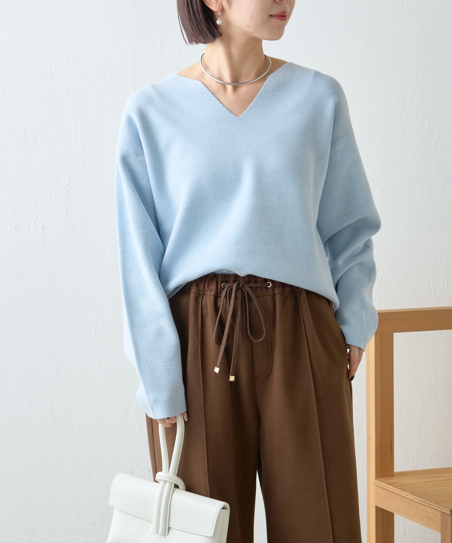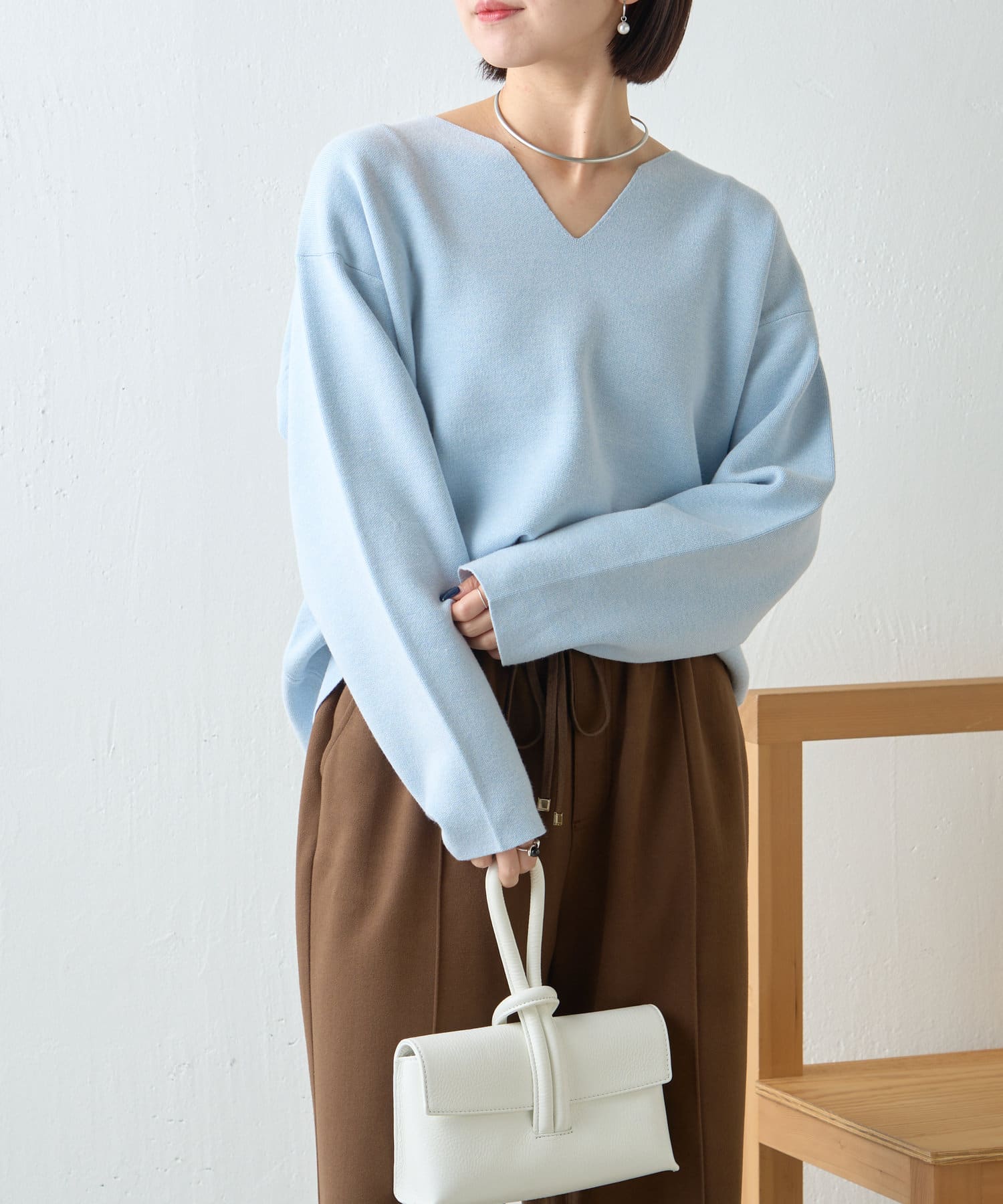 ・Vネックデザインで、首元すっきり見えも叶います。