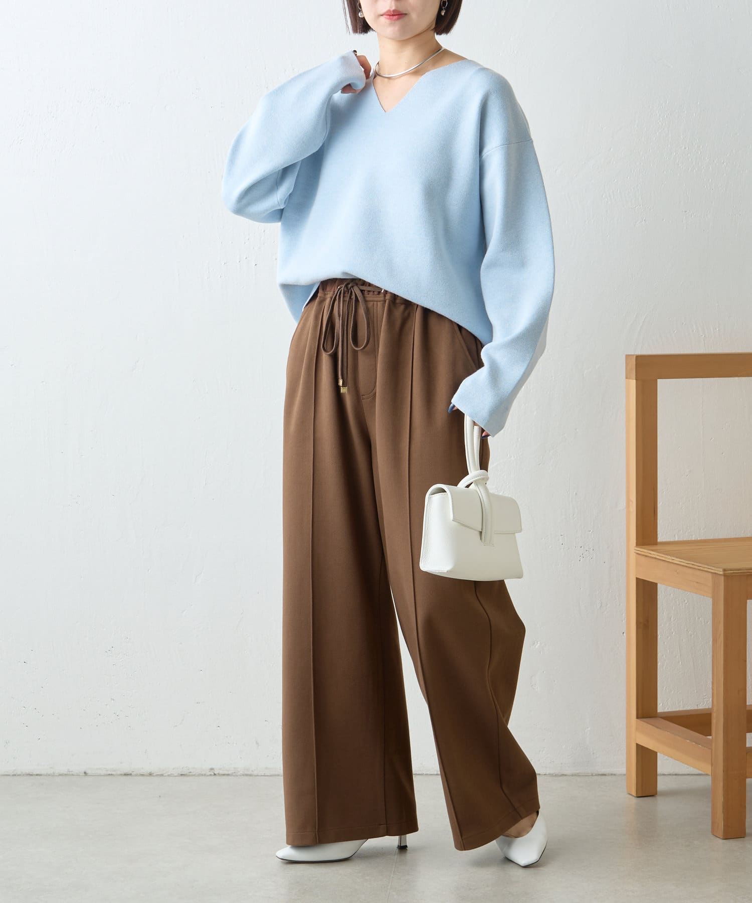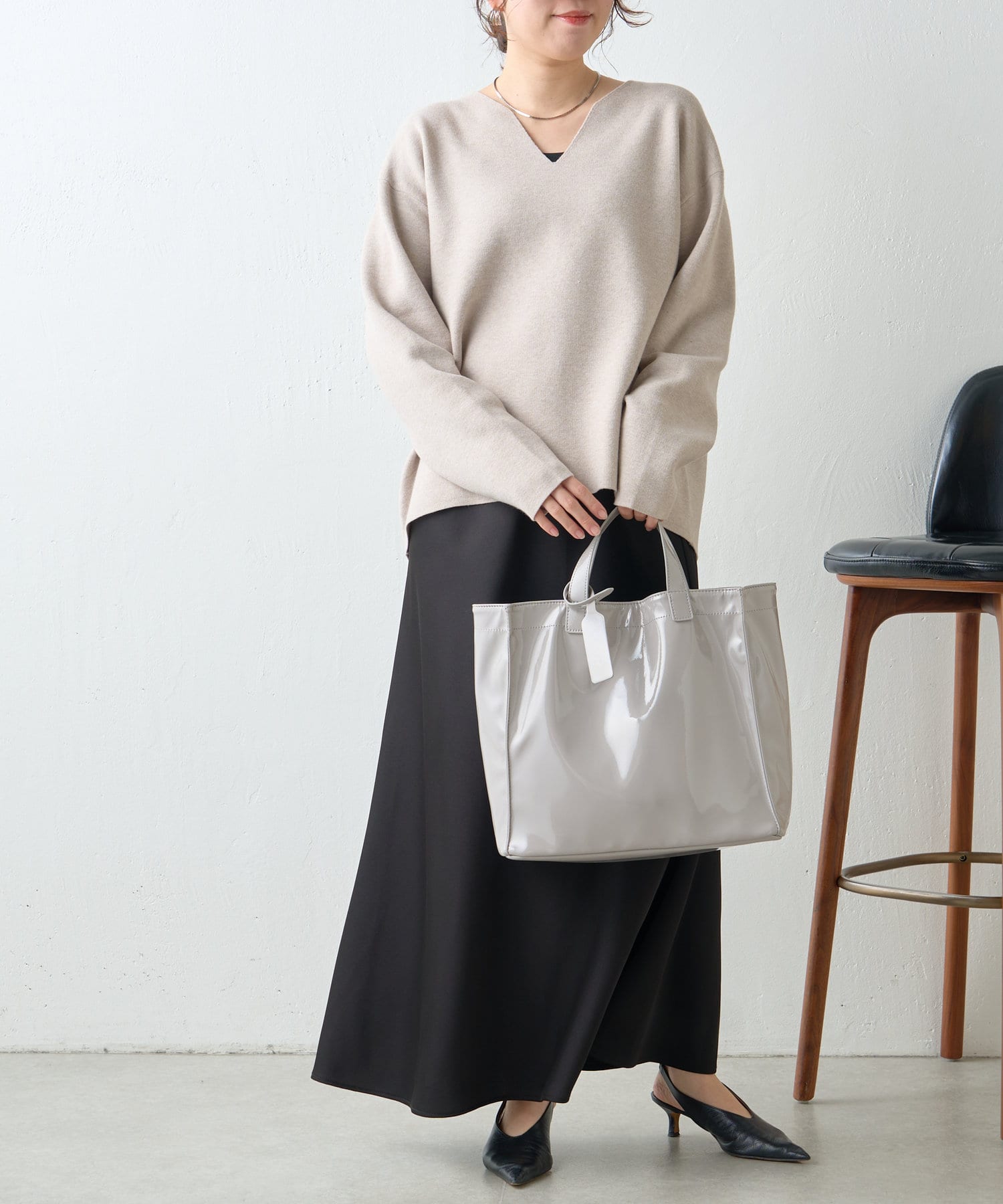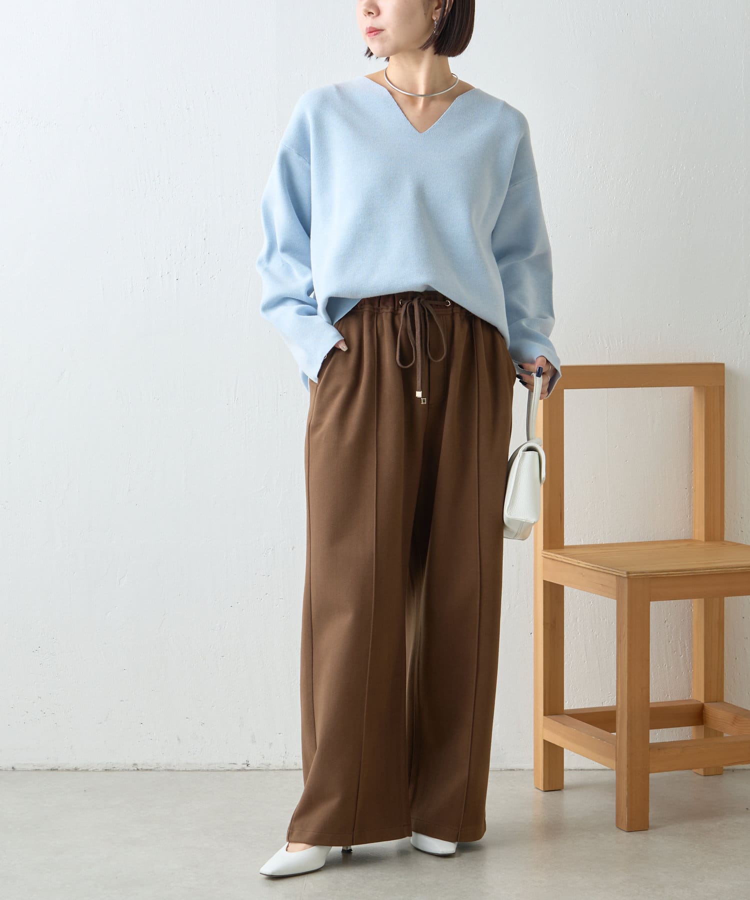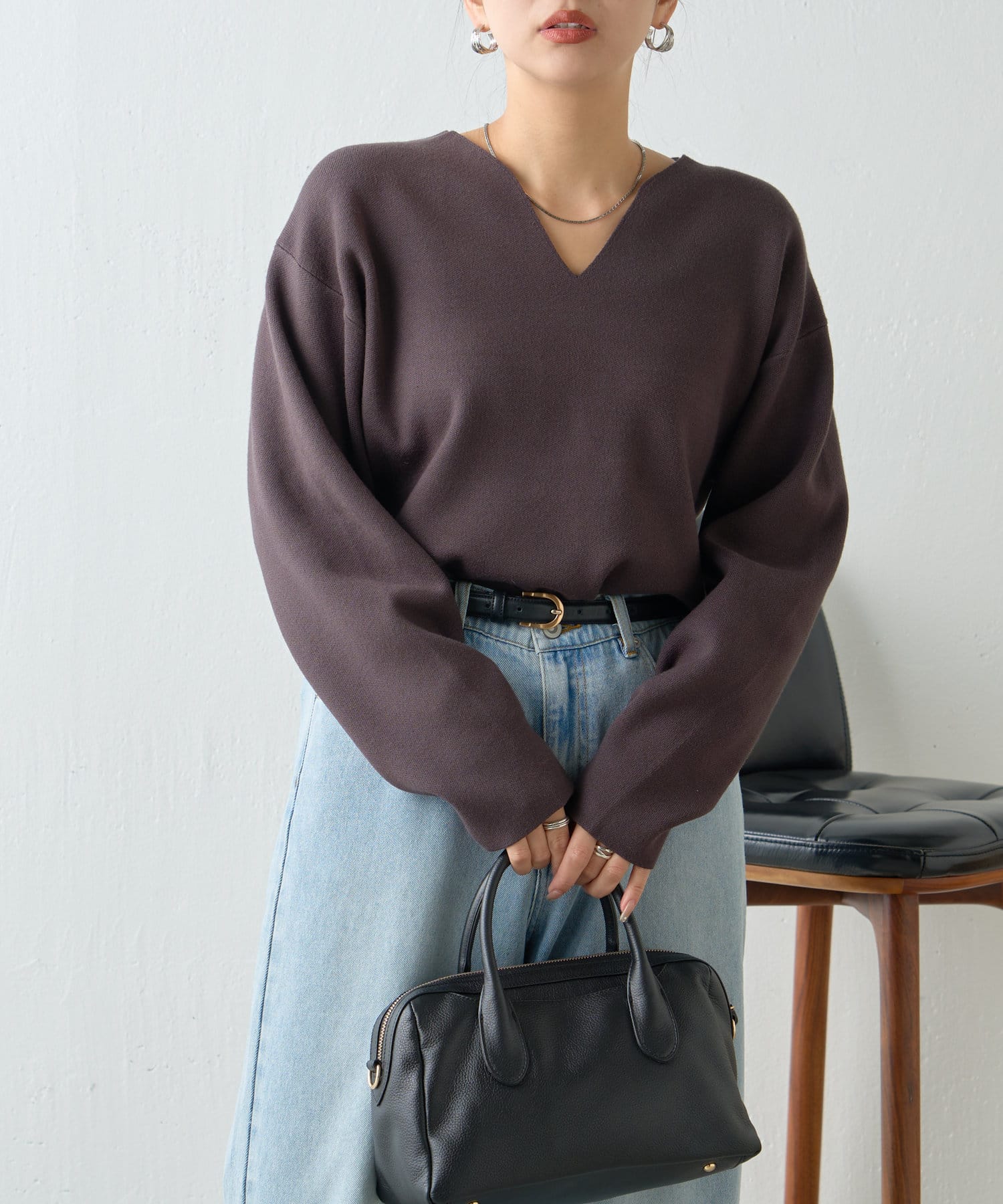 ・Vネックデザインで、首元すっきり見えも叶います。
