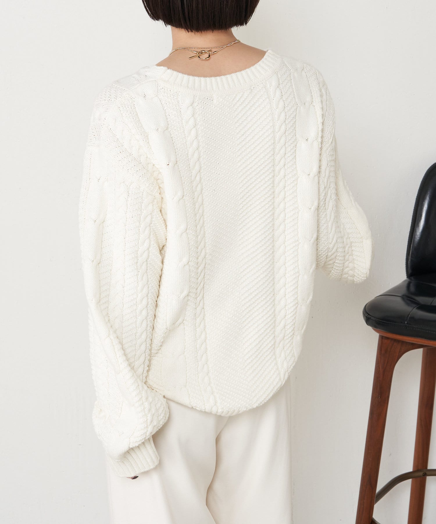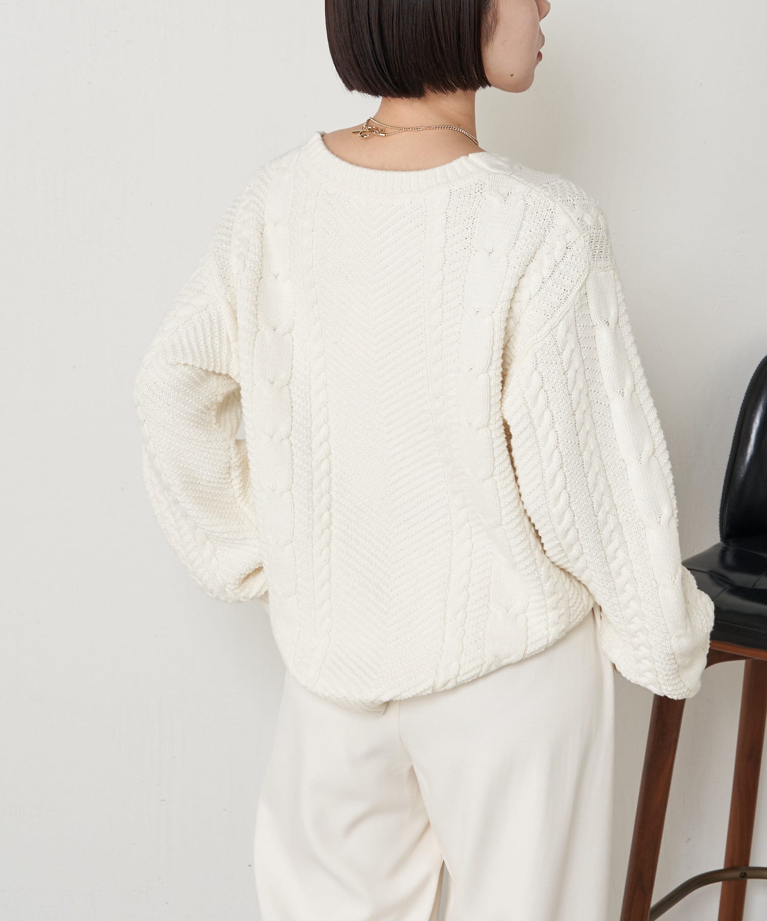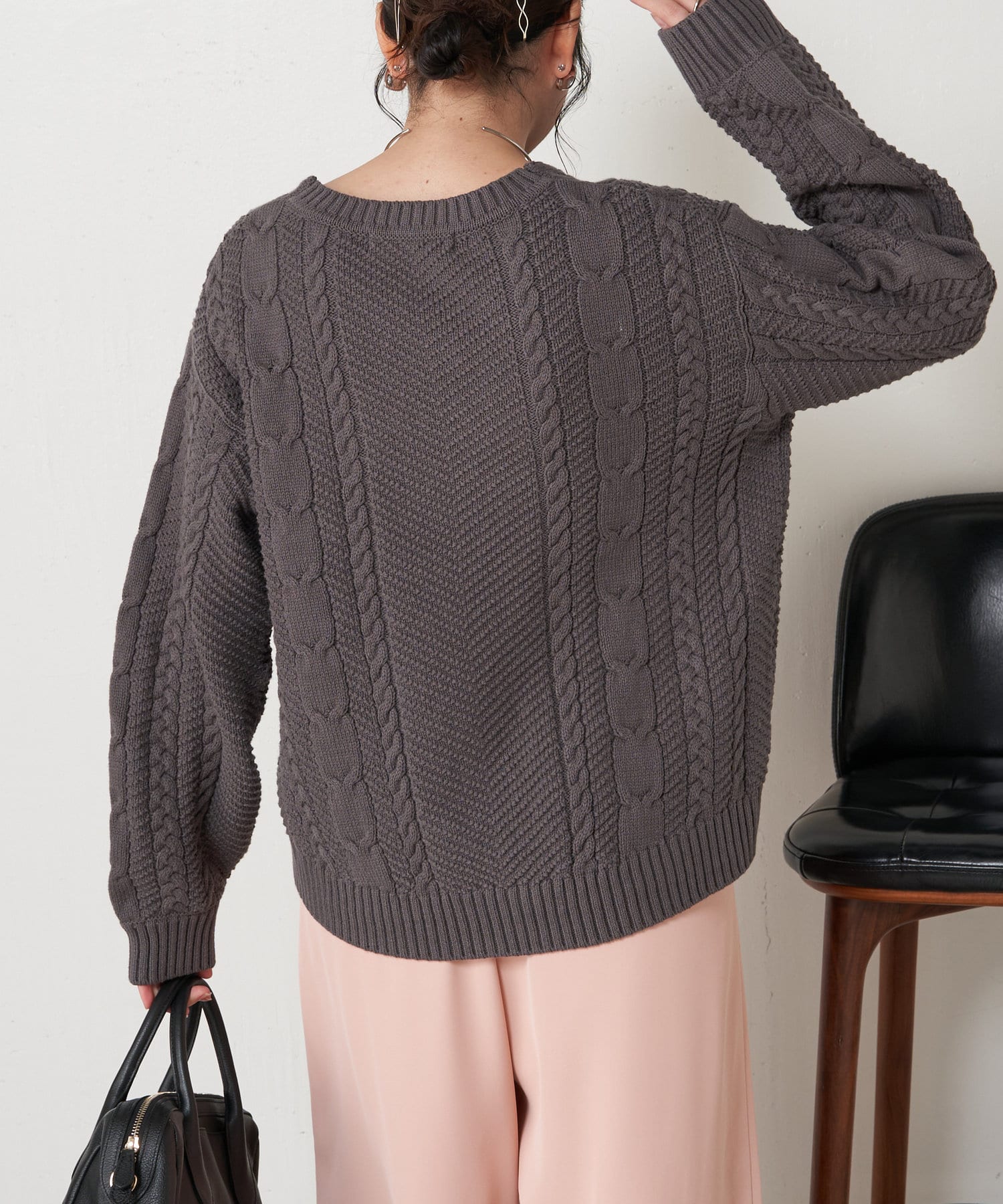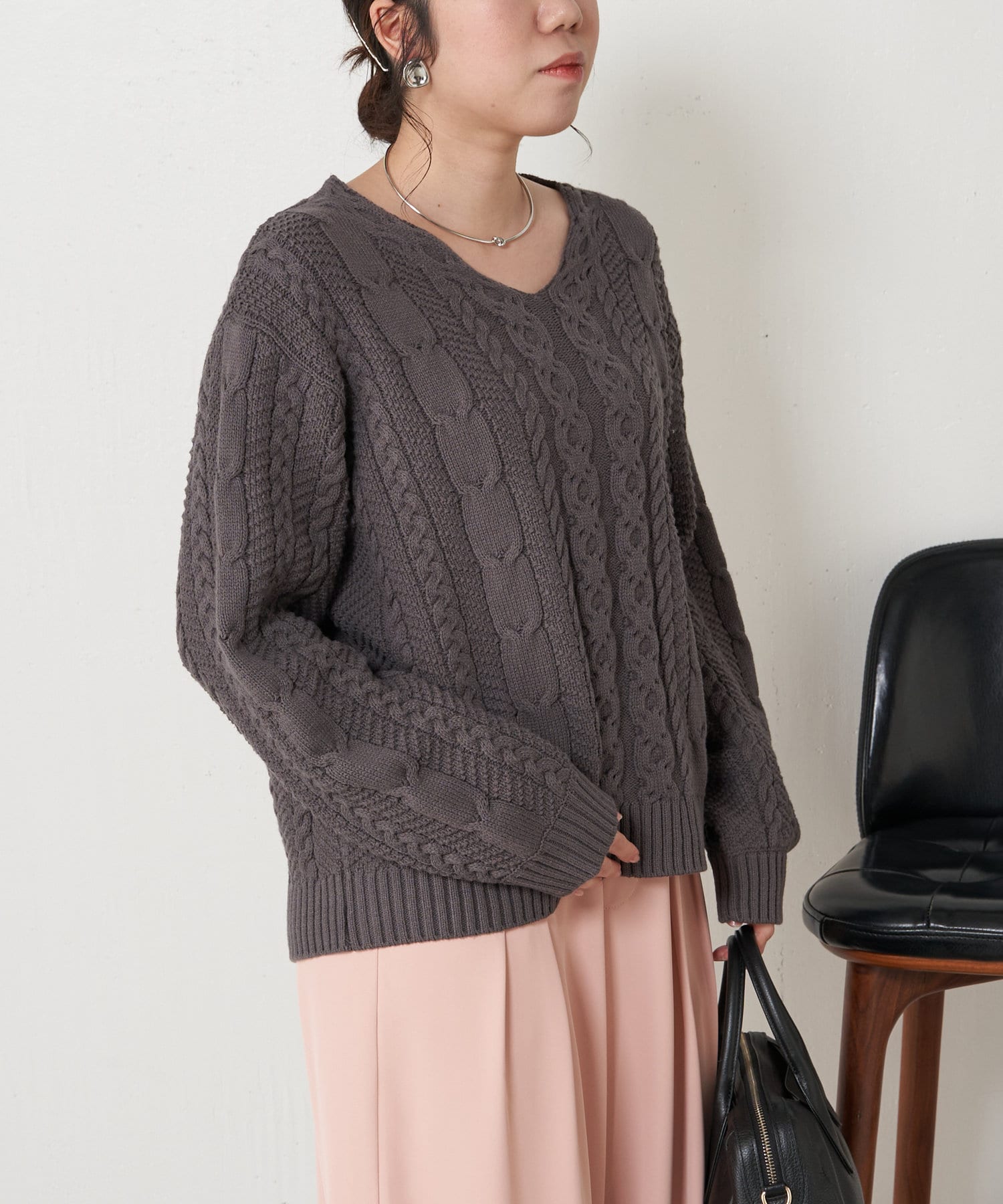 ・太すぎないケーブル編みで着ぶくれしづらいのがうれしいポイント。