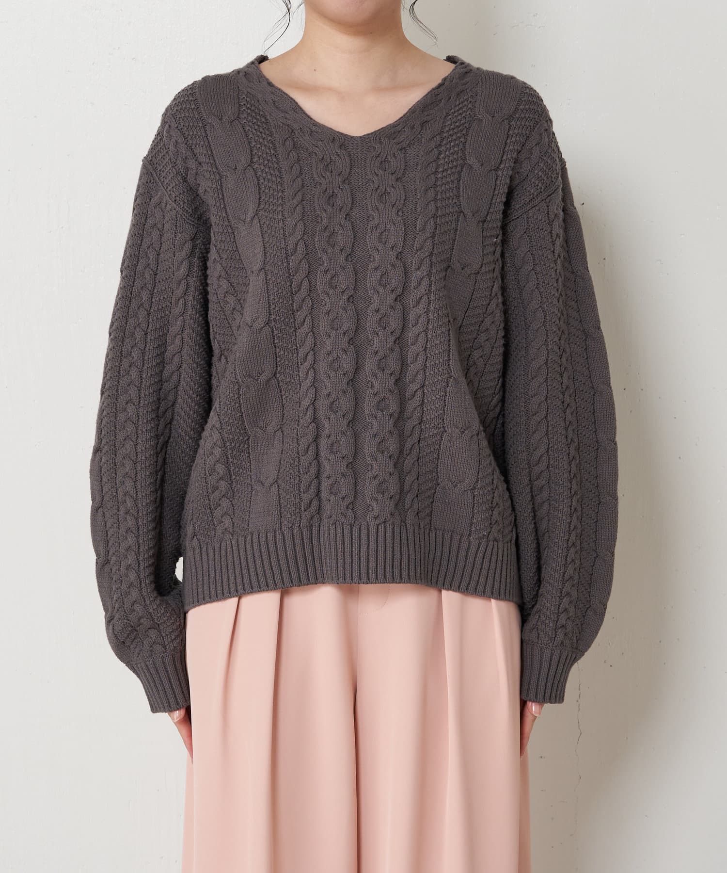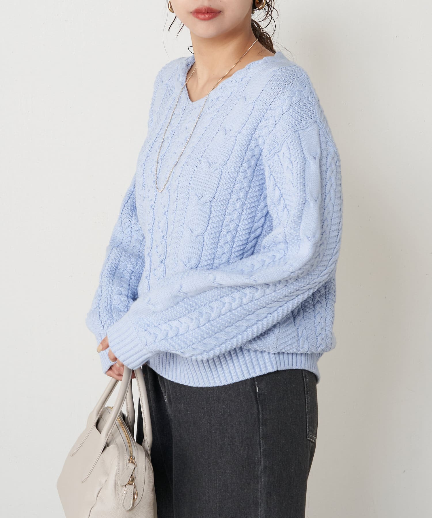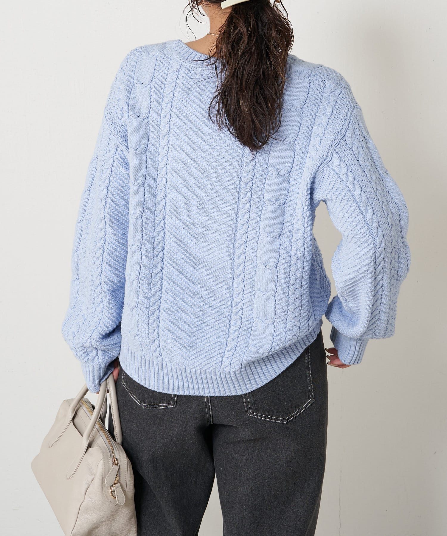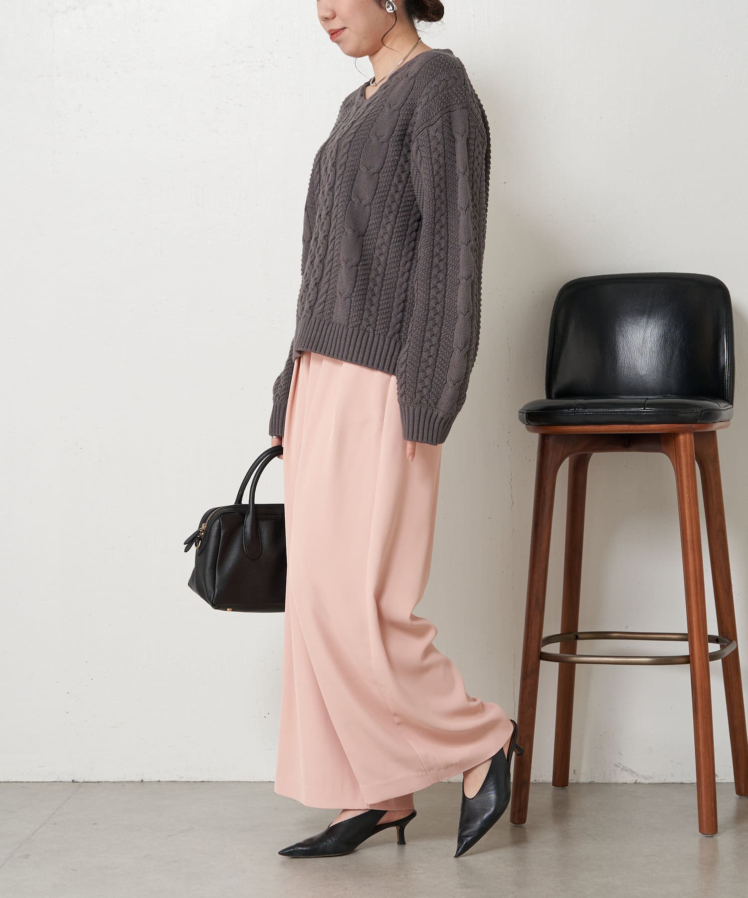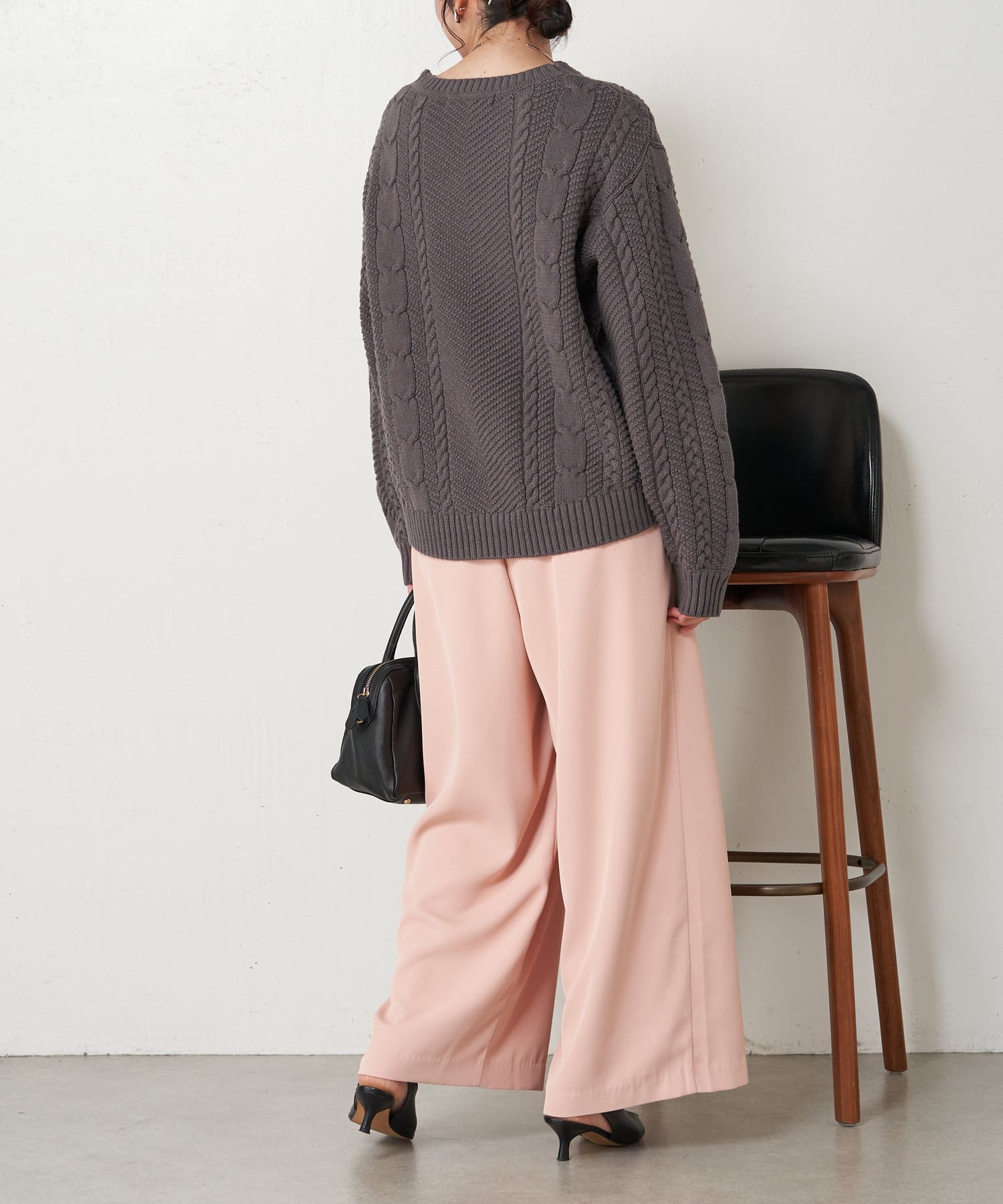 ・太すぎないケーブル編みで着ぶくれしづらいのがうれしいポイント。