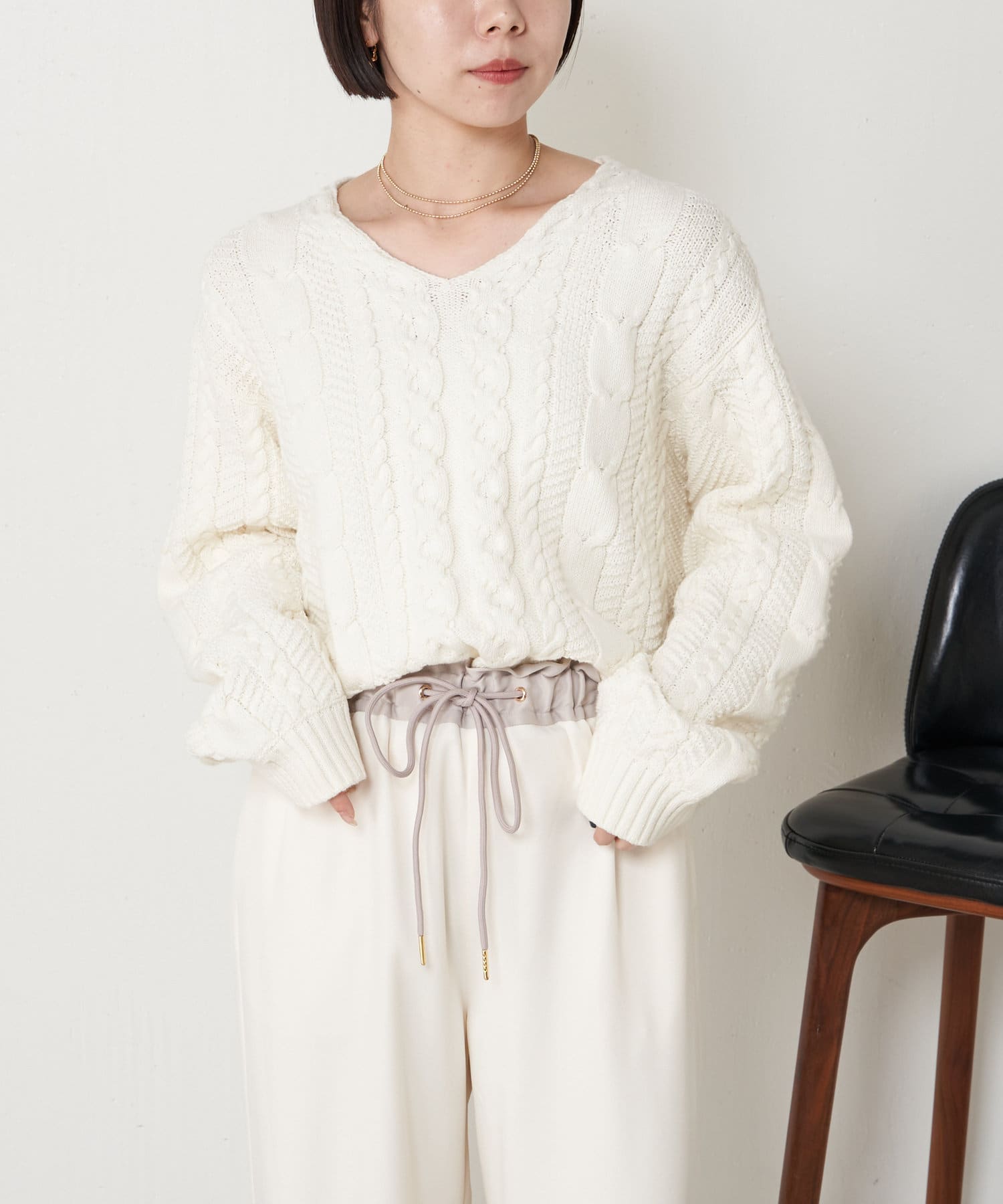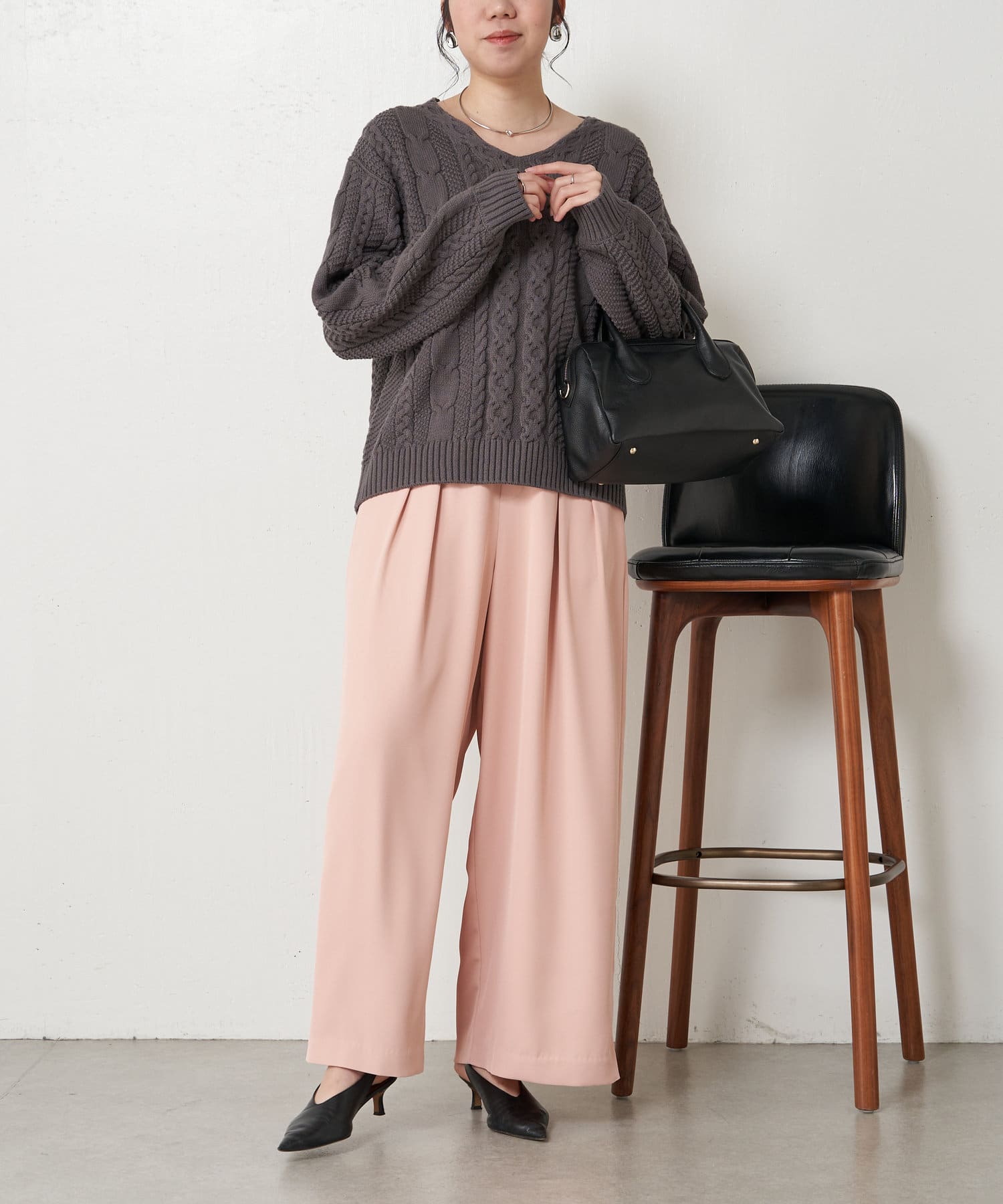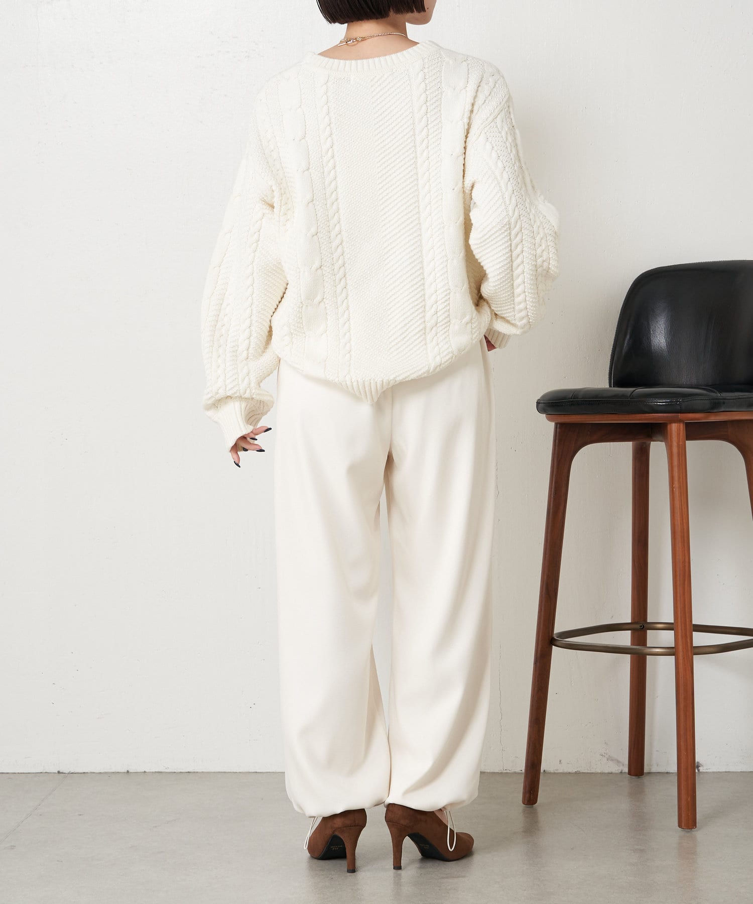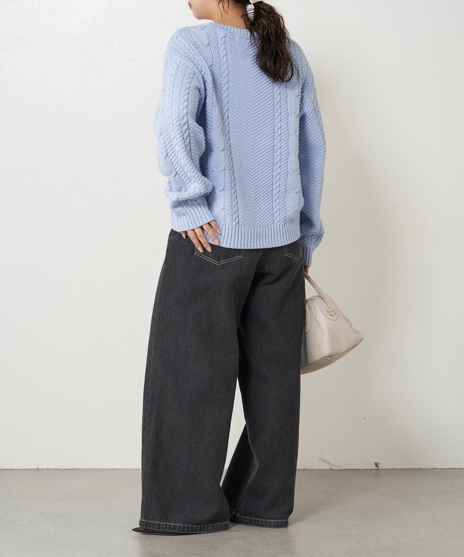 ・太すぎないケーブル編みで着ぶくれしづらいのがうれしいポイント。