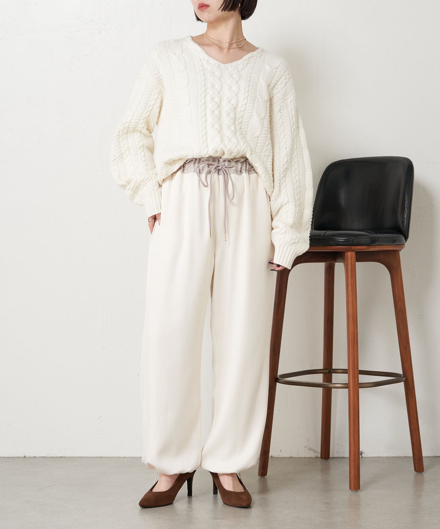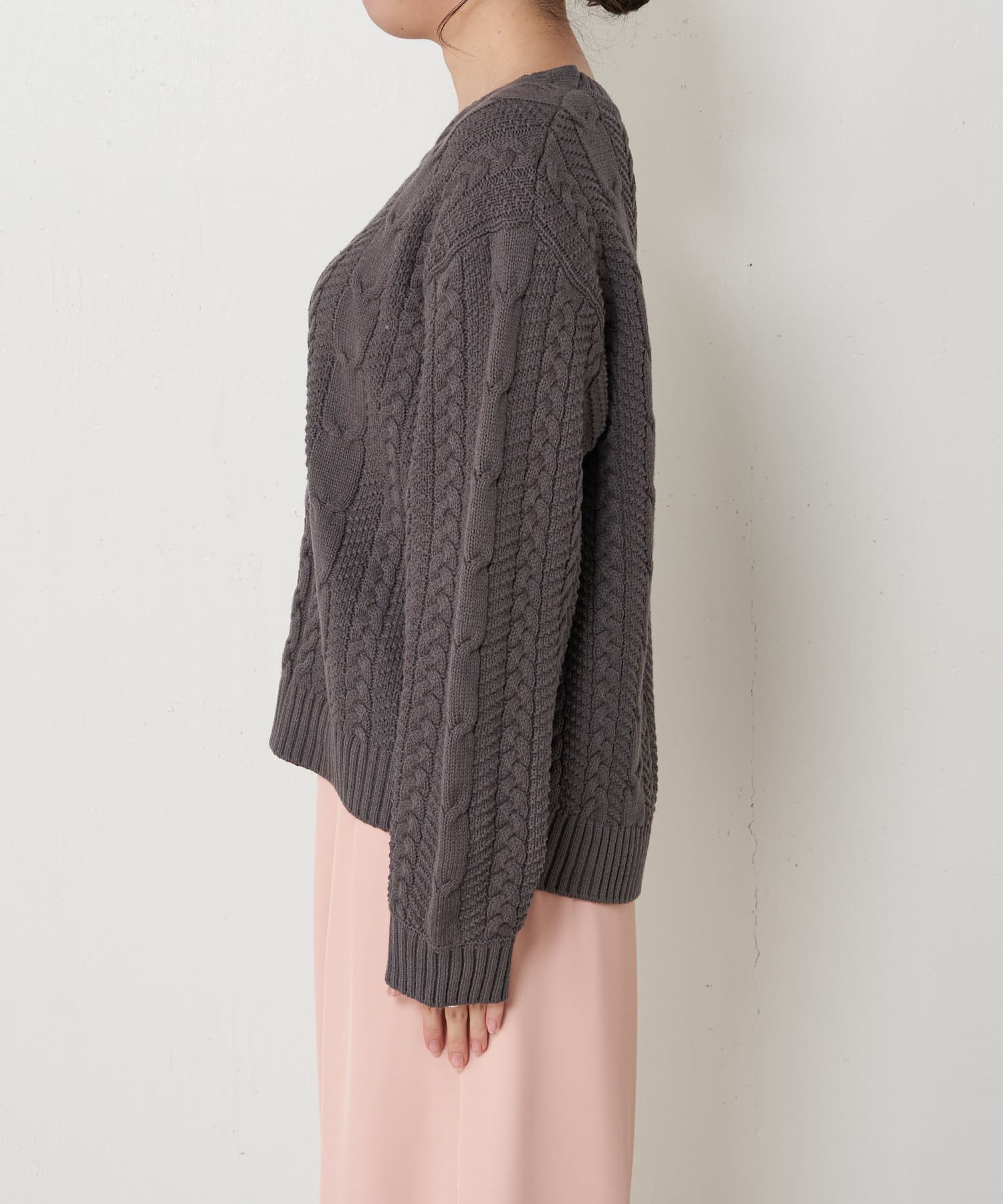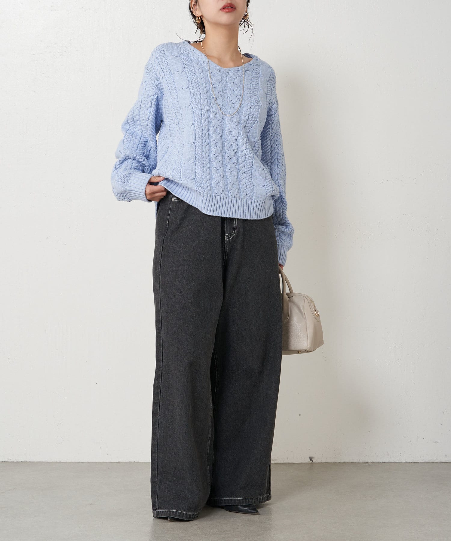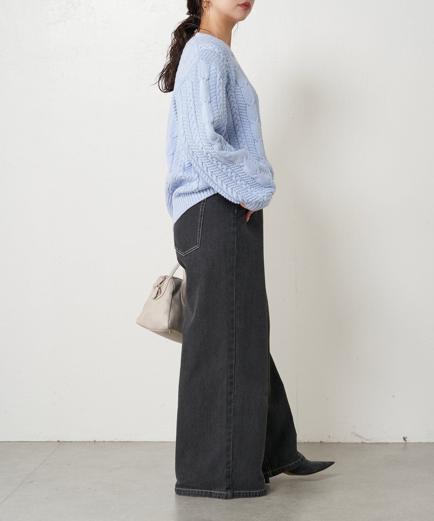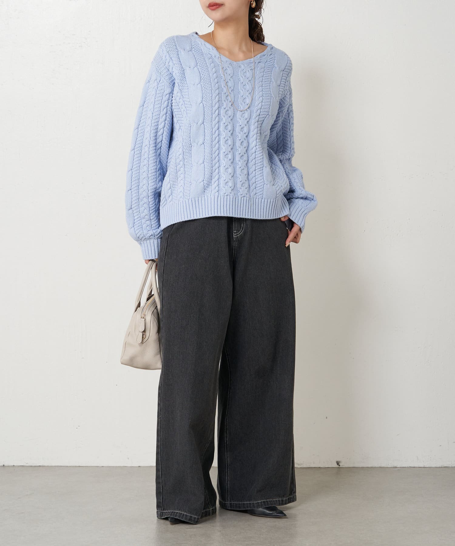・太すぎないケーブル編みで着ぶくれしづらいのがうれしいポイント。