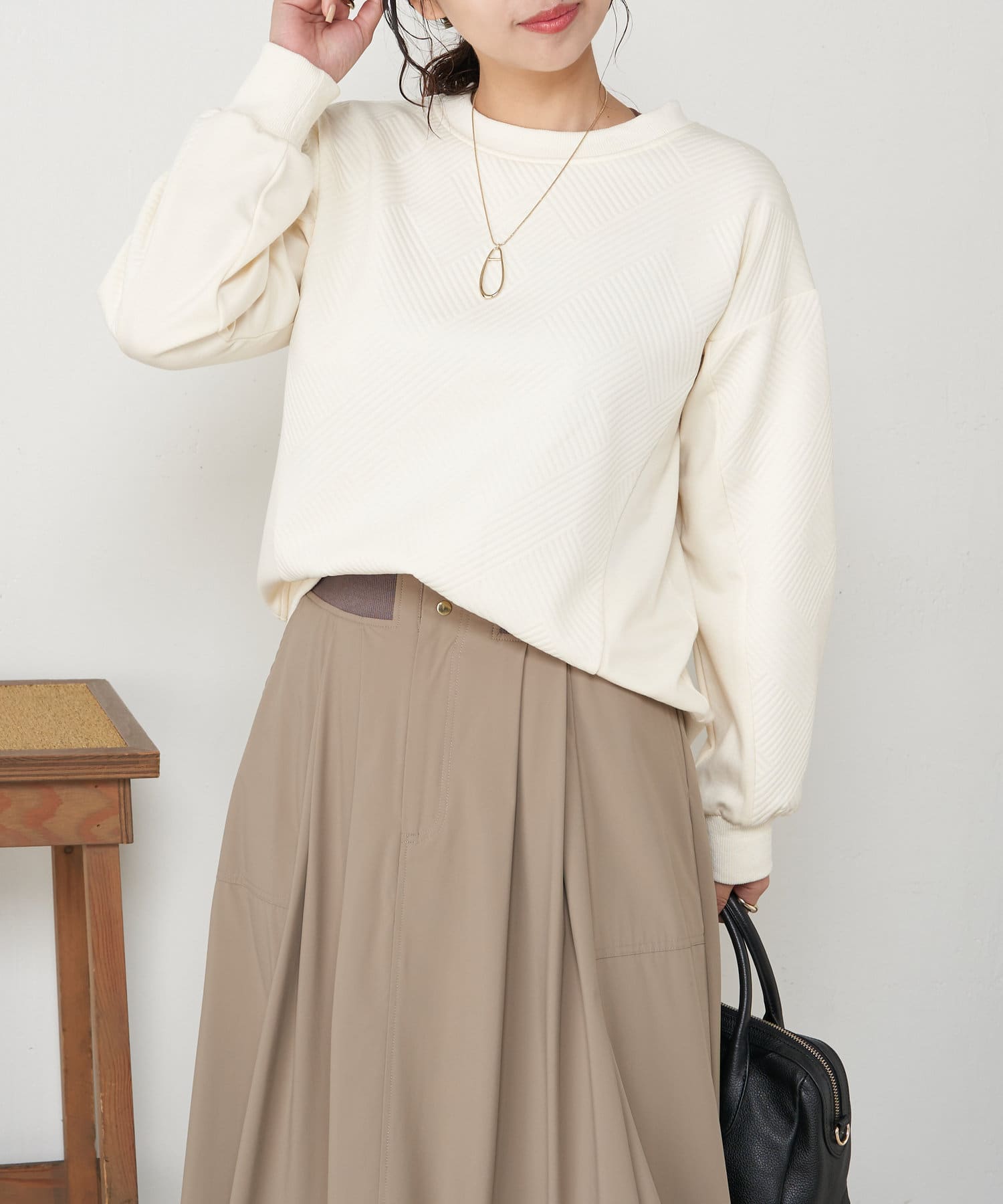 ・立体感を楽しめるボンディング素材を使用したシンプルカットソー◎