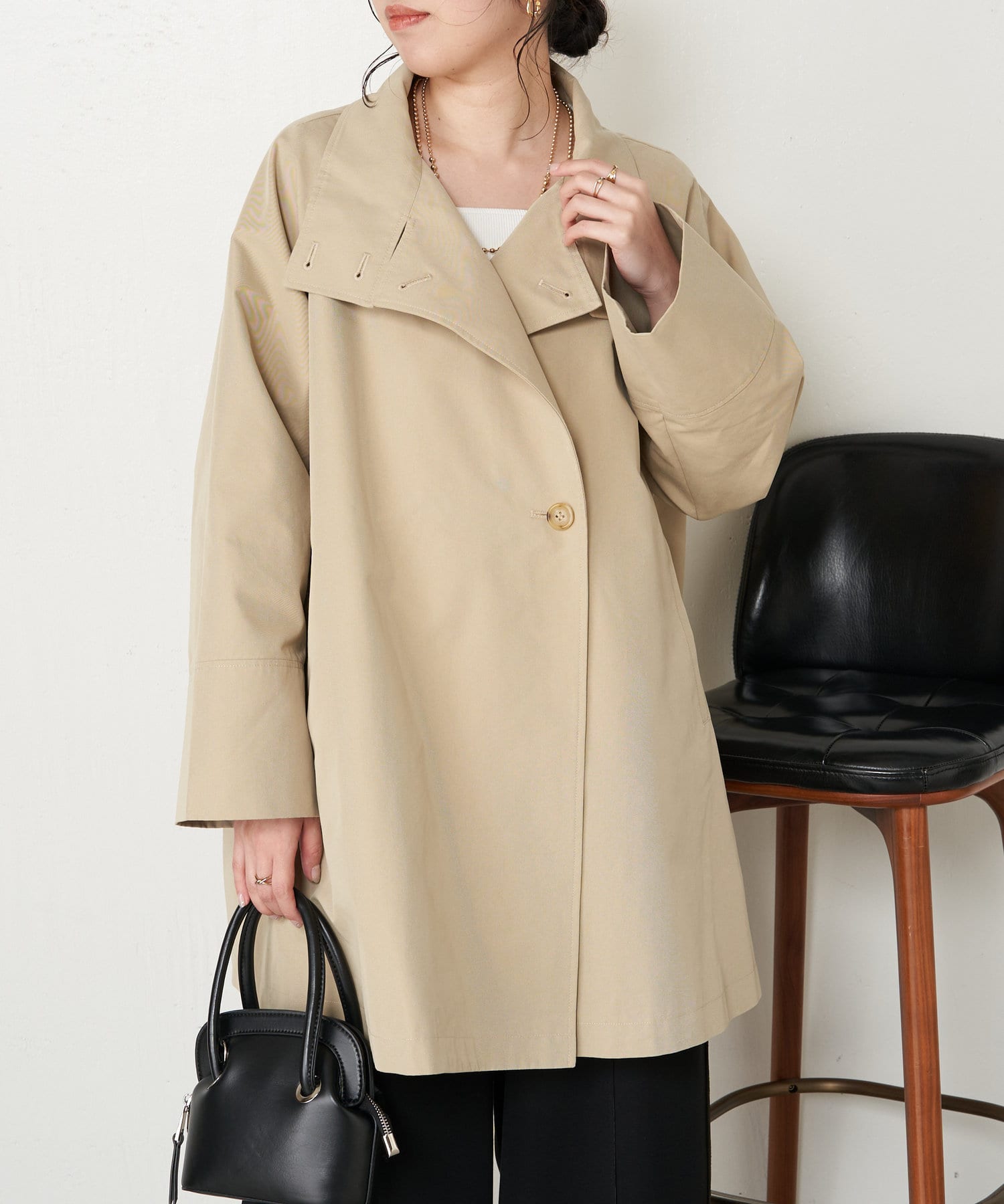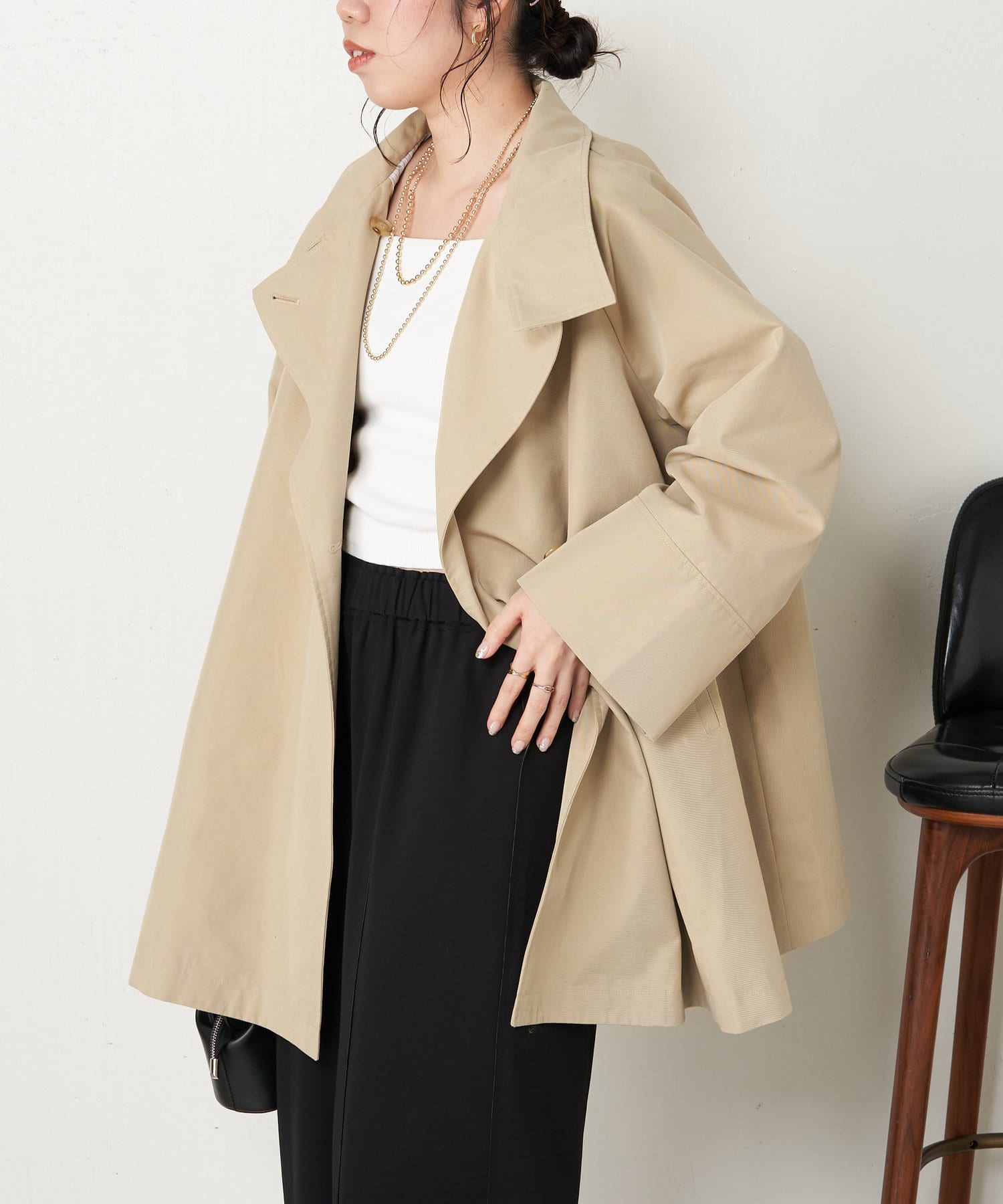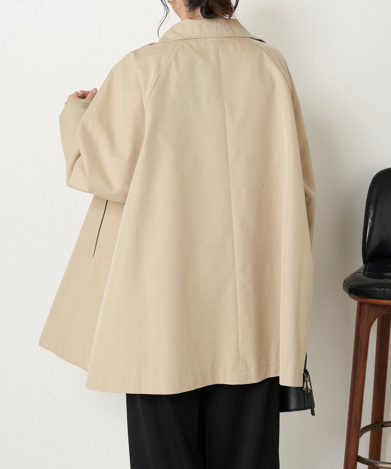 ・ミドル丈ならではの軽く程よいカジュアル感がお仕事から普段のアウターとして、幅広く着こなせますよ。