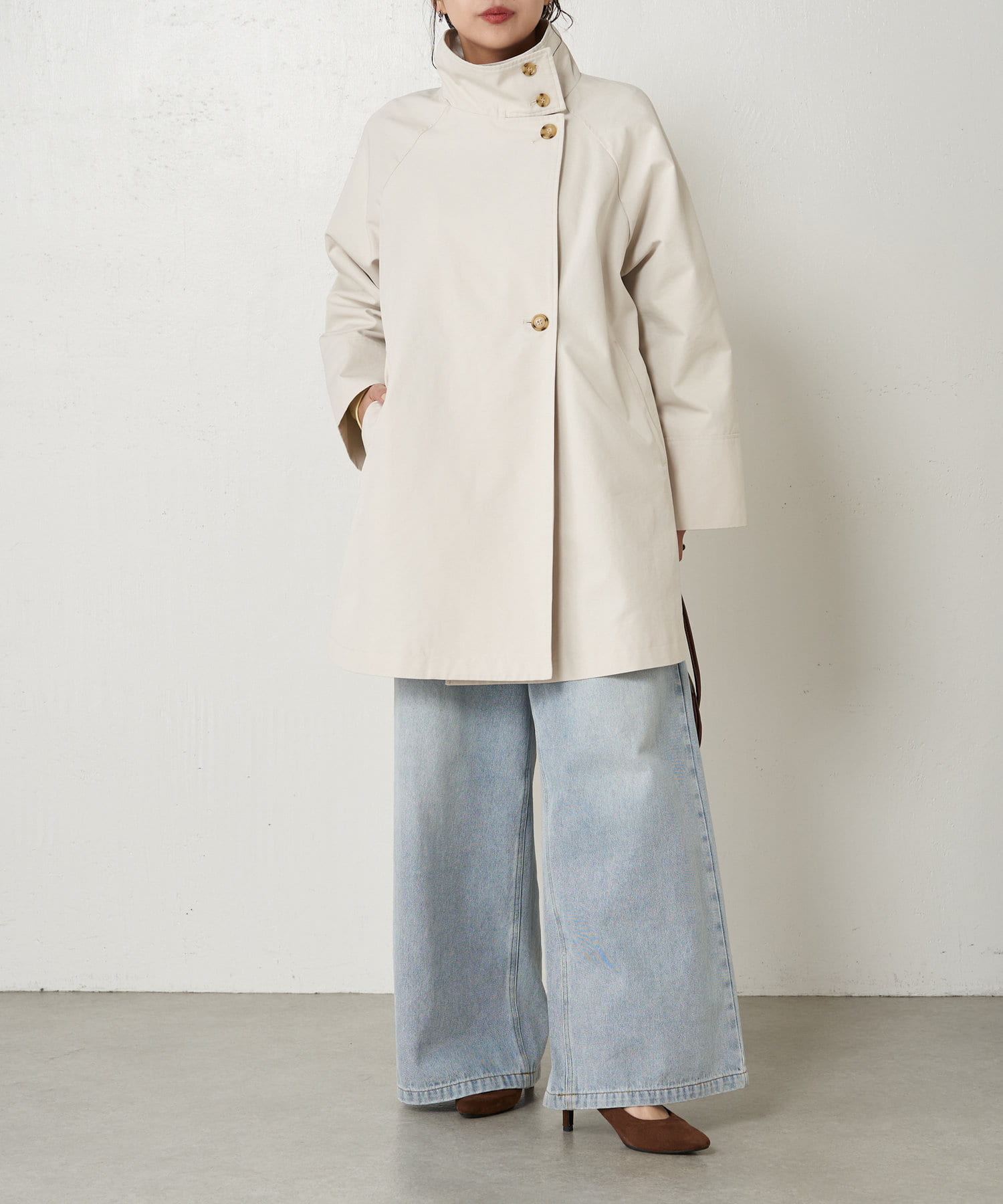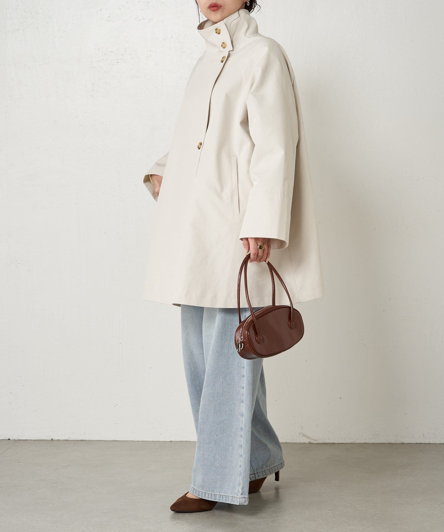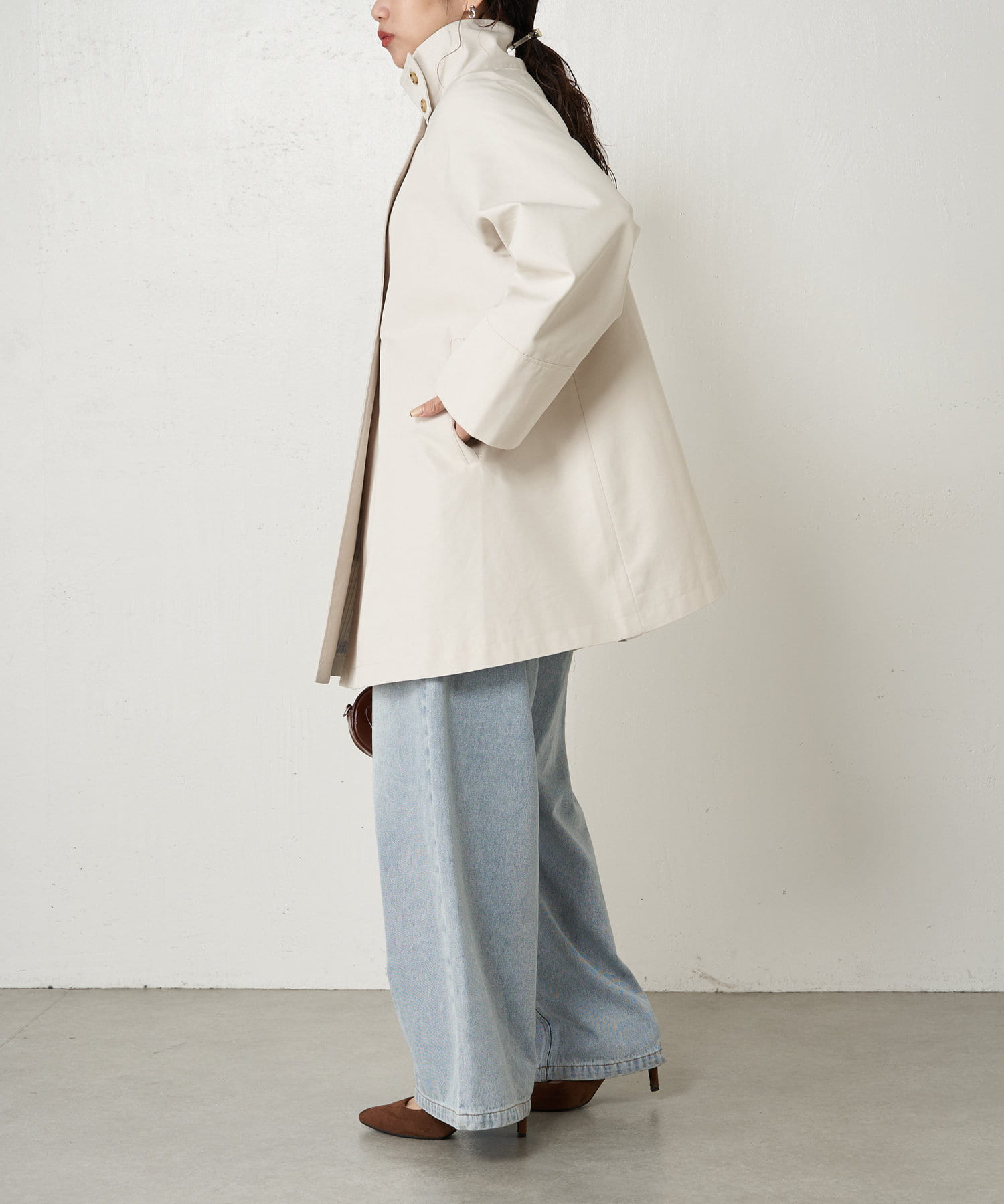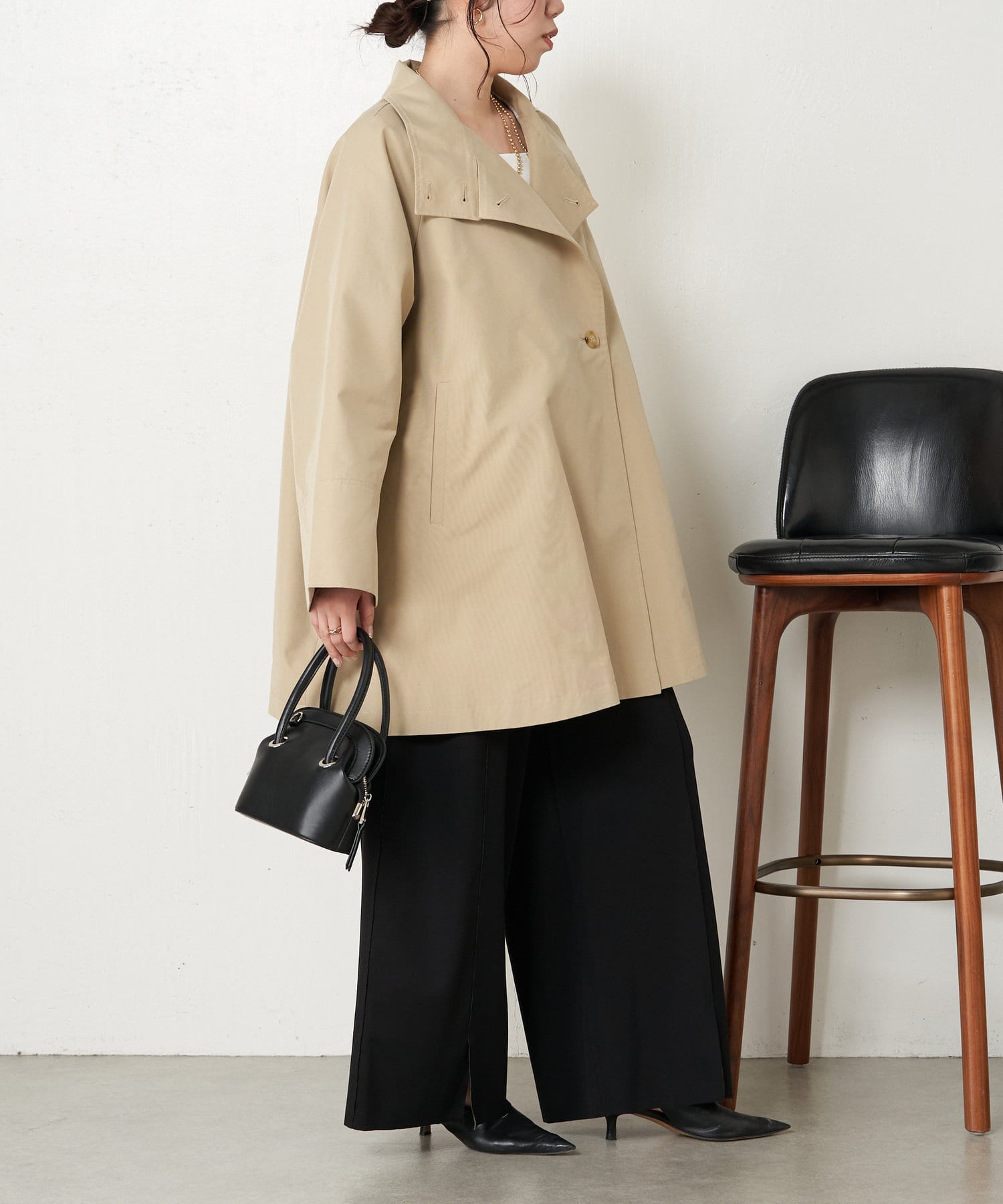 ・ミドル丈ならではの軽く程よいカジュアル感がお仕事から普段のアウターとして、幅広く着こなせますよ。