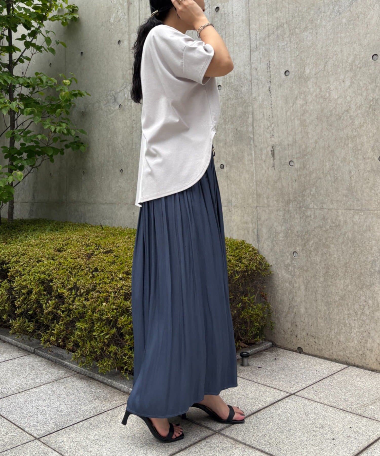 ・程よく落ち感のある素材で、広がり過ぎず美シルエットが叶います。