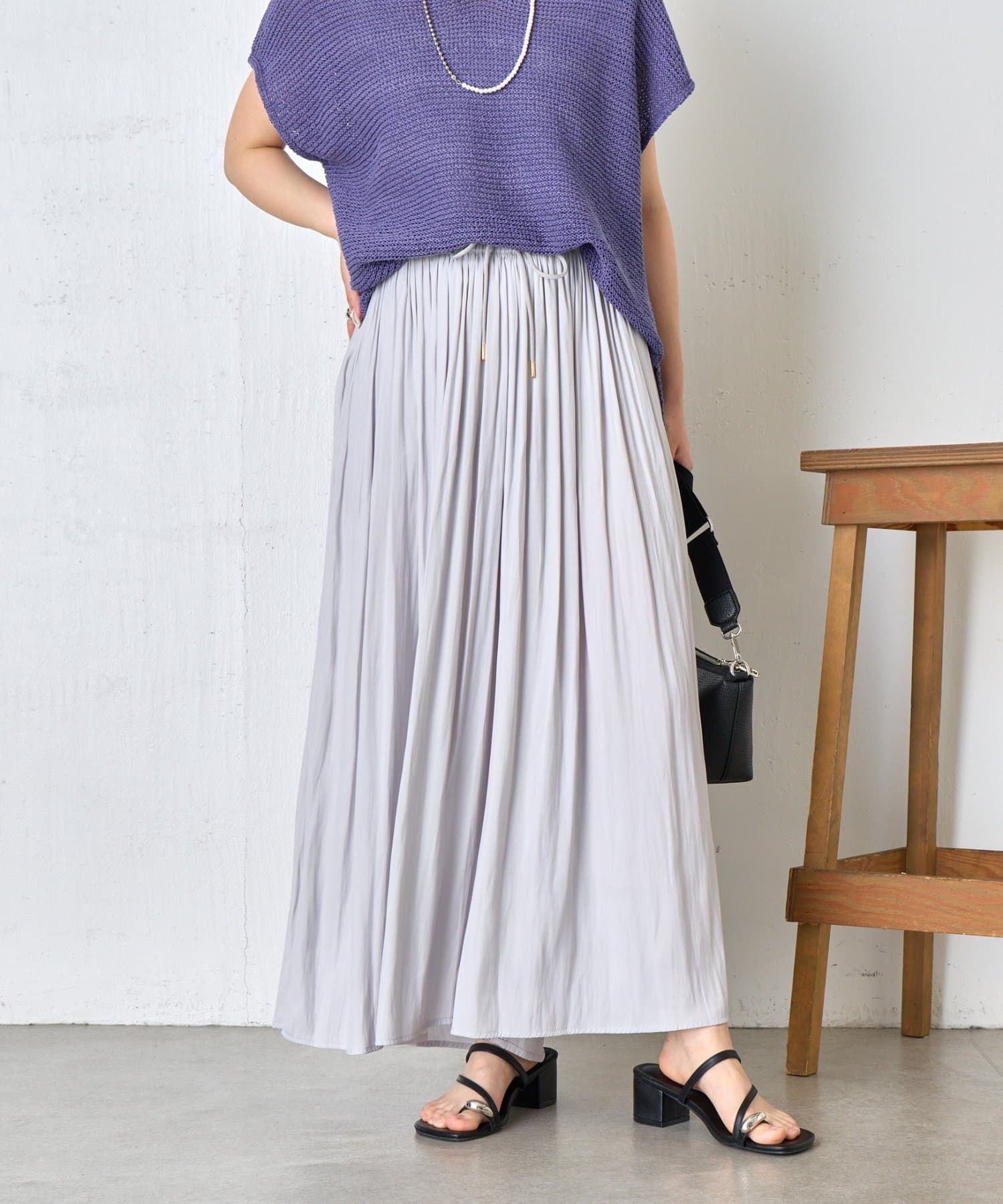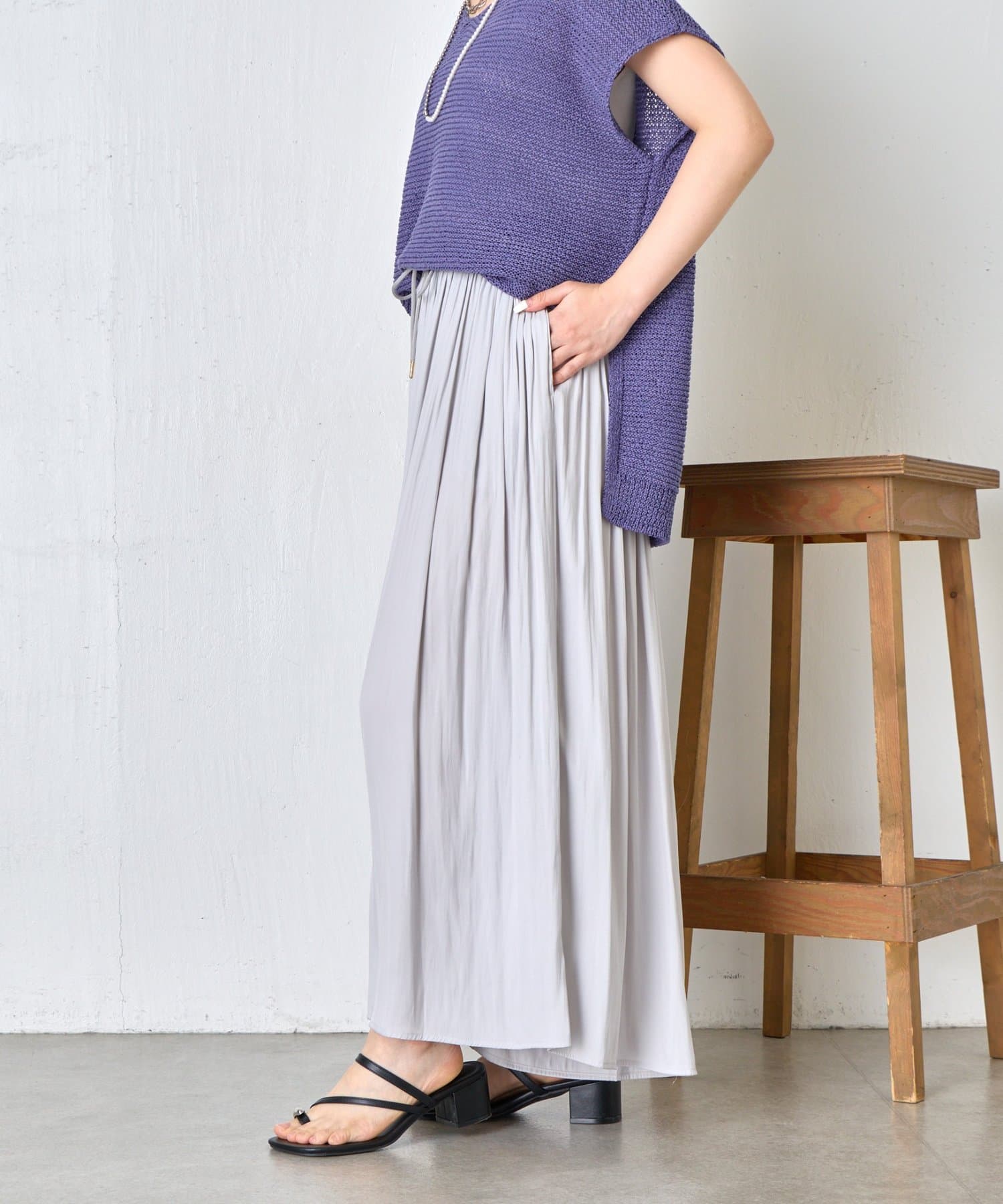 ・サラサラとした涼しい素材感と丸紐で高級感プラス、履くだけで上品見えが叶うスカーチョ。