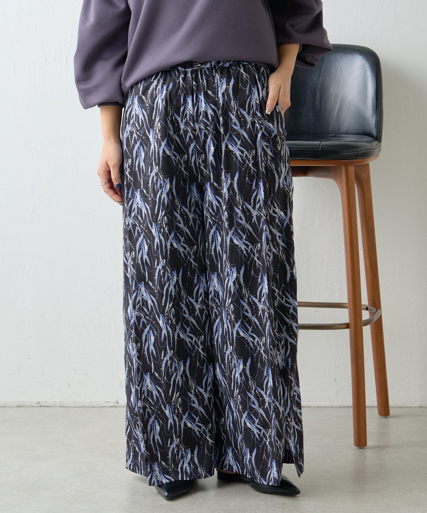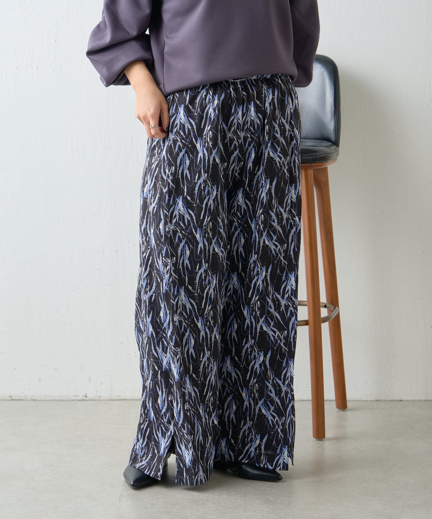 ・抽象的なアートタッチ柄が春夏シーズンに映える柄パンツ。