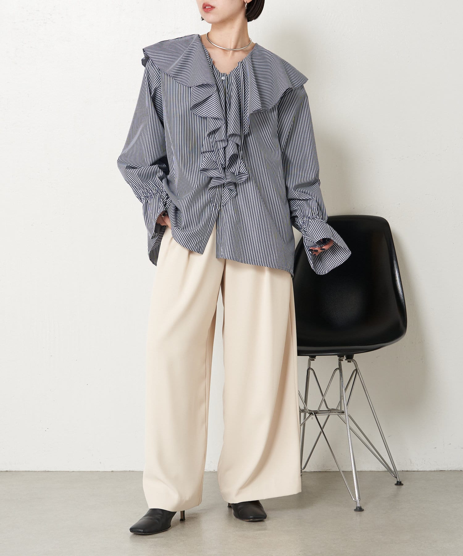 ・トレンド感あるストライブ柄で取り入れるだけで今年らしいコーディネートに。
