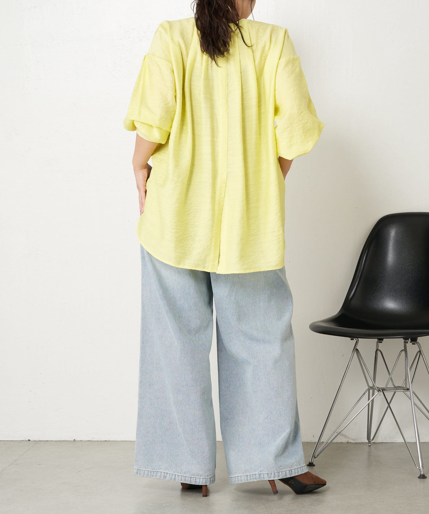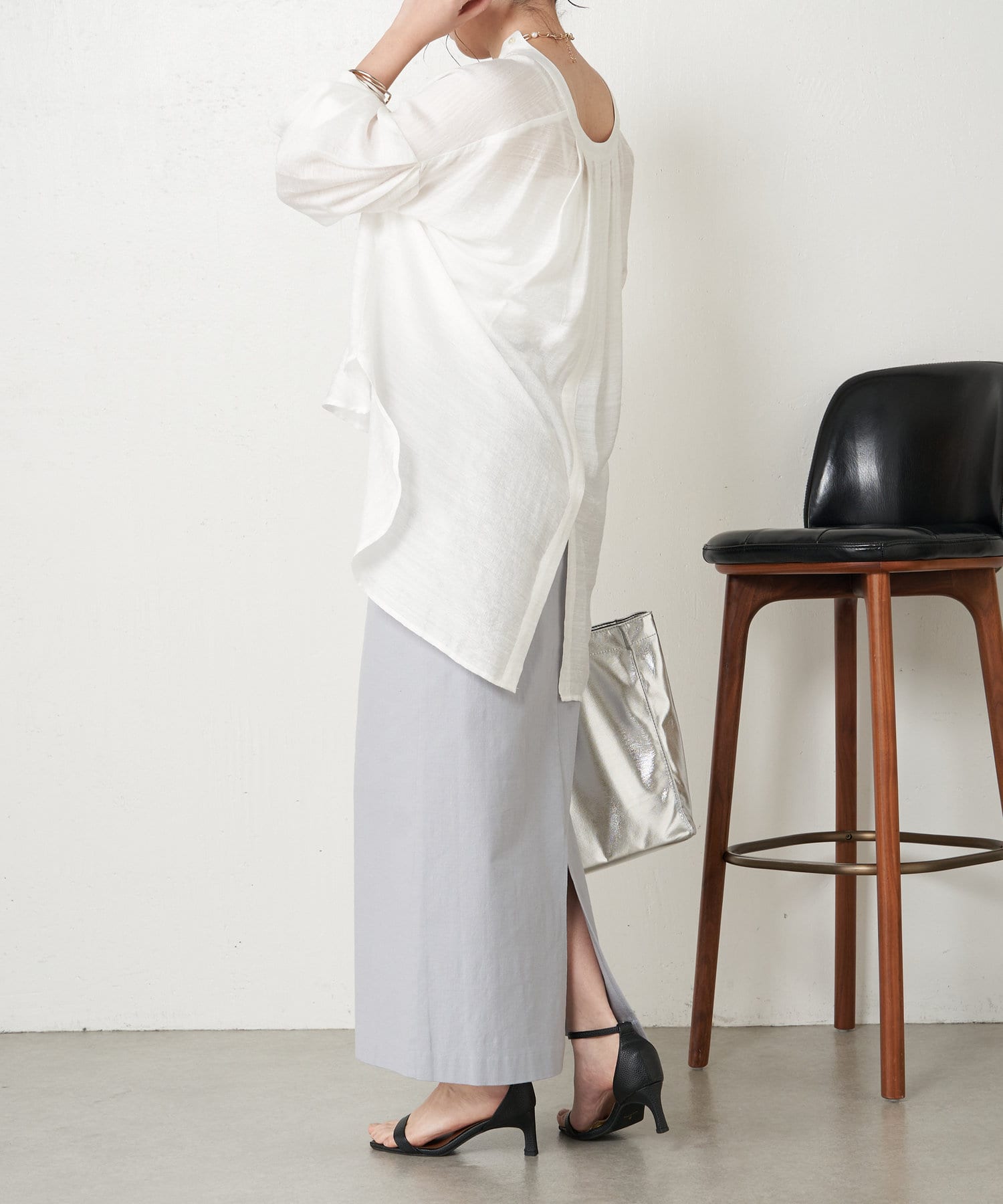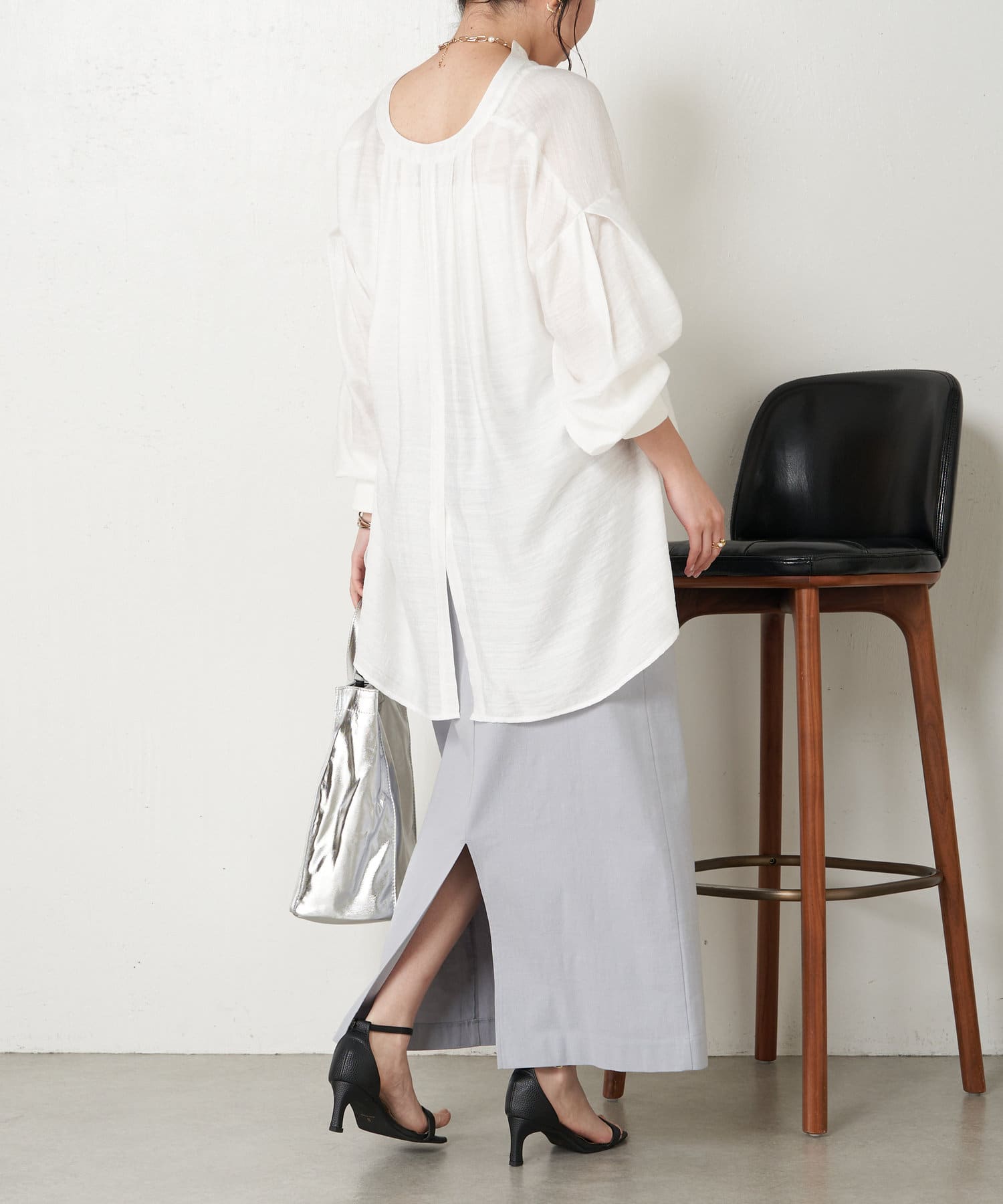 ・ゆったりとしたシルエットですが、バックスリットデザインがすっきりとした見え感に。