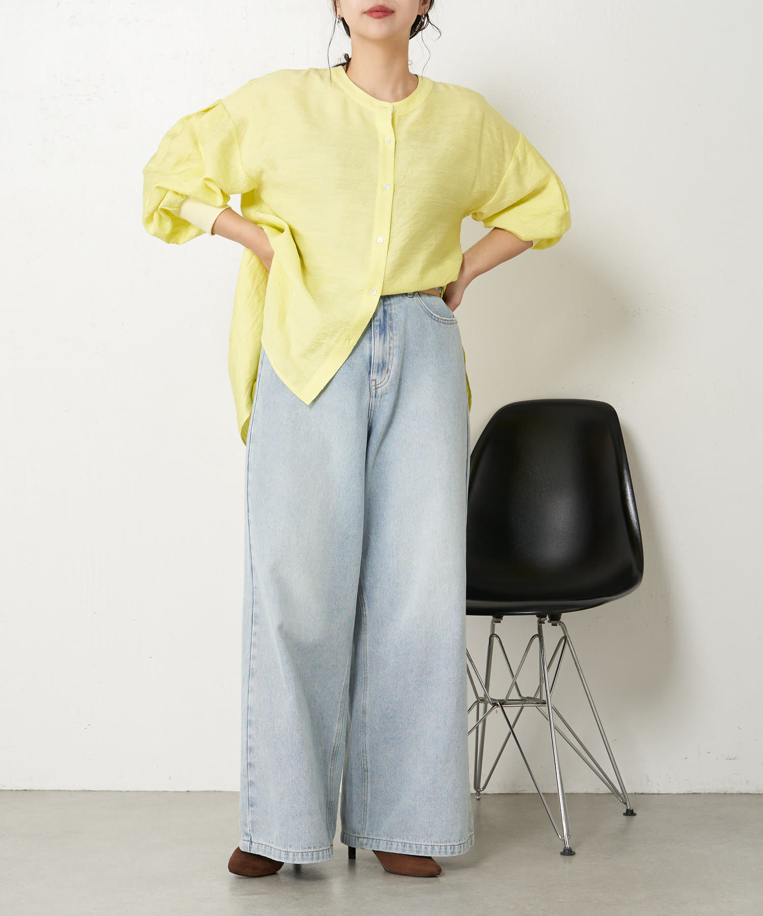 ・ボタンを2つほど開け、落として着用することでより抜け感をプラスできます。