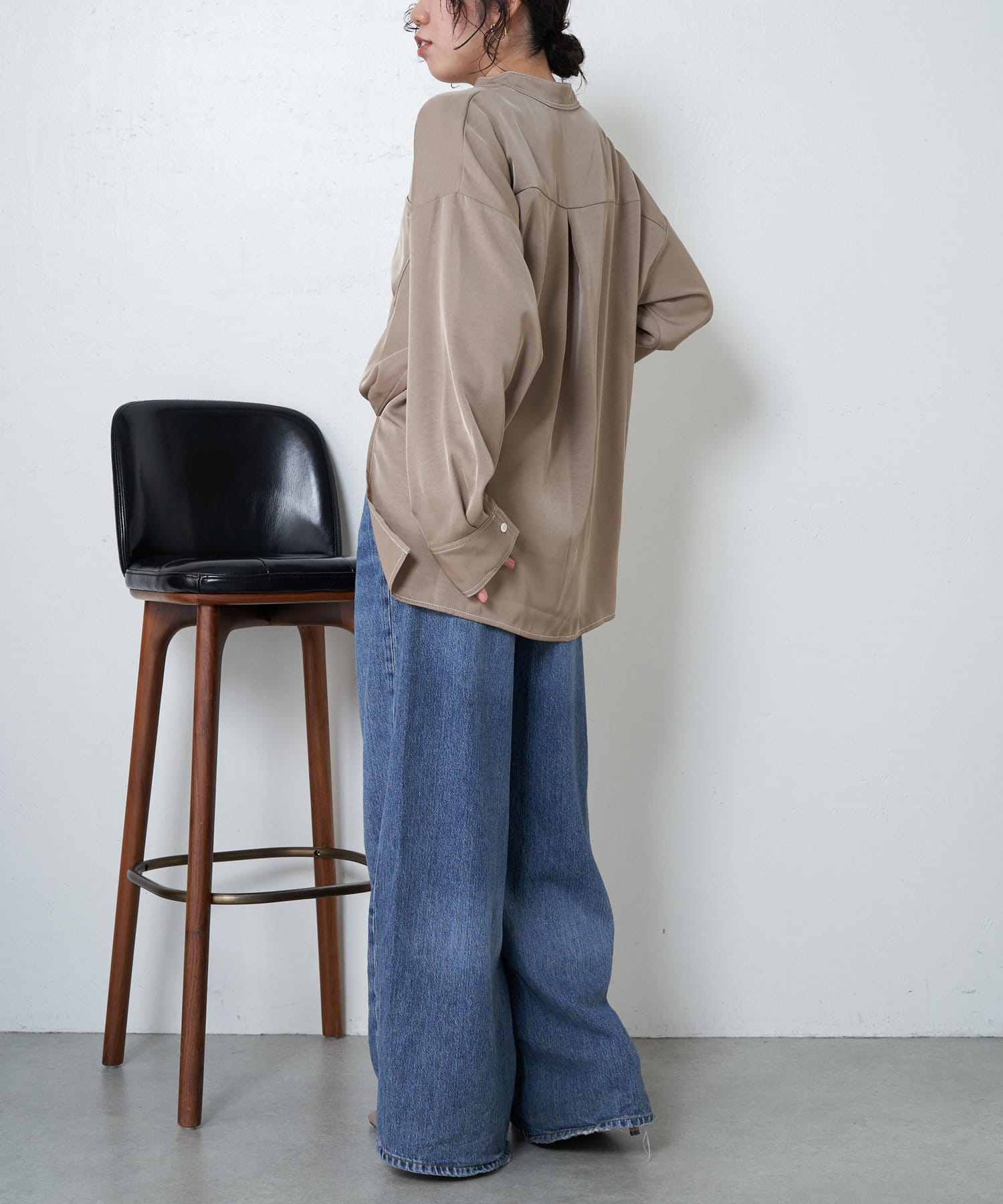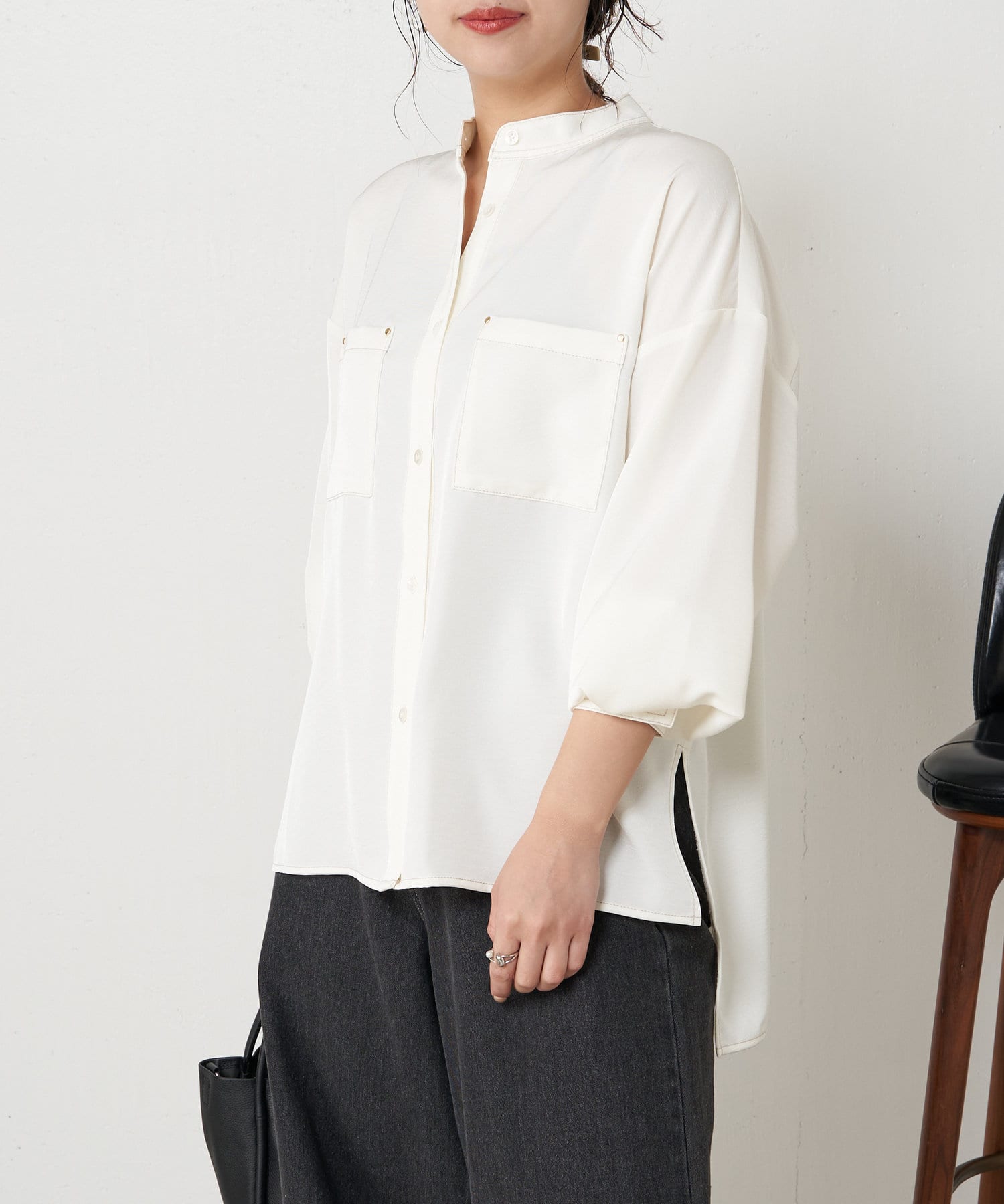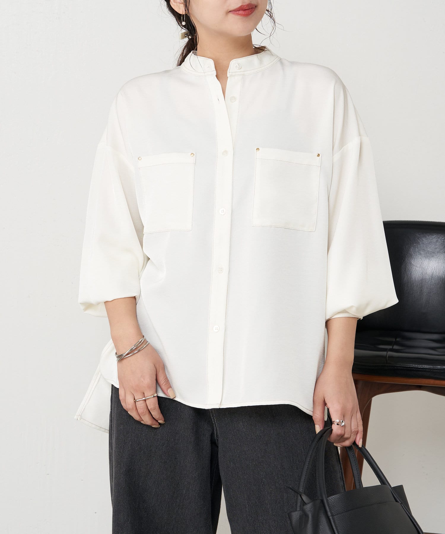 ・スタッズ付きのポケットと、全体に施されたステッチがポイントの長袖シャツ。